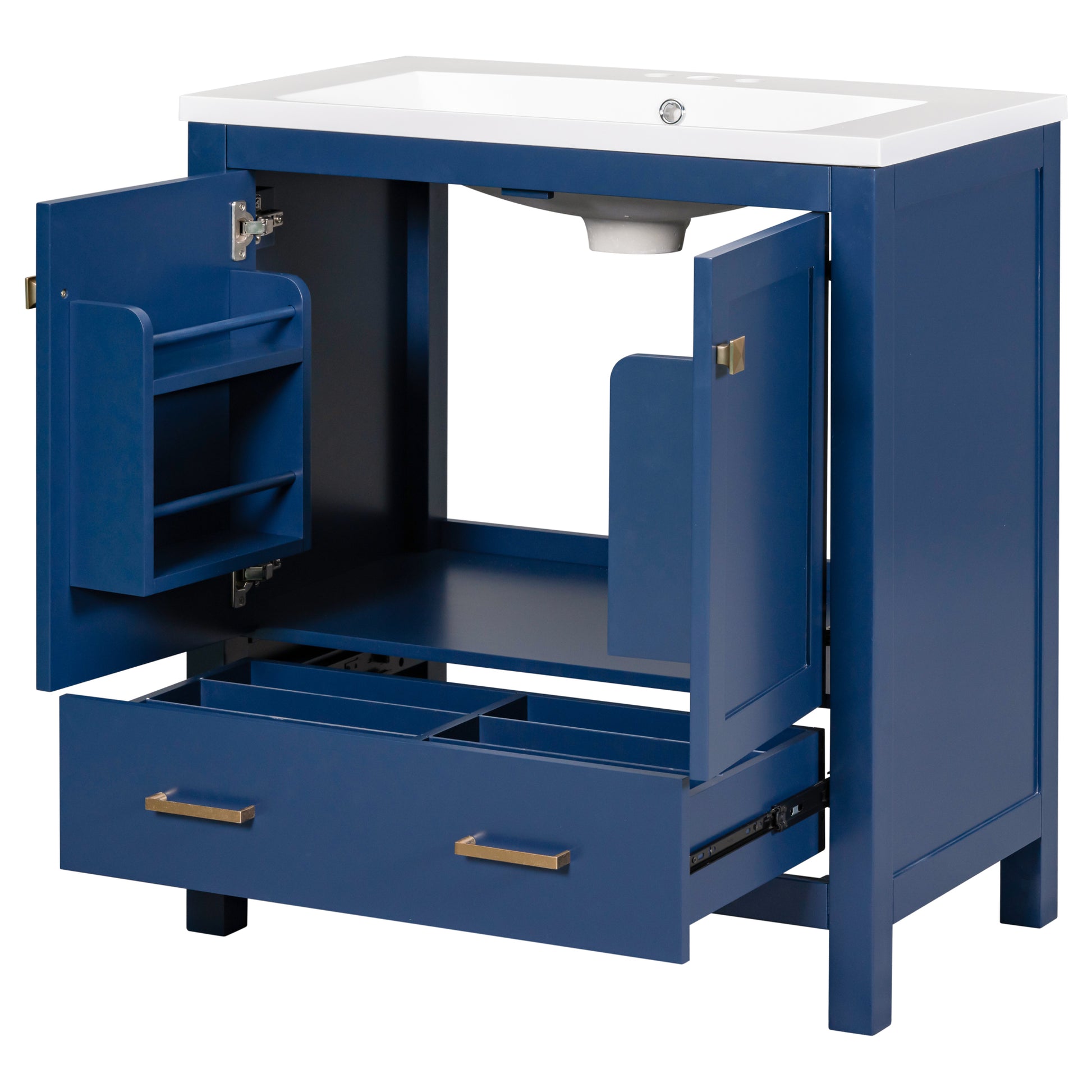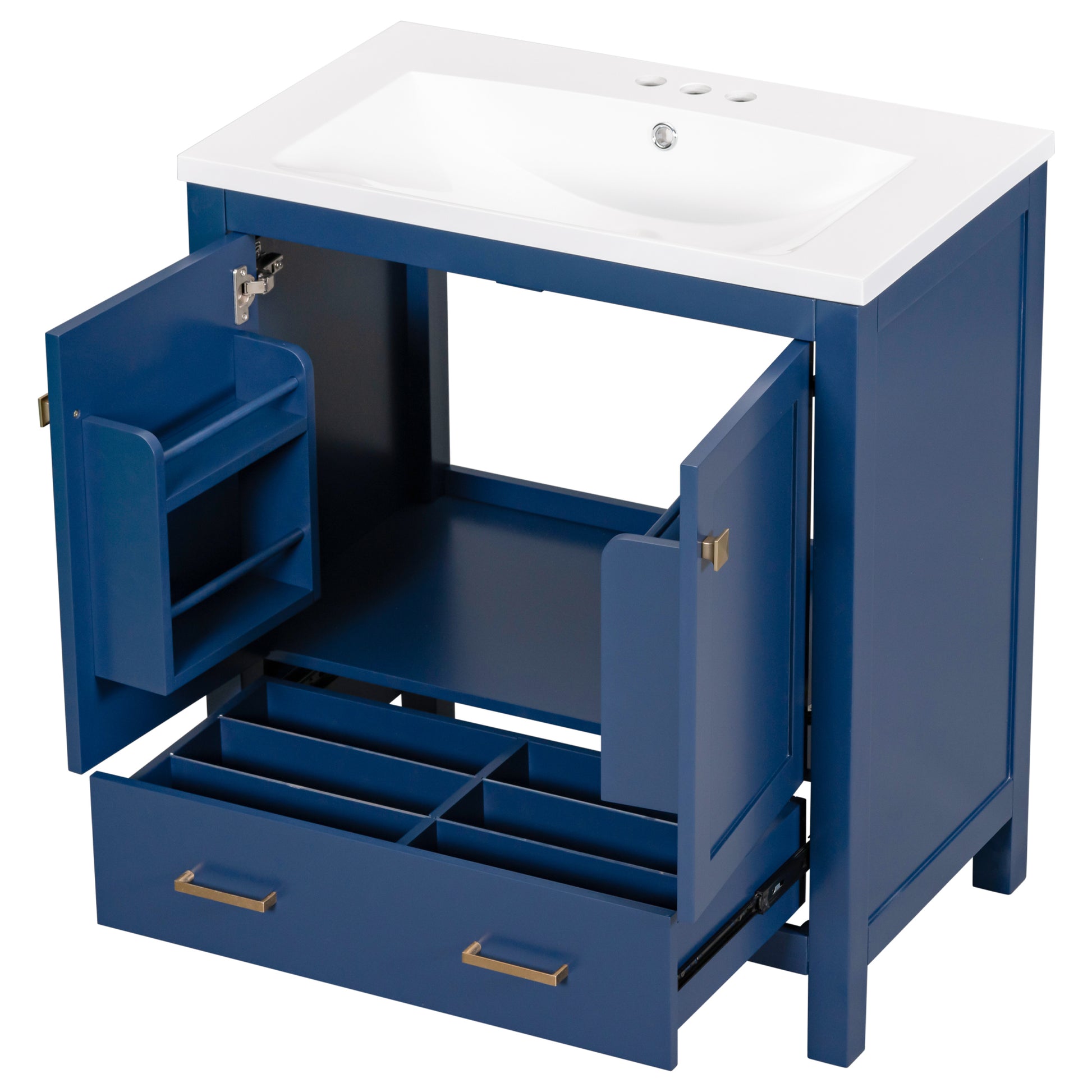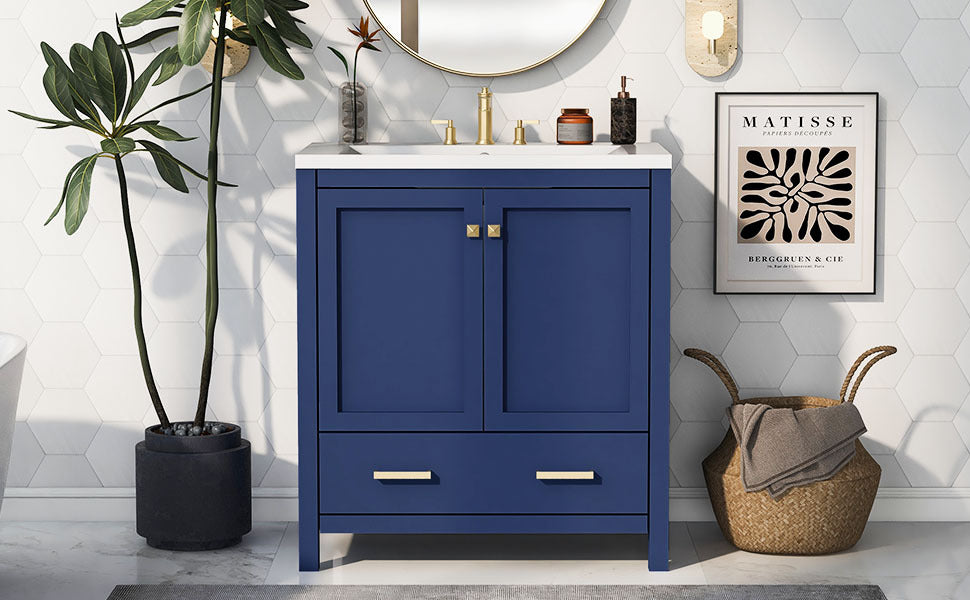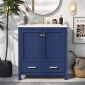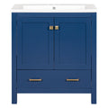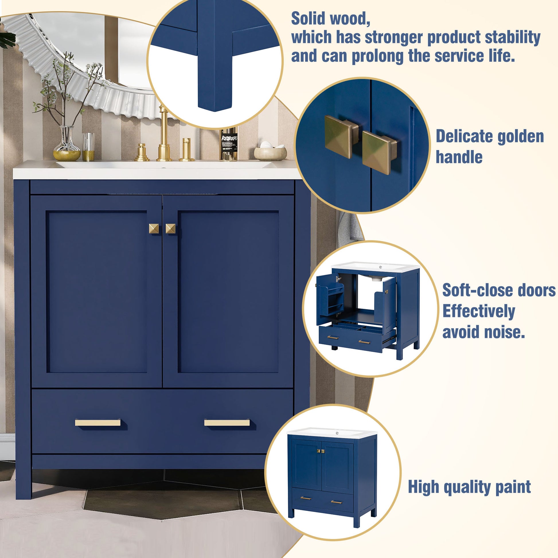 30" Blue Bathroom Vanity With Single Sink, Combo Cabinet Undermount Sink, Bathroom Storage Cabinet With 2 Doors And A Drawer, Soft Closing, Multifunctional Storage, Solid Wood Frame Blue Solid Wood Mdf Resin