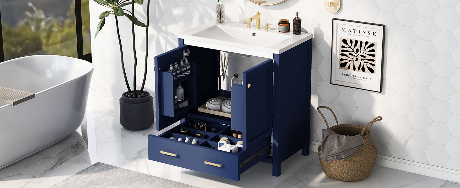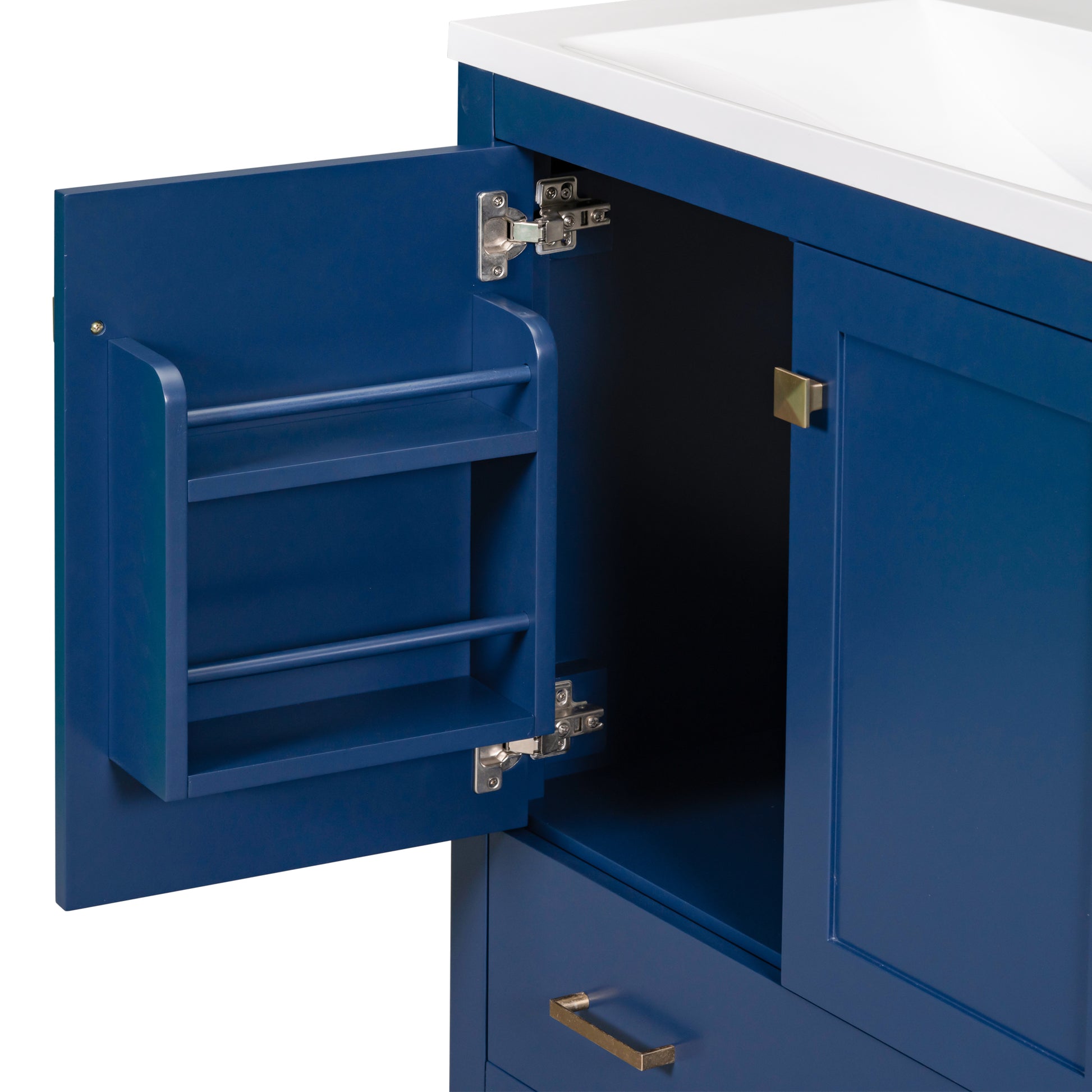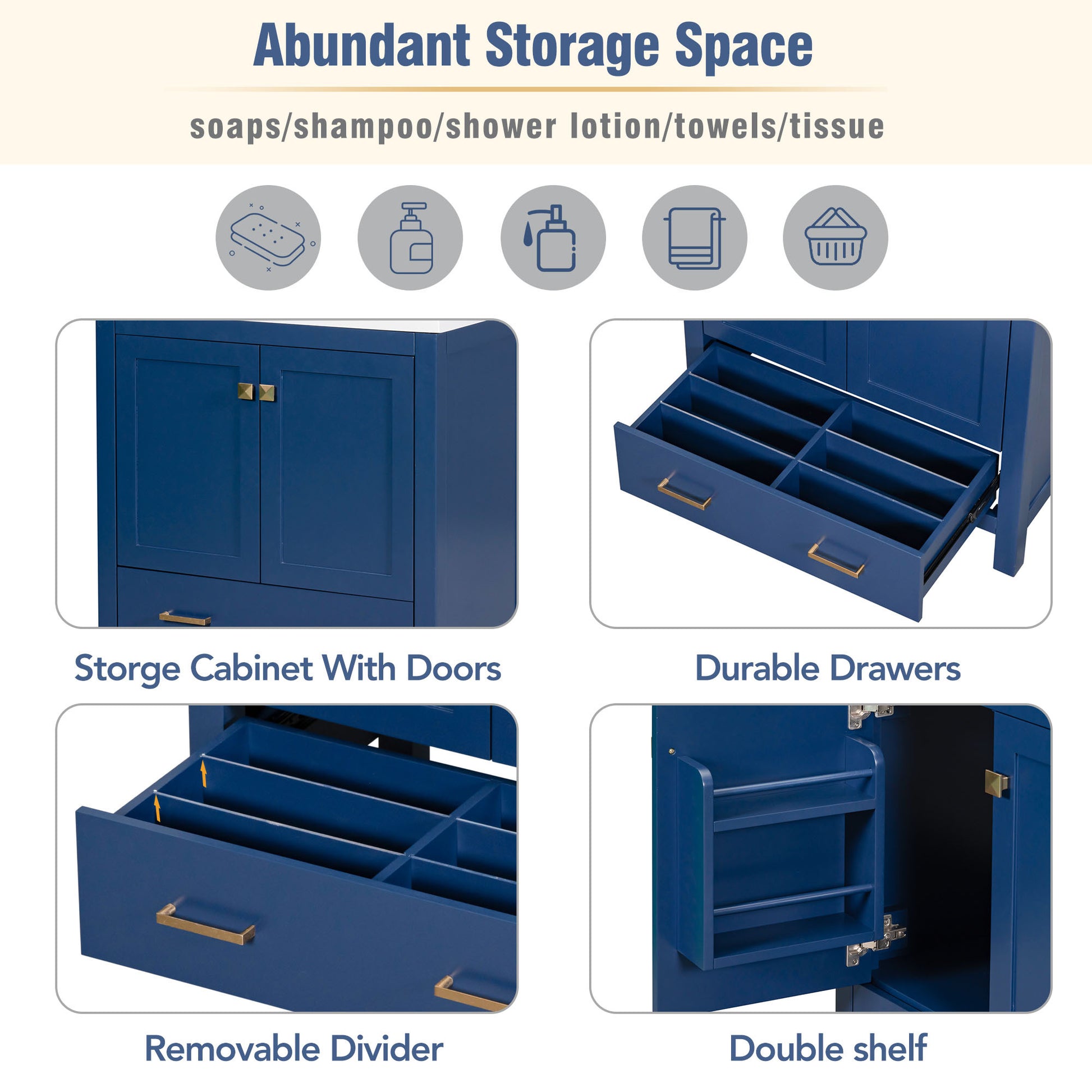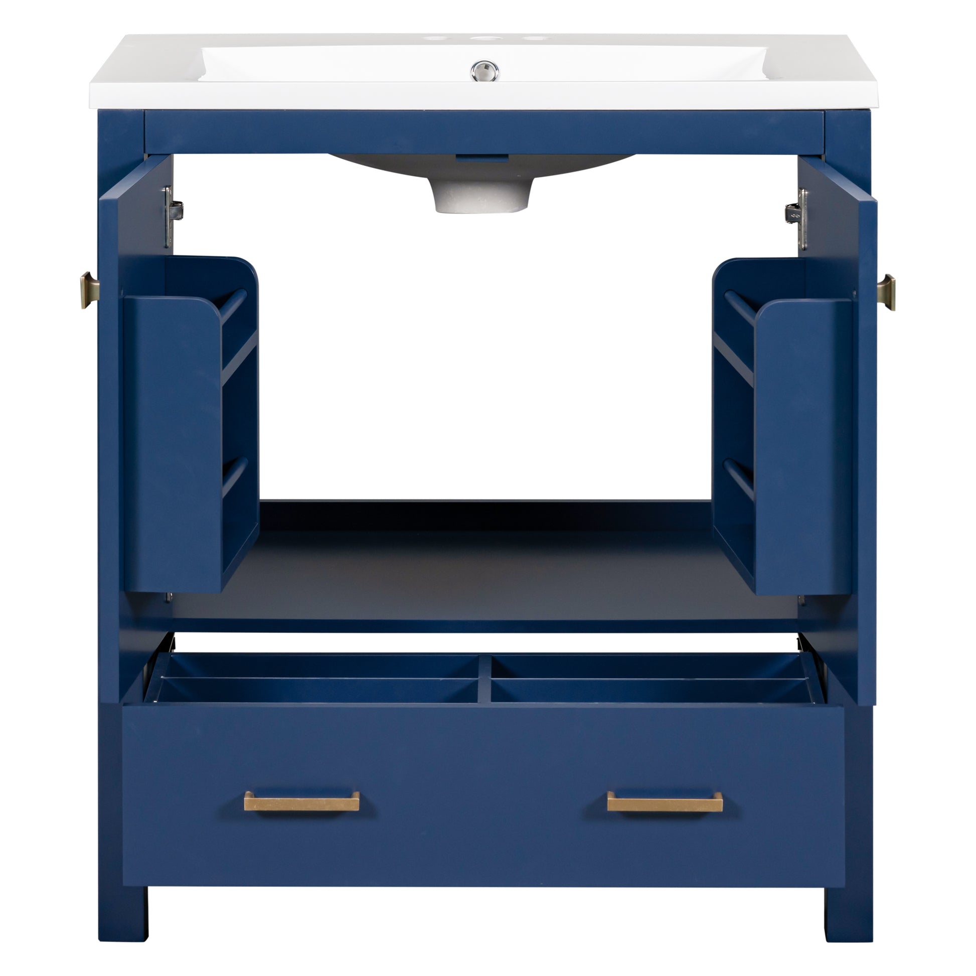 30" Blue Bathroom Vanity With Single Sink, Combo Cabinet Undermount Sink, Bathroom Storage Cabinet With 2 Doors And A Drawer, Soft Closing, Multifunctional Storage, Solid Wood Frame Blue Solid Wood Mdf Resin