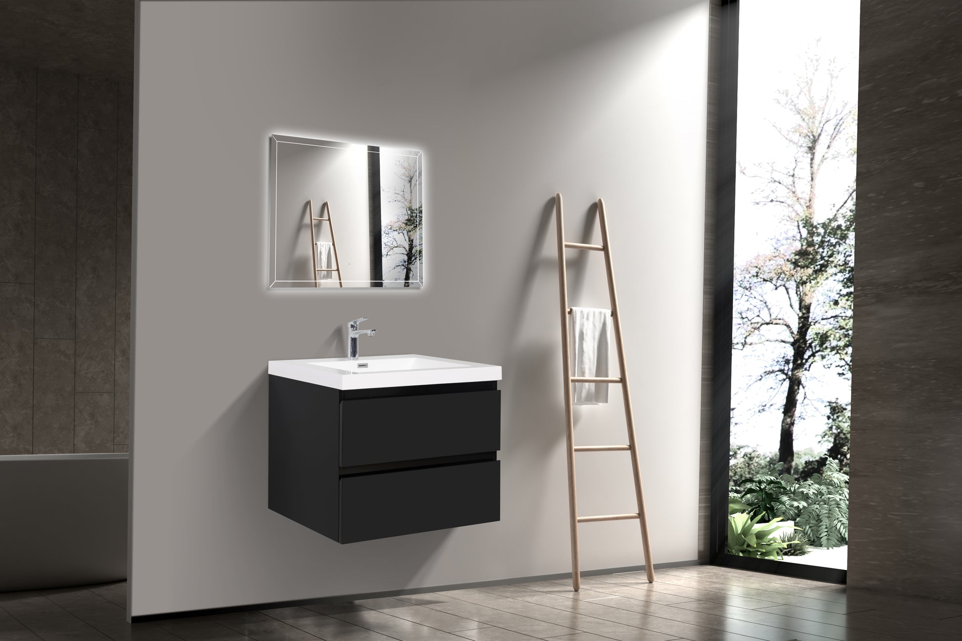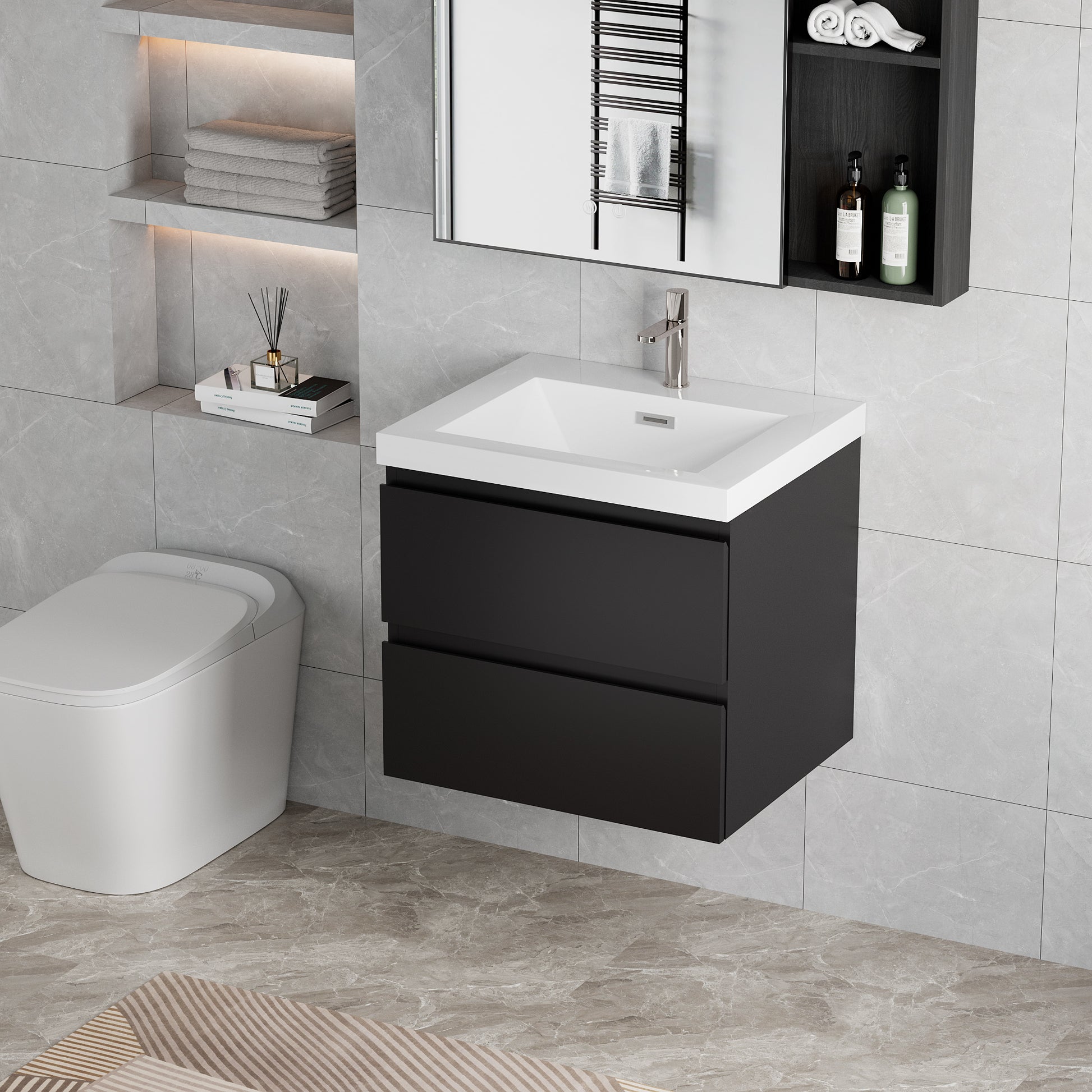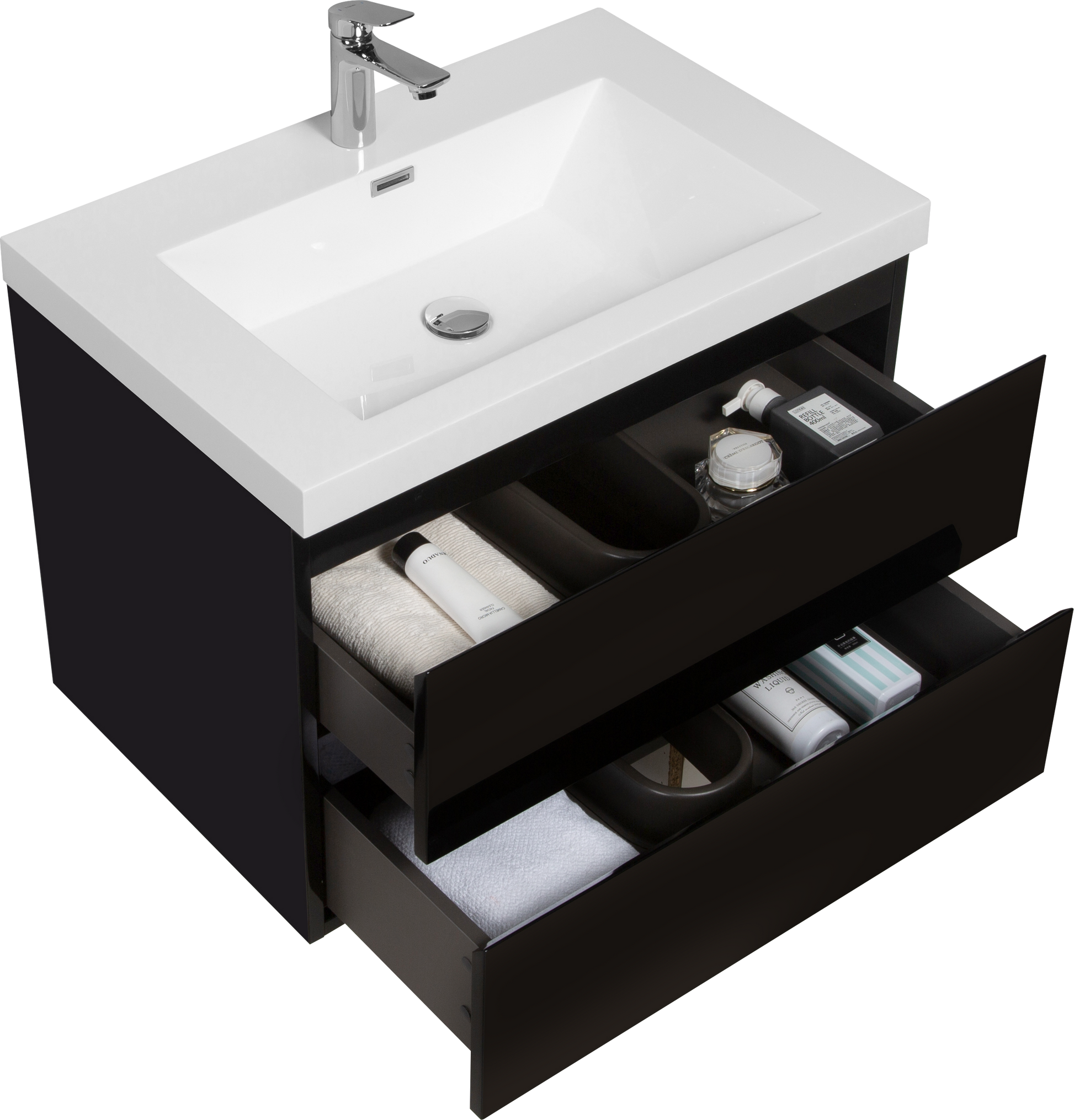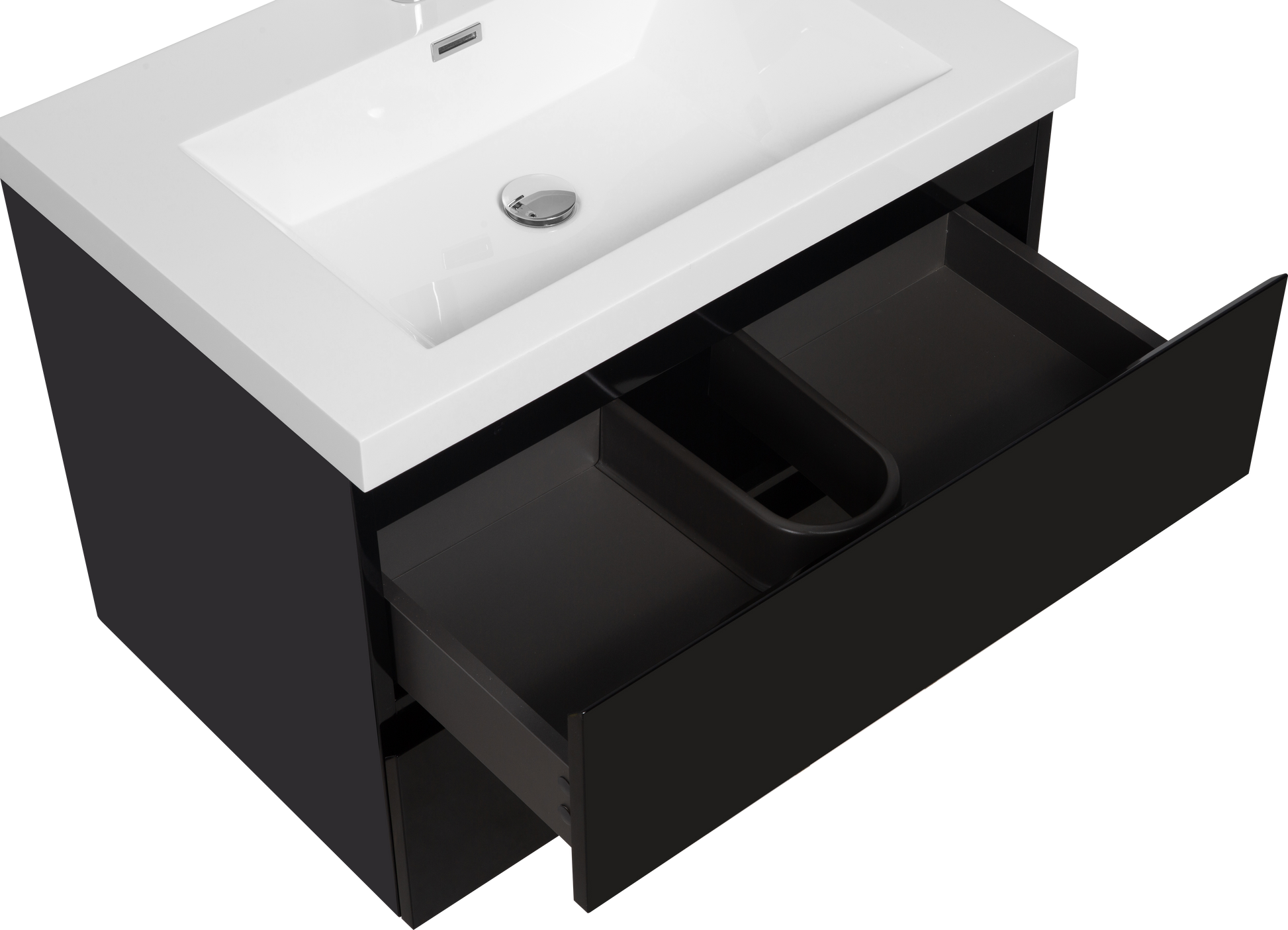 30" Floating Bathroom Vanity With Sink, Modern Wall Mounted Bathroom Storage Vanity Cabinet With Resin Top Basin And Soft Close Drawers, Glossy Black 24V11 30Gb 2 Black Bathroom Wall Mounted Mdf