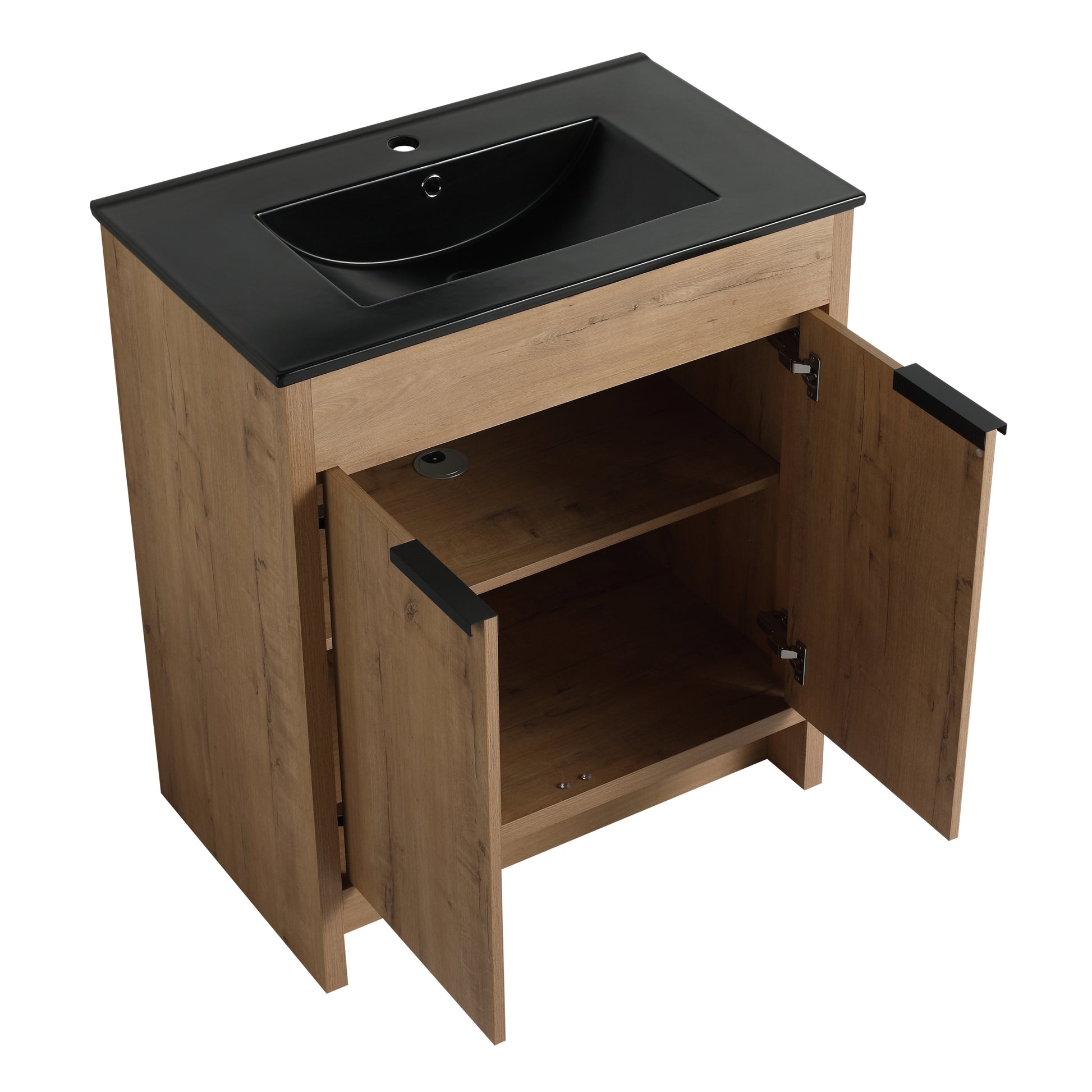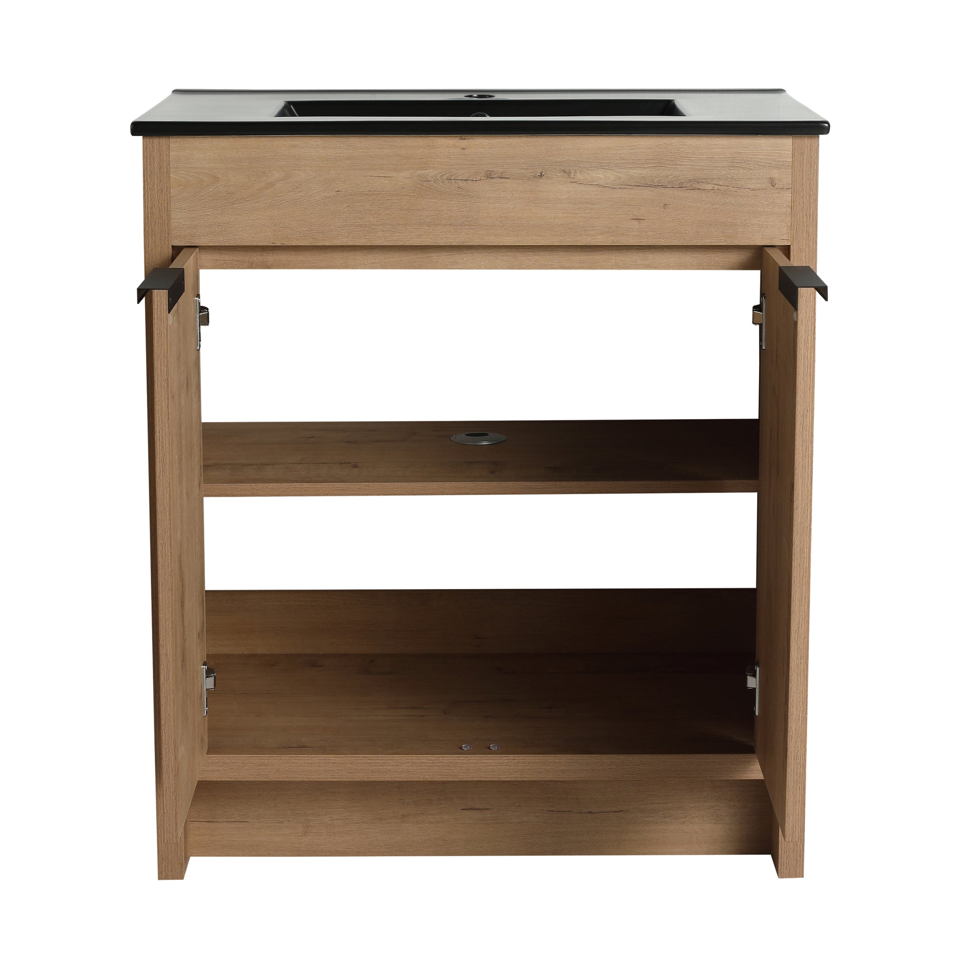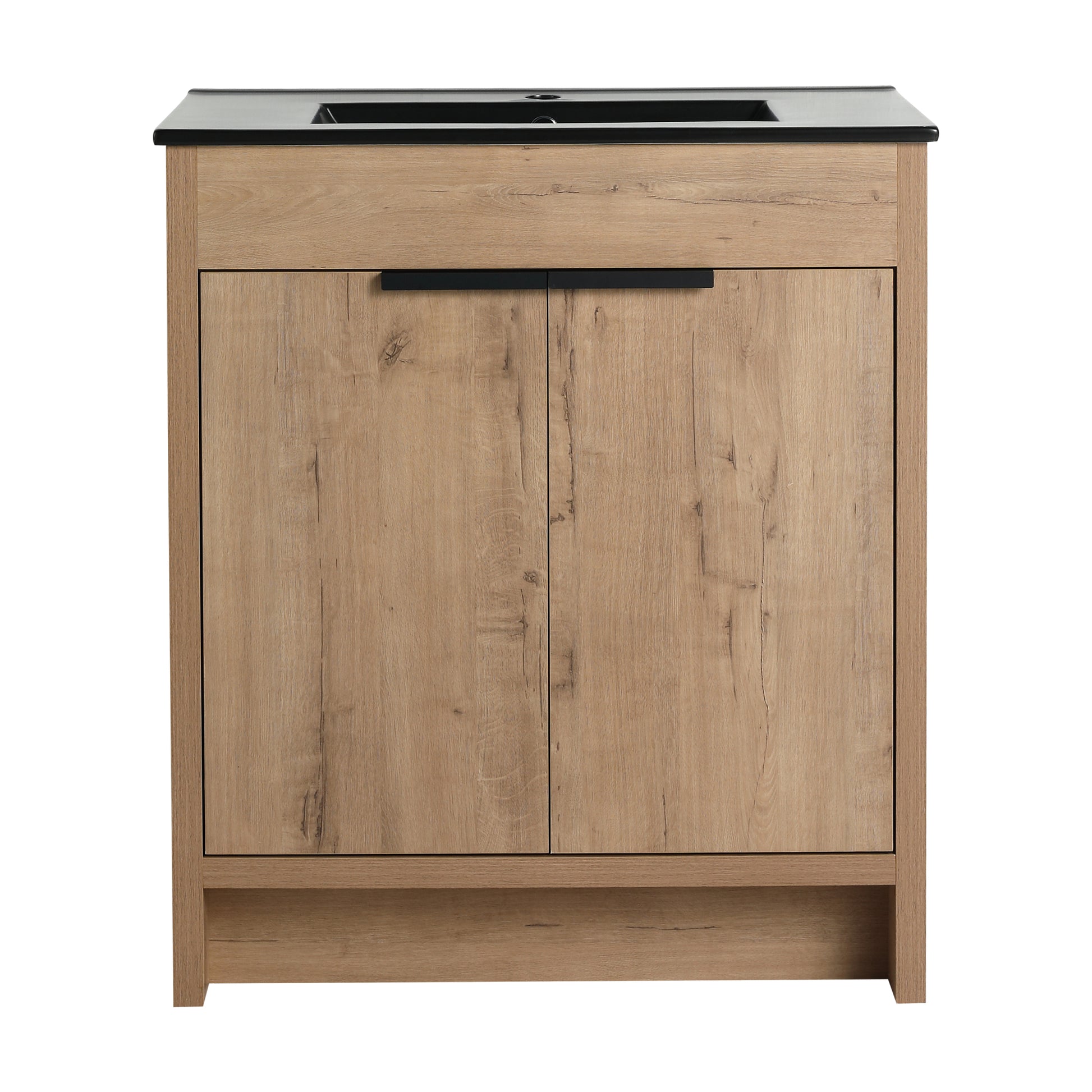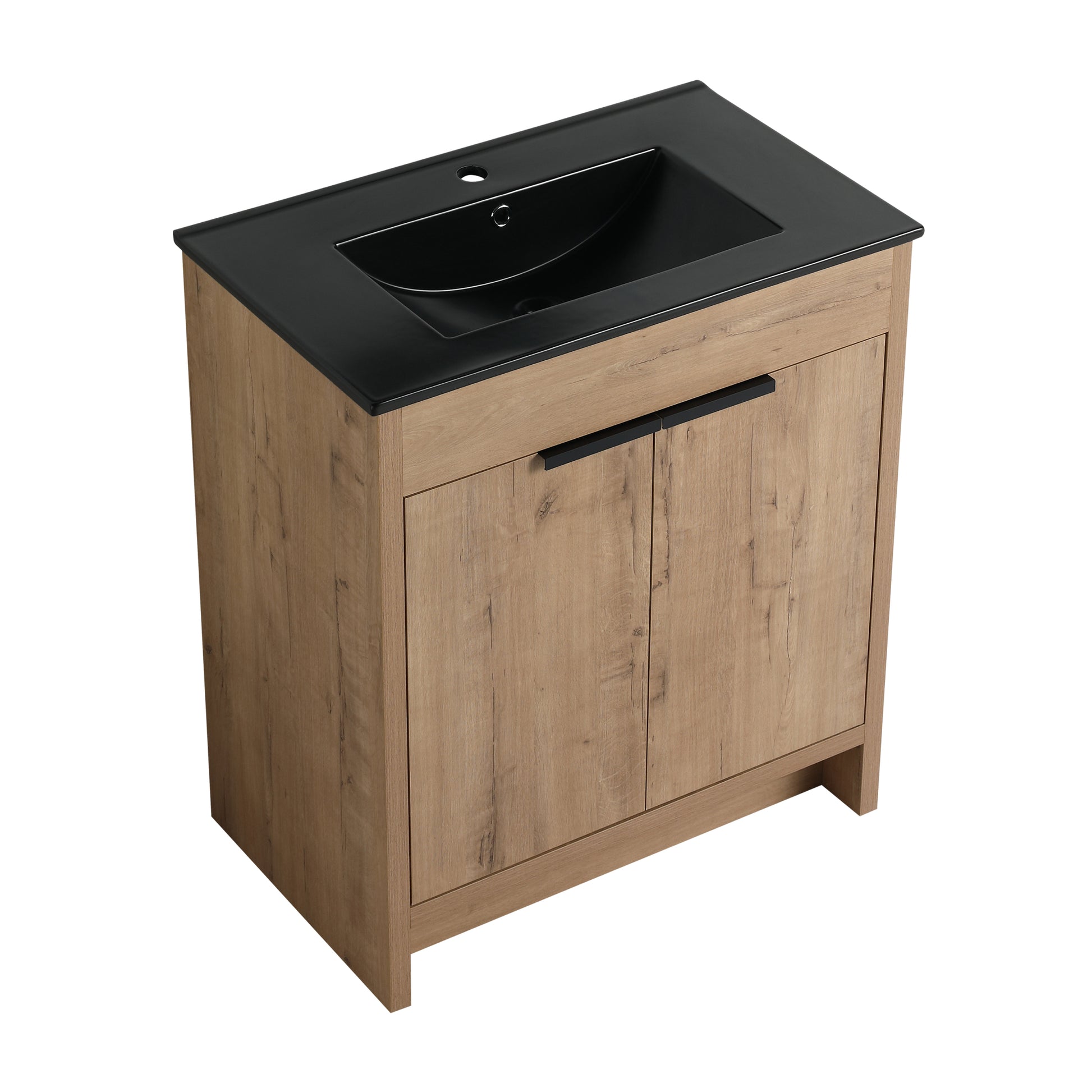 30" Freestanding Bathroom Cabinet With Basin & 2 Soft Close Cabinet Doors Kd Packing ,Bvb02430Imo Bl9075Bk Imitative Oak 2 Plywood