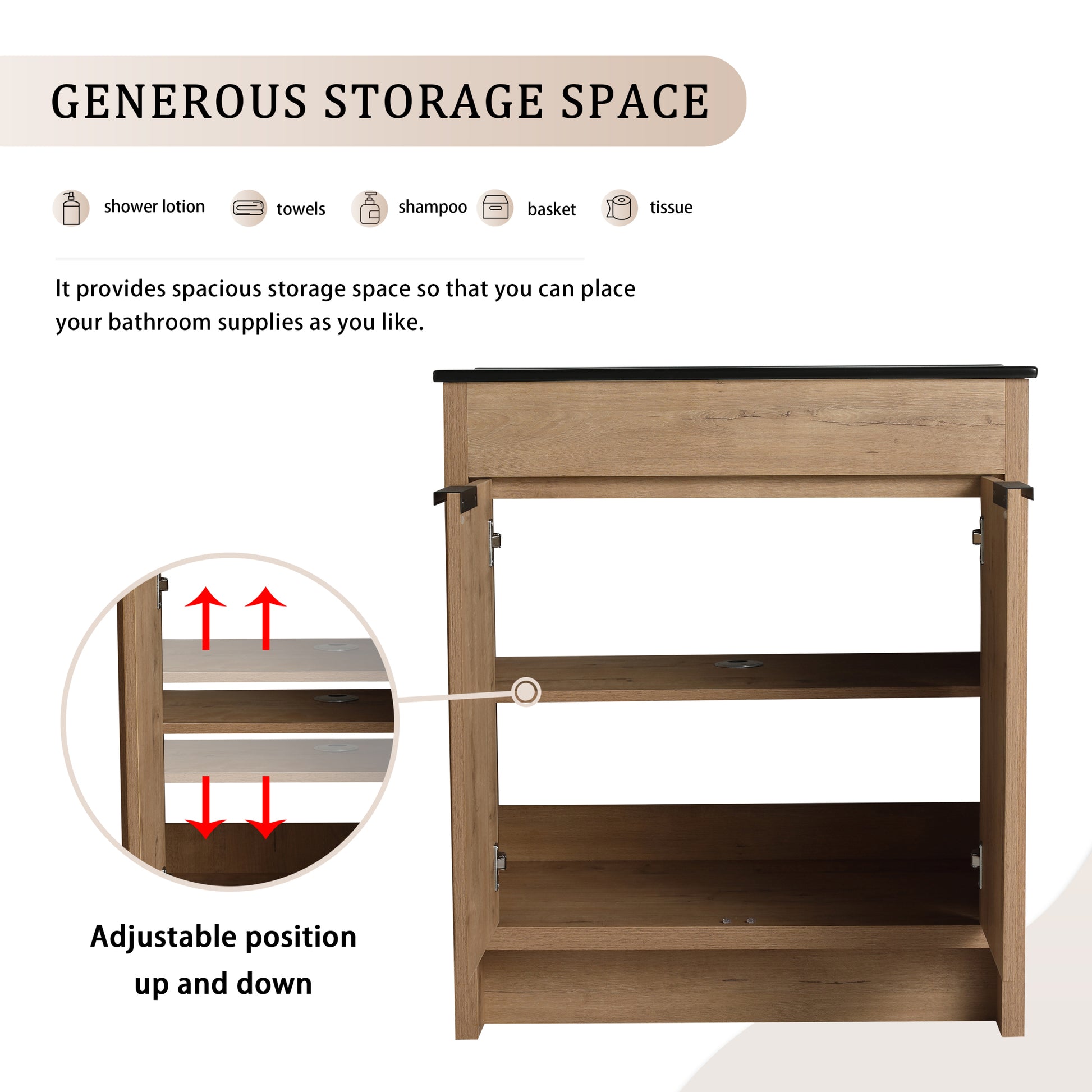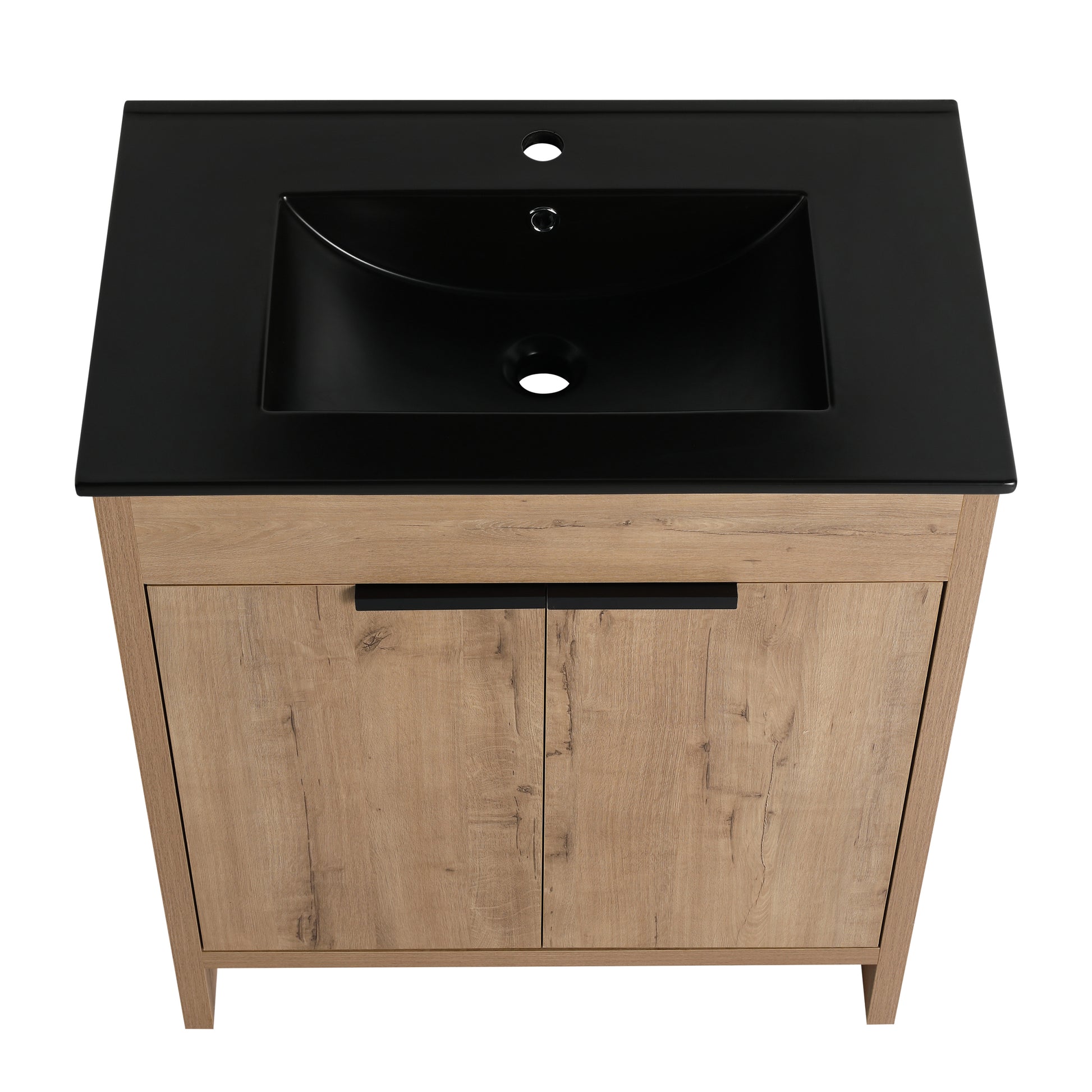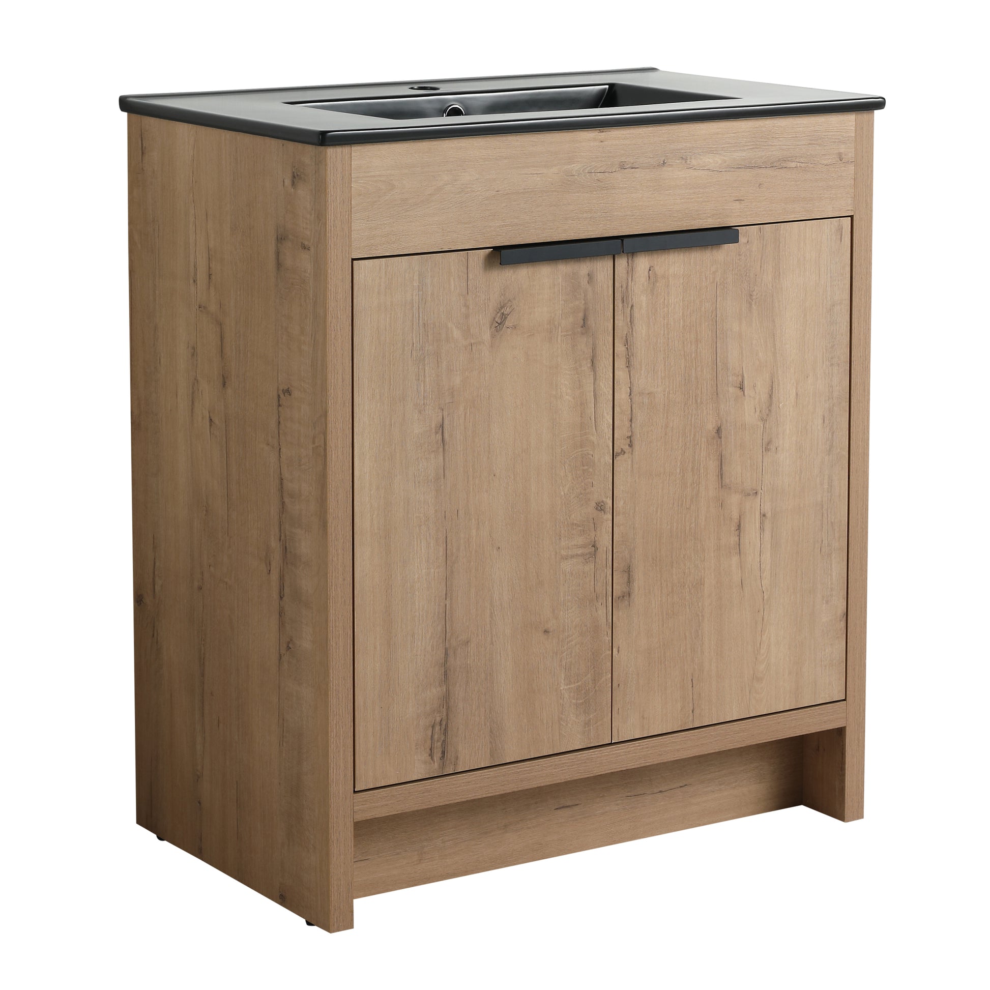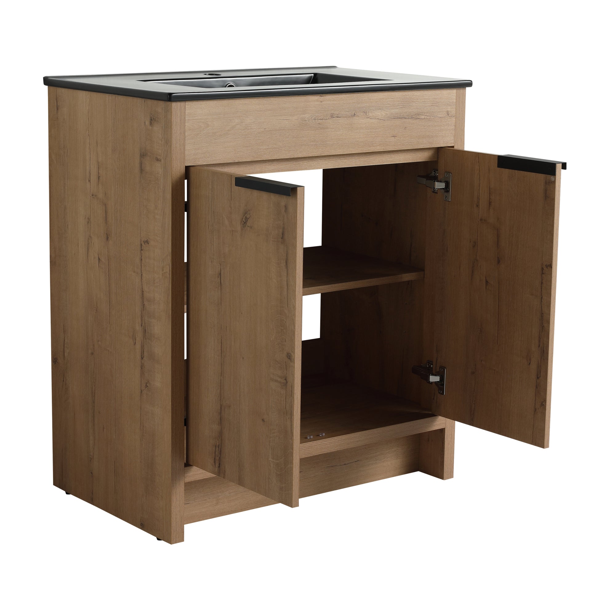 30" Freestanding Bathroom Cabinet With Basin & 2 Soft Close Cabinet Doors Kd Packing ,Bvb02430Imo Bl9075Bk Imitative Oak 2 Plywood