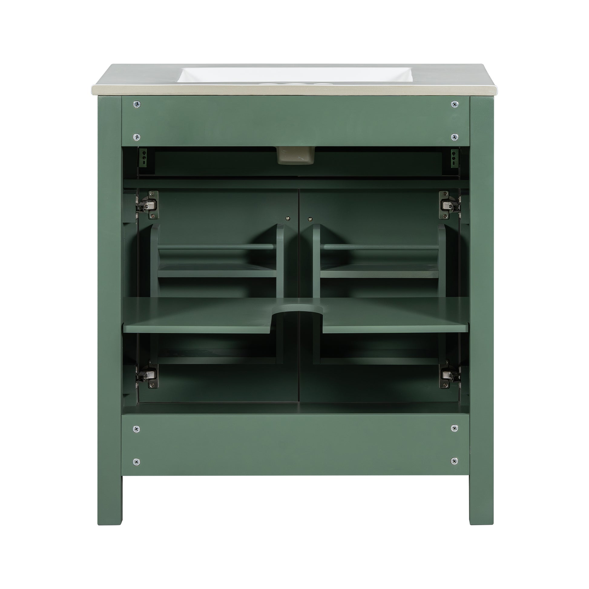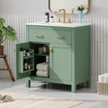 30 Inch Bathroom Vanity With Ceramic Sink, Modern Green Single Bathroom Cabinet With 2 Doors And A Shelf, Soft Close Doors Green Bathroom Solid Wood Mdf