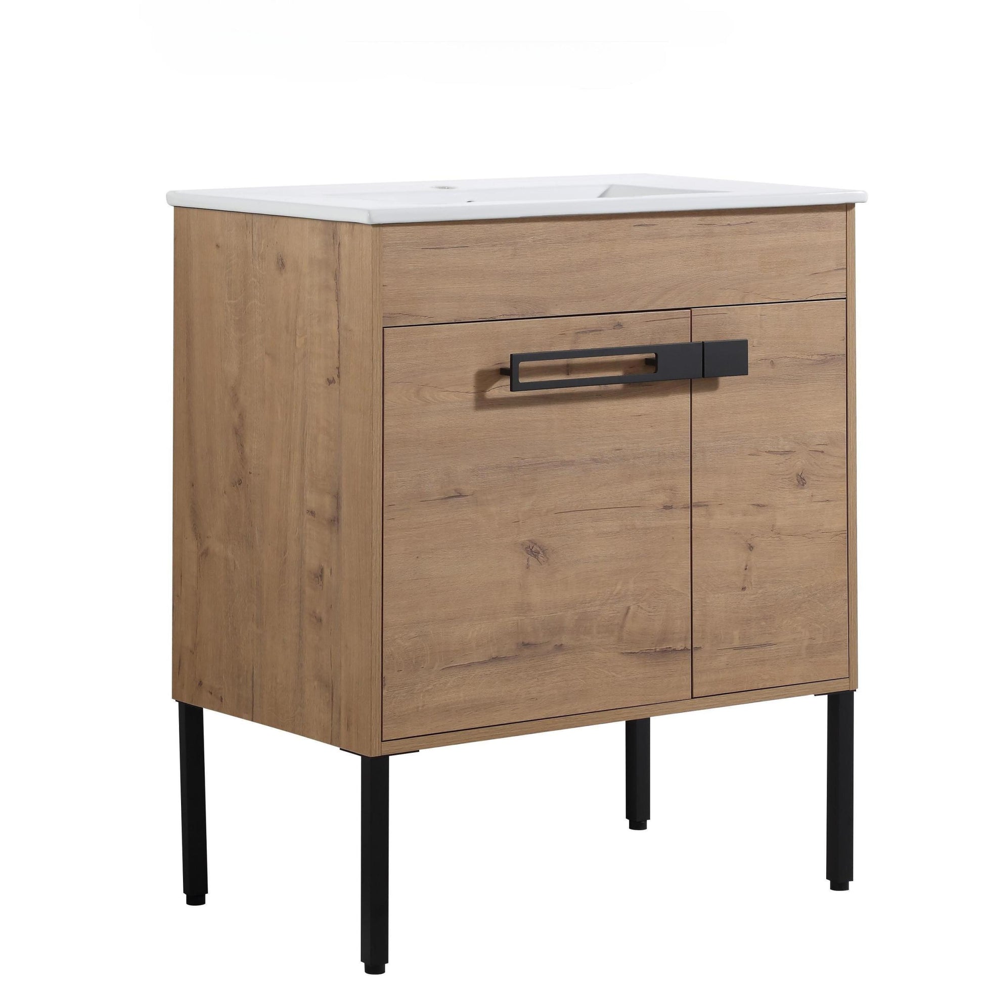 30 Inch Freestanding Bathroom Vanity Or Floating Is Optional Conversion.30*18 00330Imo 1 Kd Packing Only Including Vanity Imitative Oak 2 Bathroom Freestanding Modern Plywood