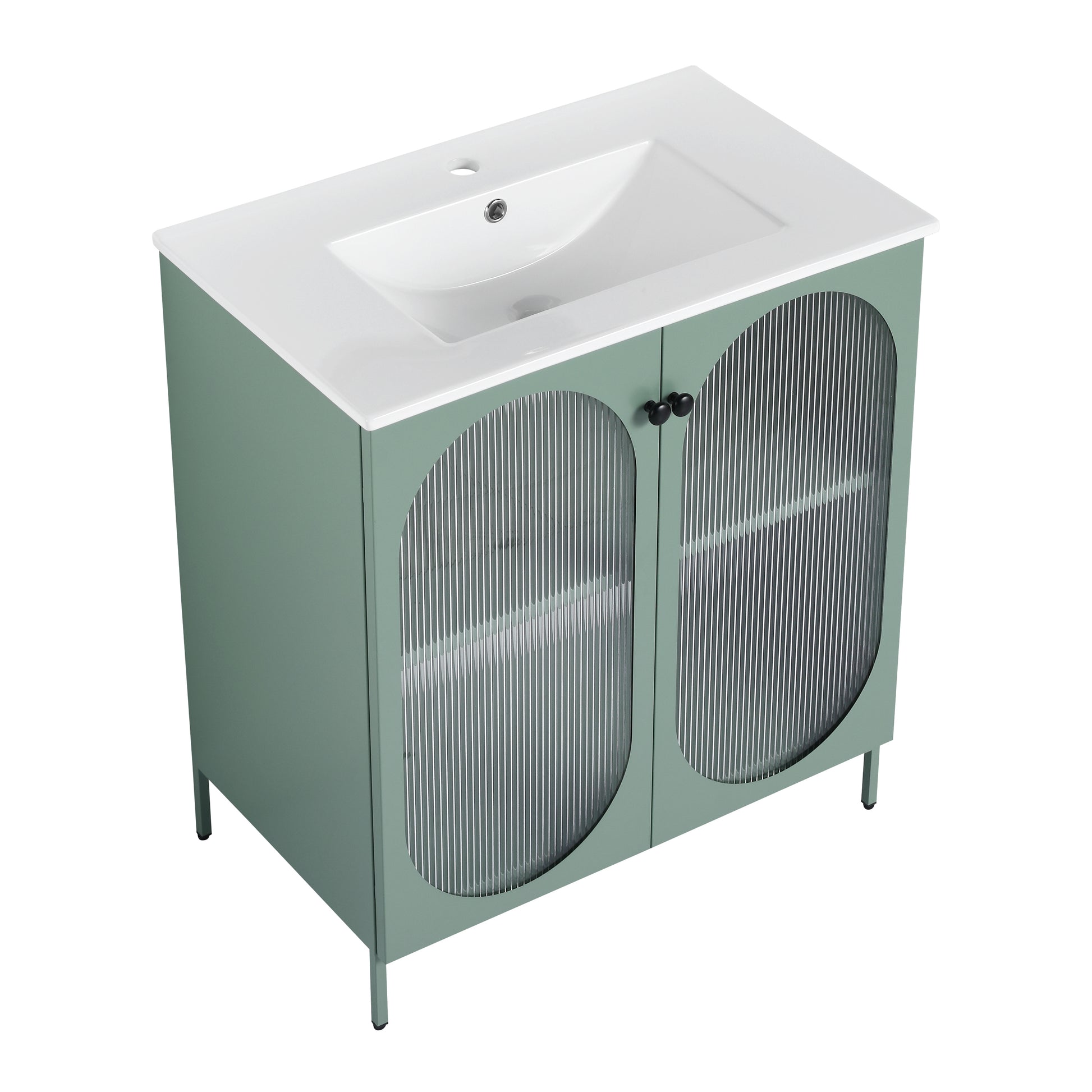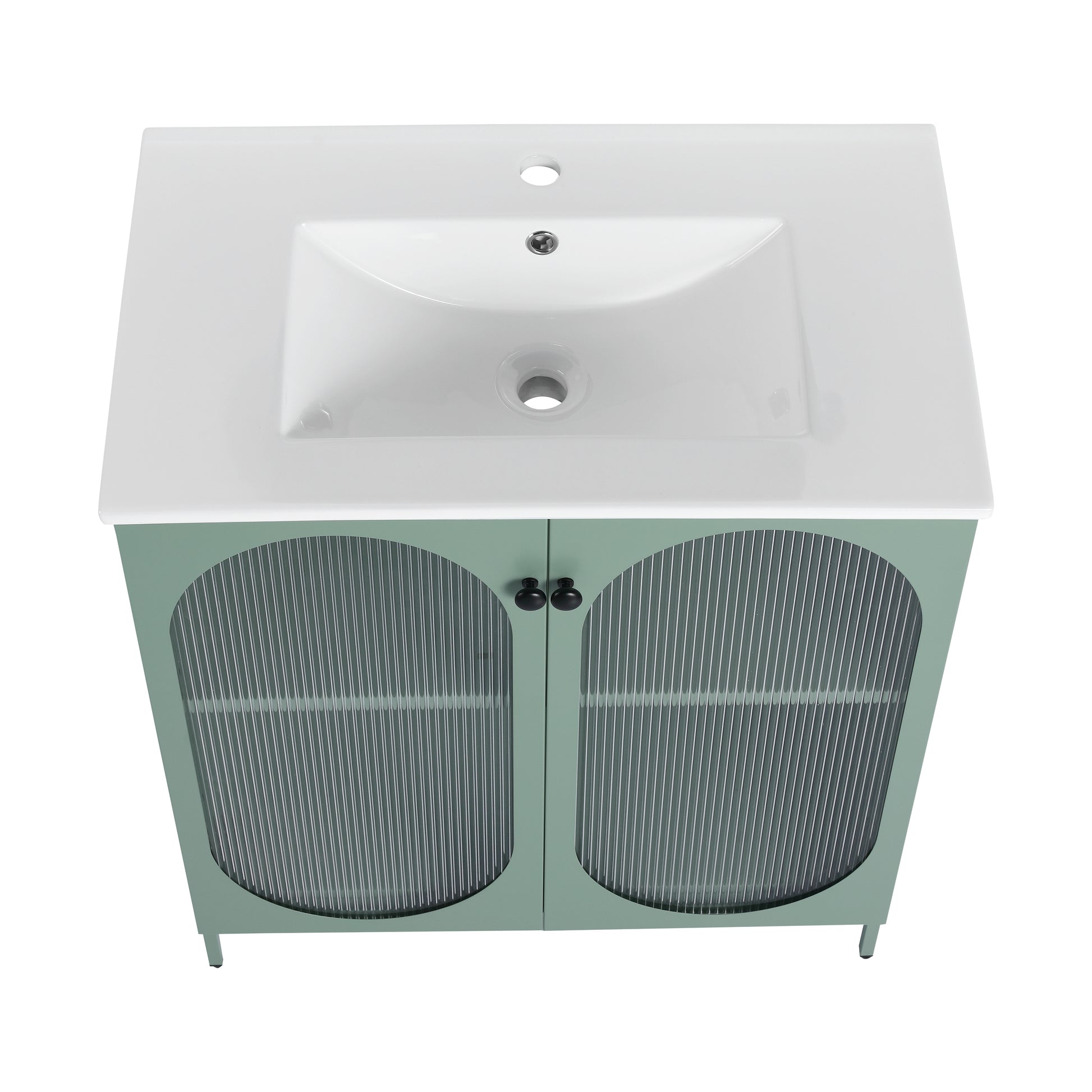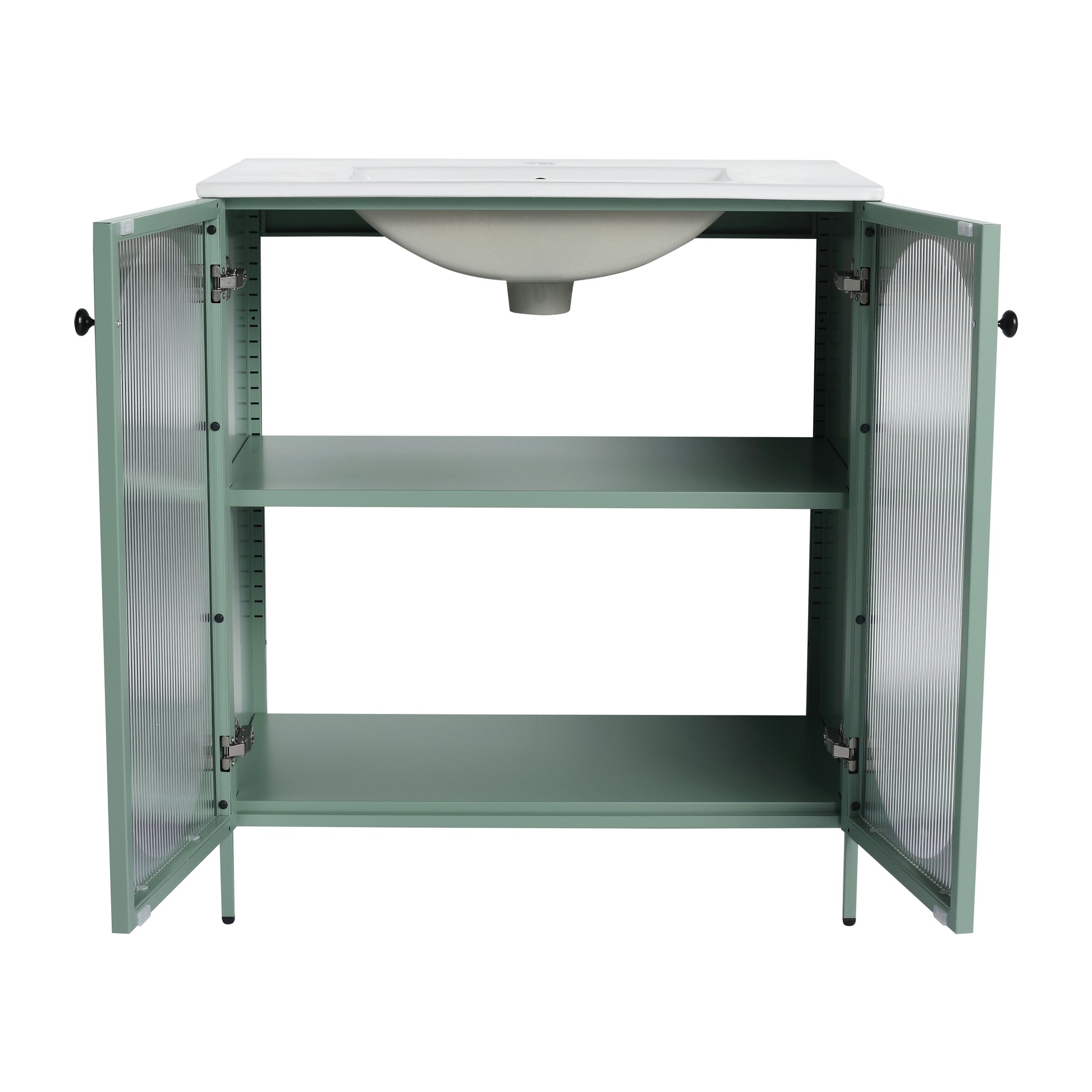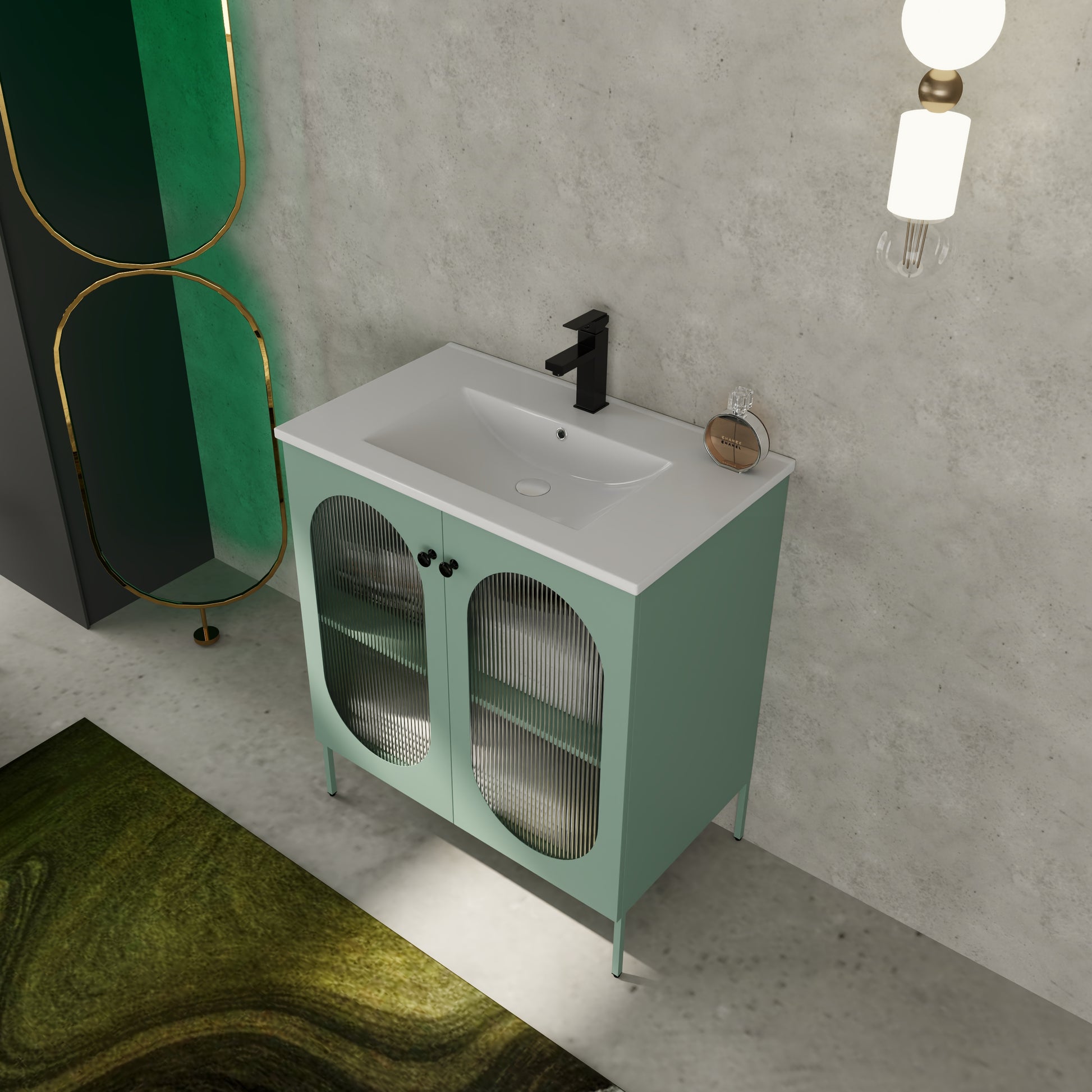 30 Inch Freestanding Bathroom Vanity With Ceramic Sink Mint Green 2 Bathroom Freestanding Modern Steel