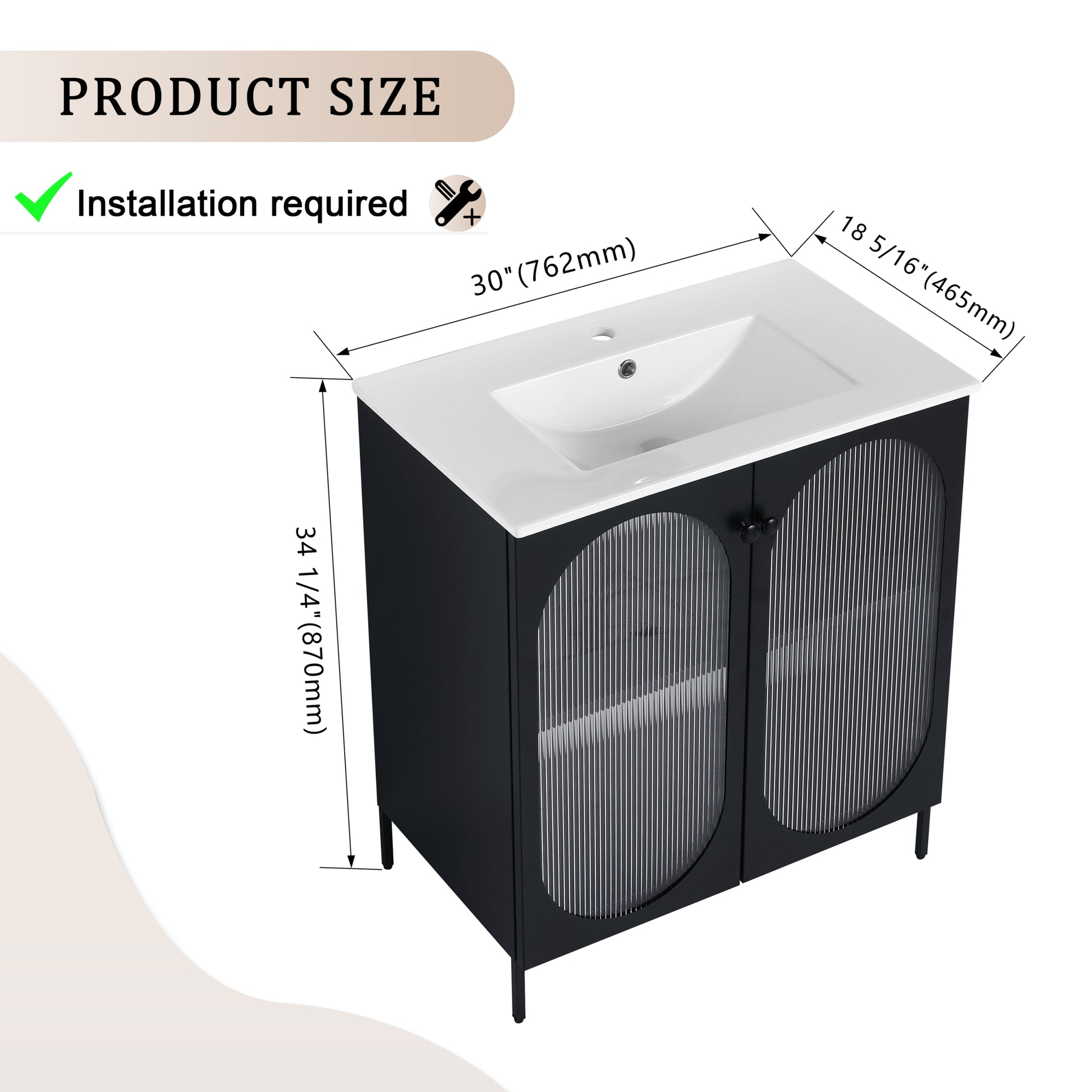 | Package includes | - 1x Vanity Cabinet; 1x Ceramic Sink;- 4x Metal Handles; Parts Package |