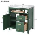 30 Inch Green Bathroom Vanity With Ceramic Sink And Large Storage Ideal Choice For Small Bathrooms Green Solid Wood Mdf