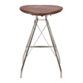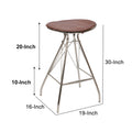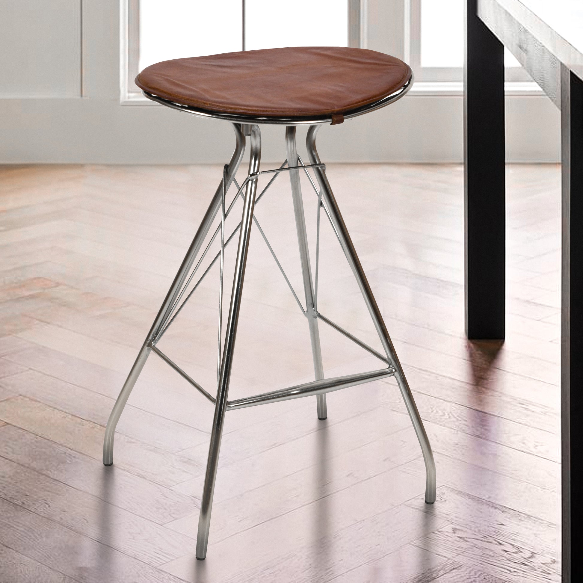 30 Inch Metal Frame Bar Stool, Round Genuine Leather Seat, Dark Brown, Silver Silver Iron