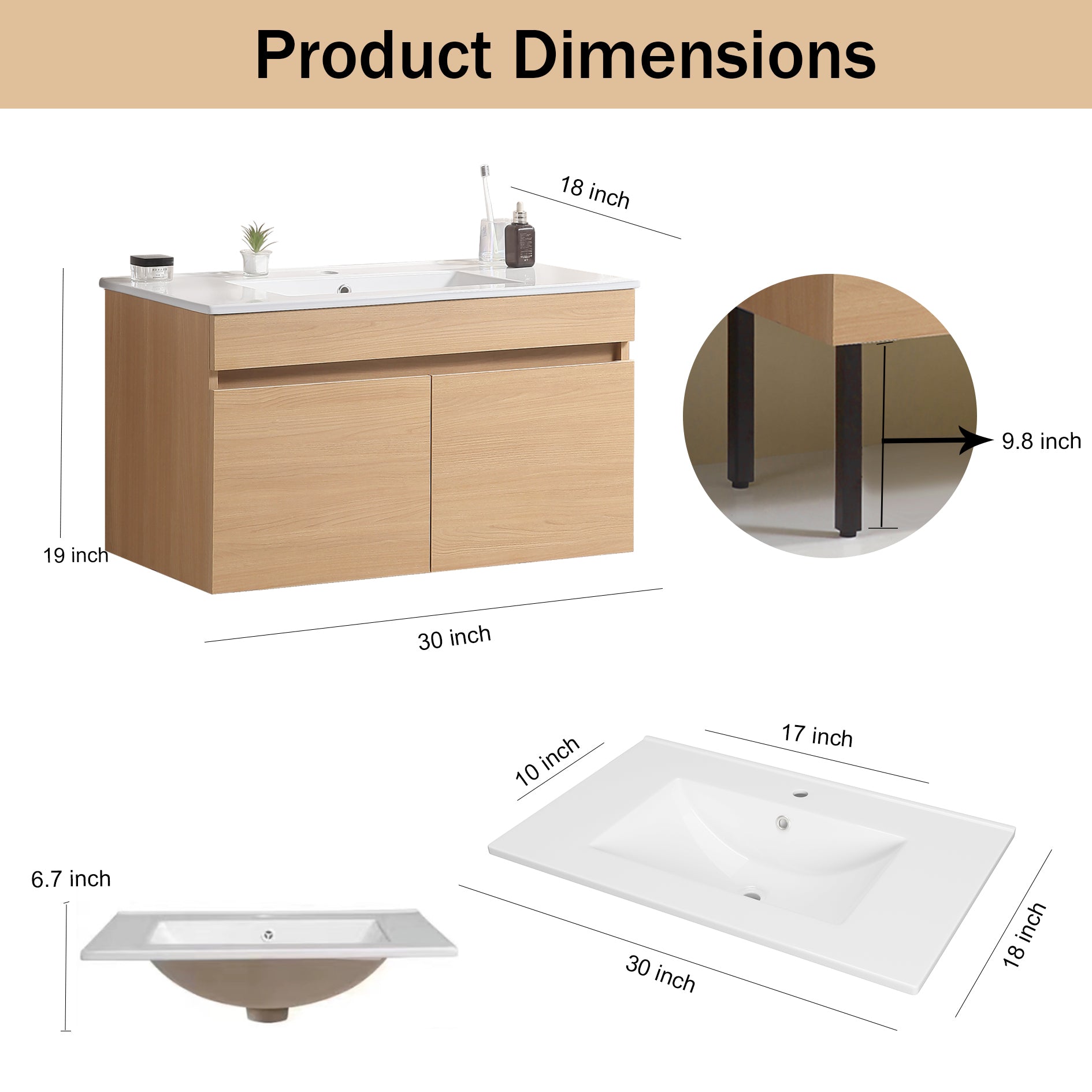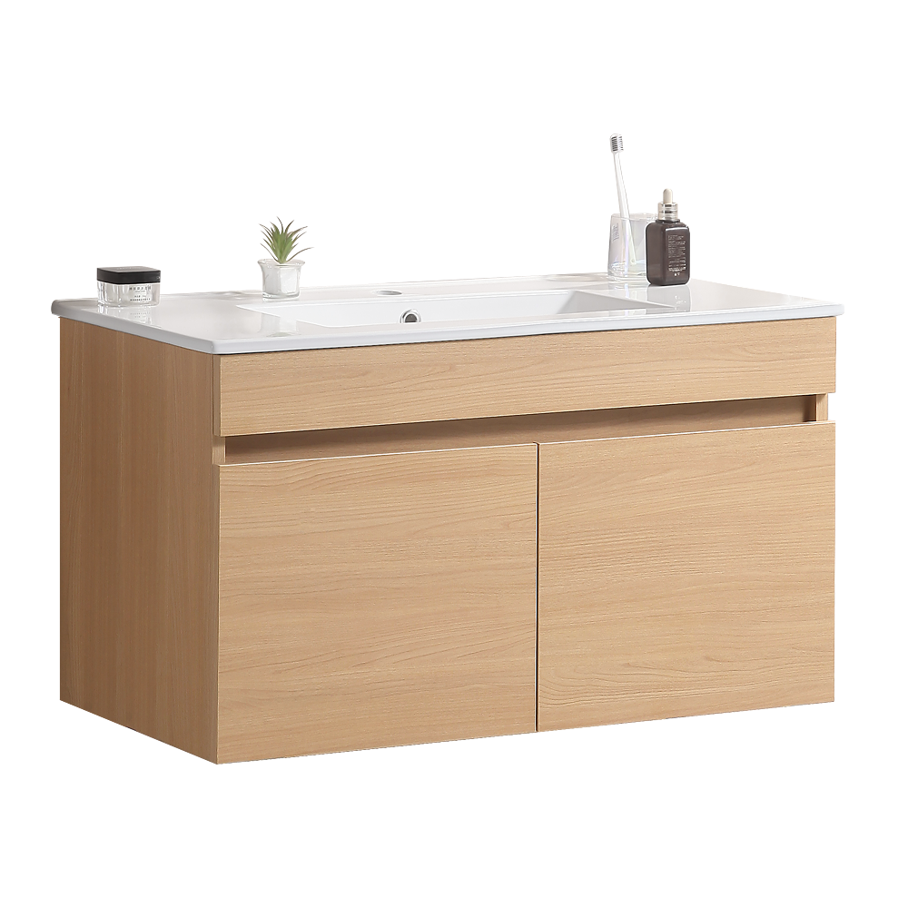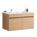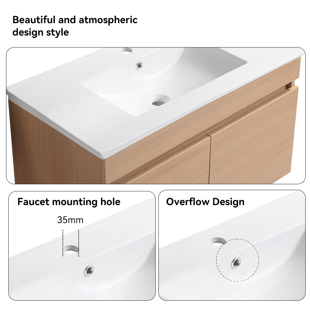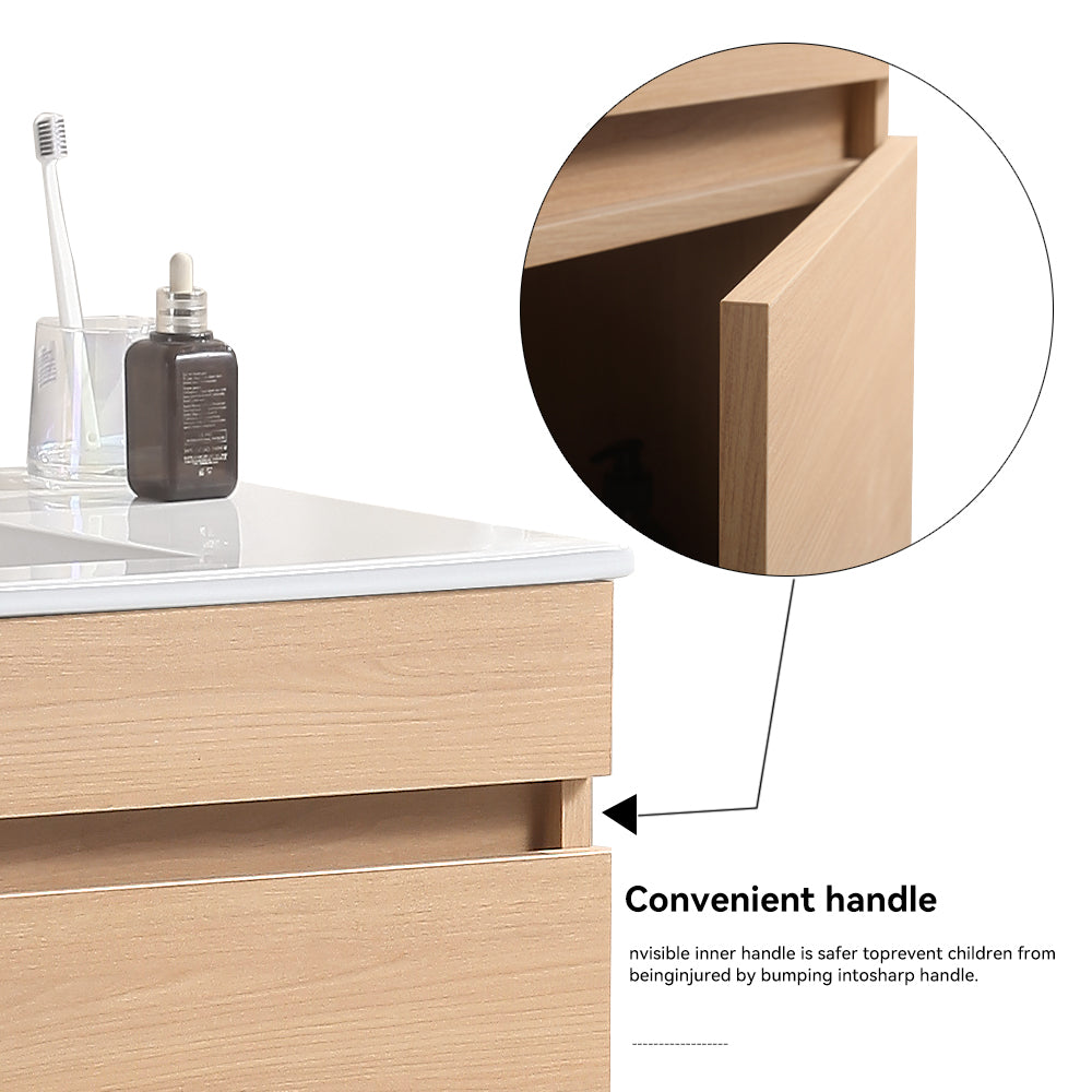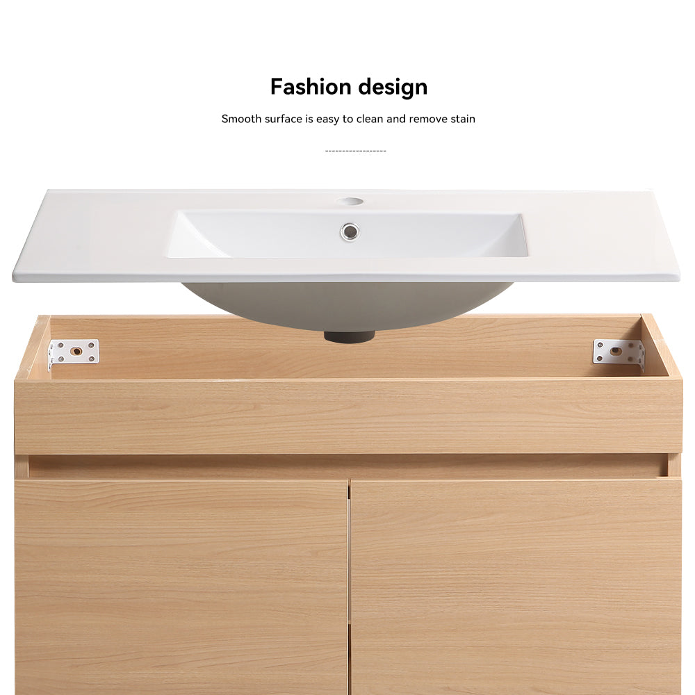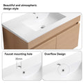 30 Inch Wall Mounted Bathroom Vanity With White Ceramic Basin,Two Soft Close Cabinet Doors, Solid Wood,Excluding Faucets,Light Oak Light Oak Solid Wood