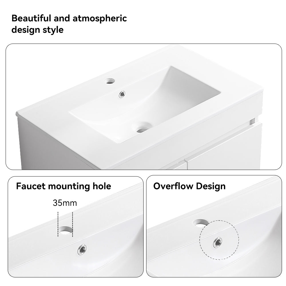 30 Inch Wall Mounted Bathroom Vanity With White Ceramic Basin,Two Soft Close Cabinet Doors, Solid Wood,Excluding Faucets,White White Solid Wood