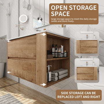 30" Wall Mounting Bathroom Vanity With Gel Sink, Soft Close Drawer 2 Imitative Oak 1 Bathroom Wall Mounted Modern Plywood