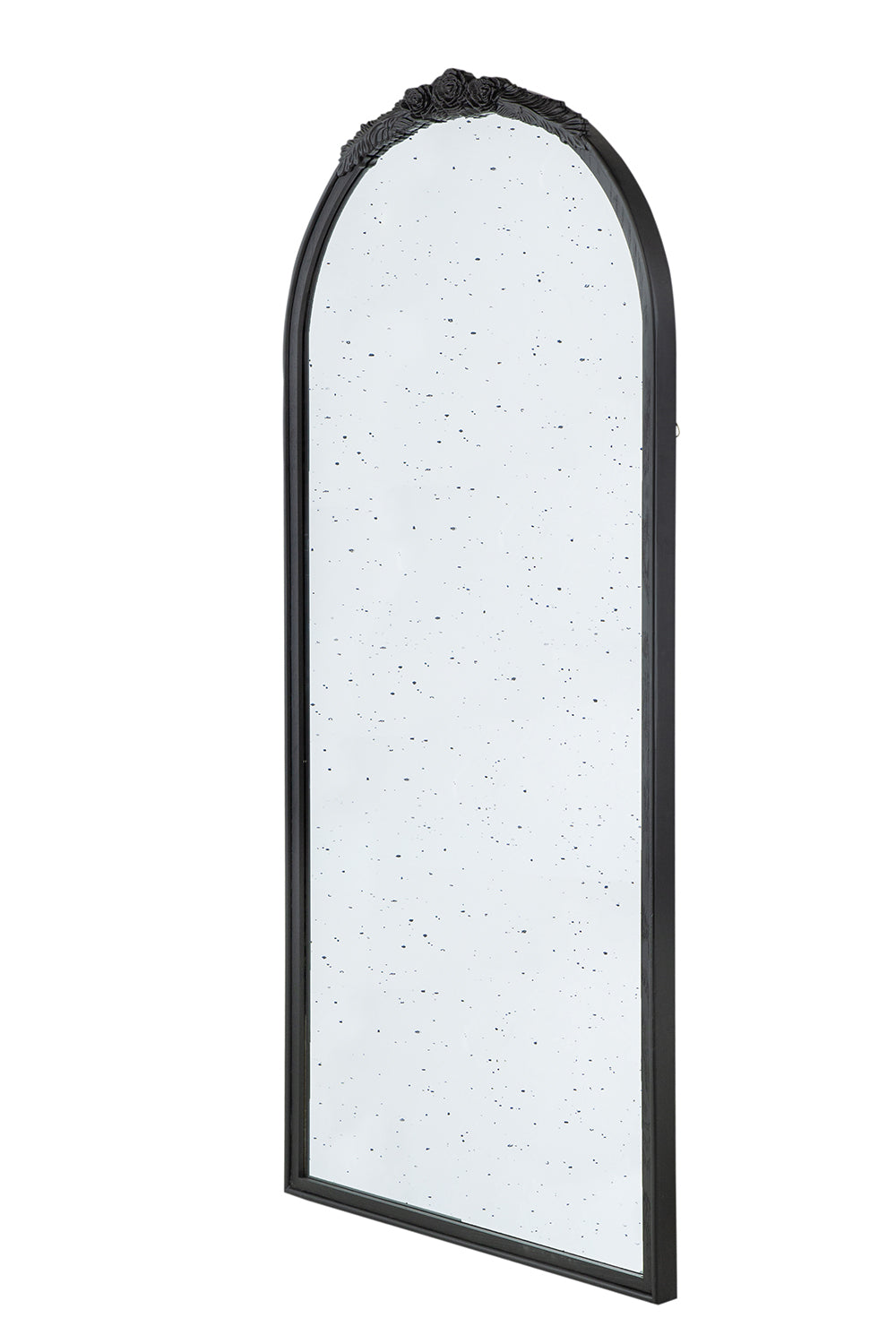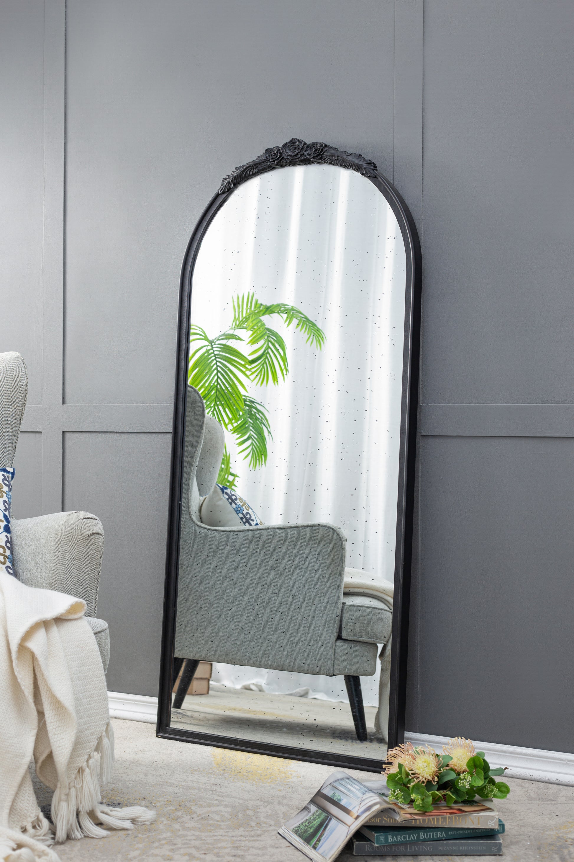30" X 65" Hand Carved Rose Antique Mirror Frame, Large Arch Mirror Wall Decor For Living Room, Bathroom, Entryway Black Black Mdf Glass