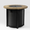 30Inch Round Fire Pit Table Propane Fire Table With Lava Rocks Black Steel