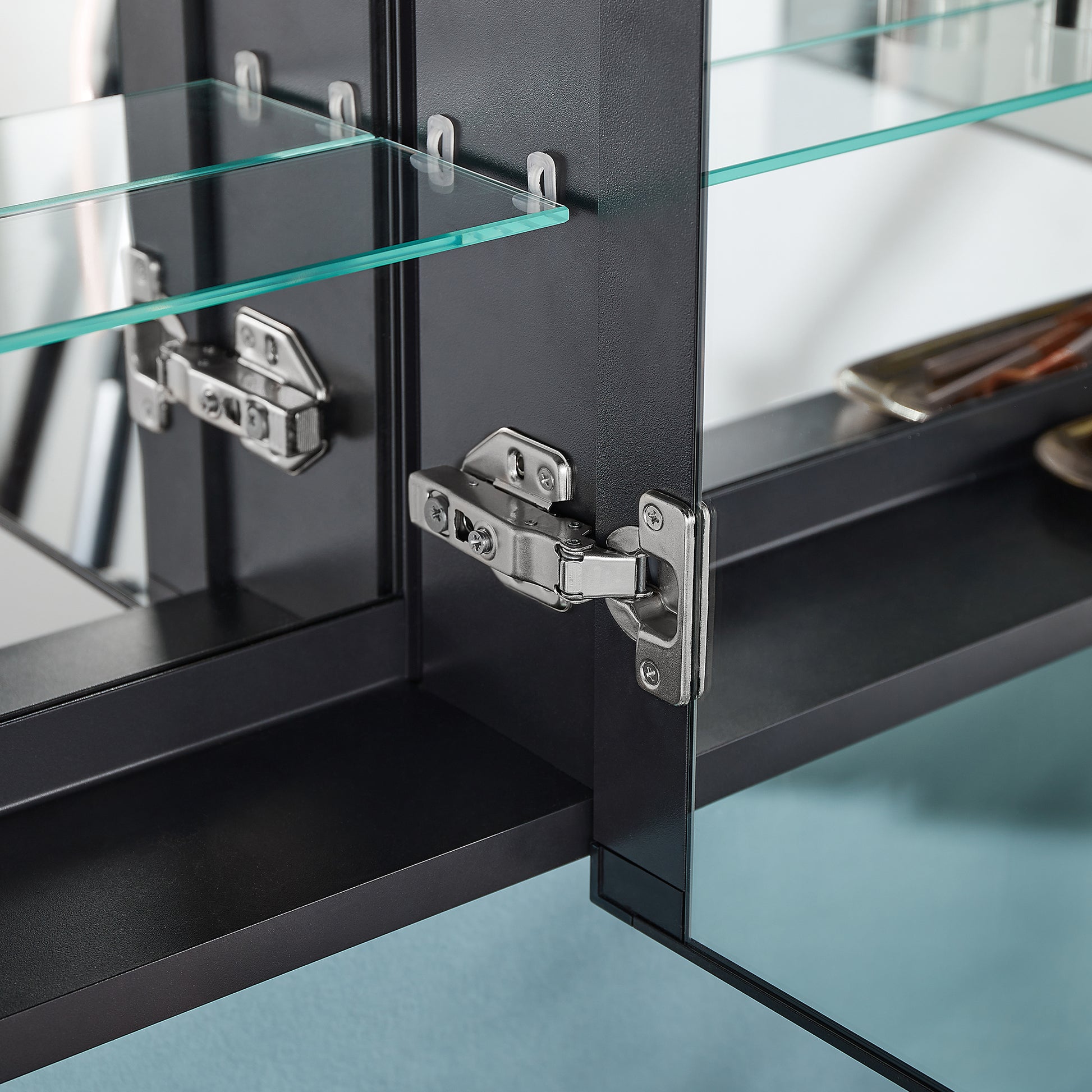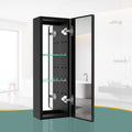 30X10 Inch Medicine Cabinets Aluminum Bathroom Medicine Cabinet Adjustable Glass Shelves Black Black Modern Aluminium