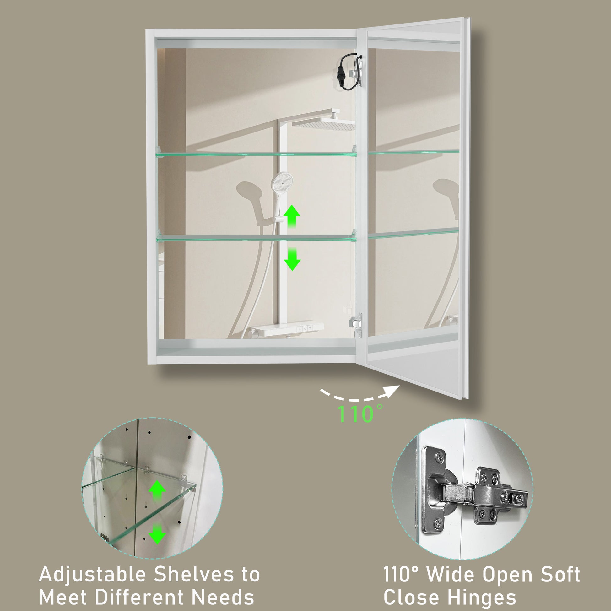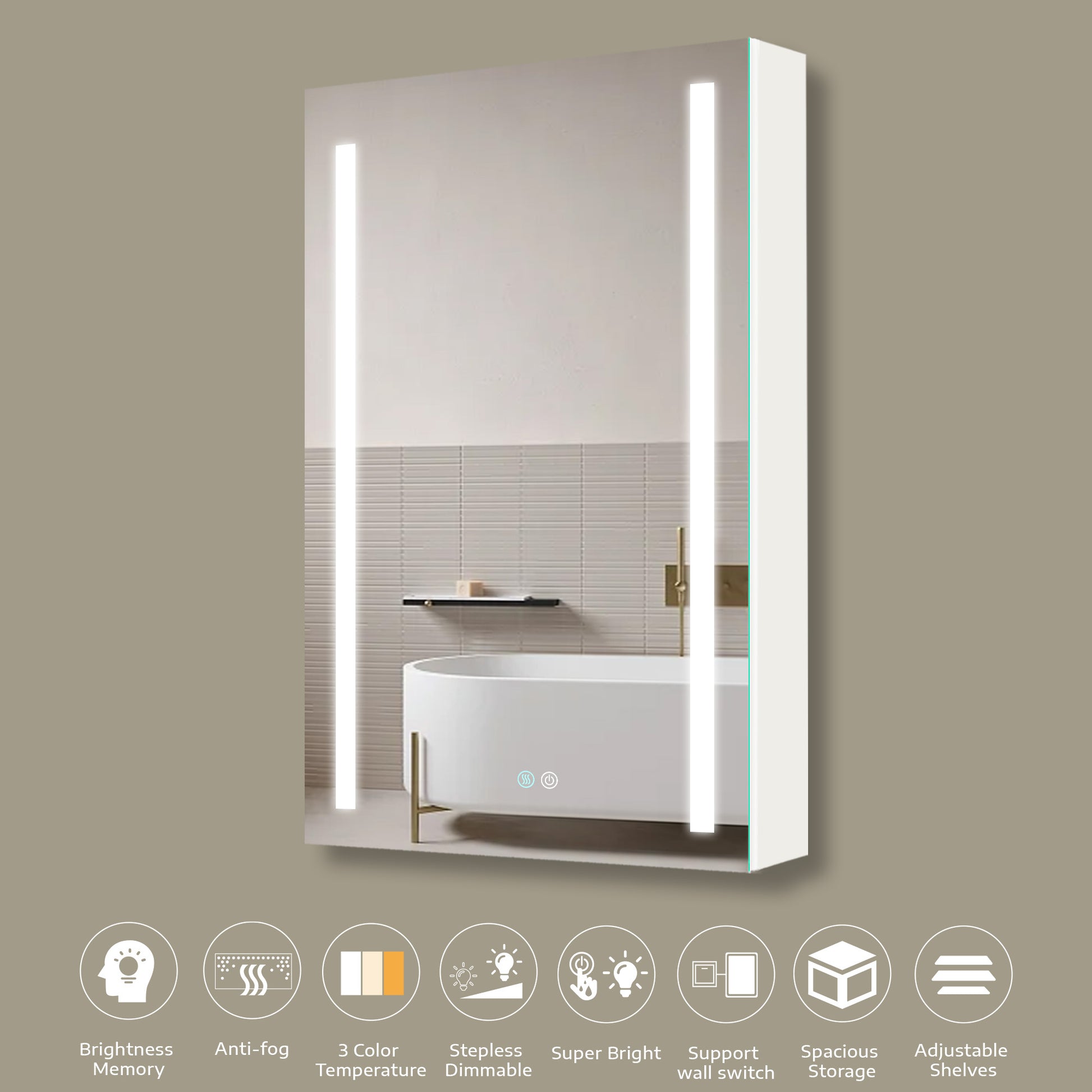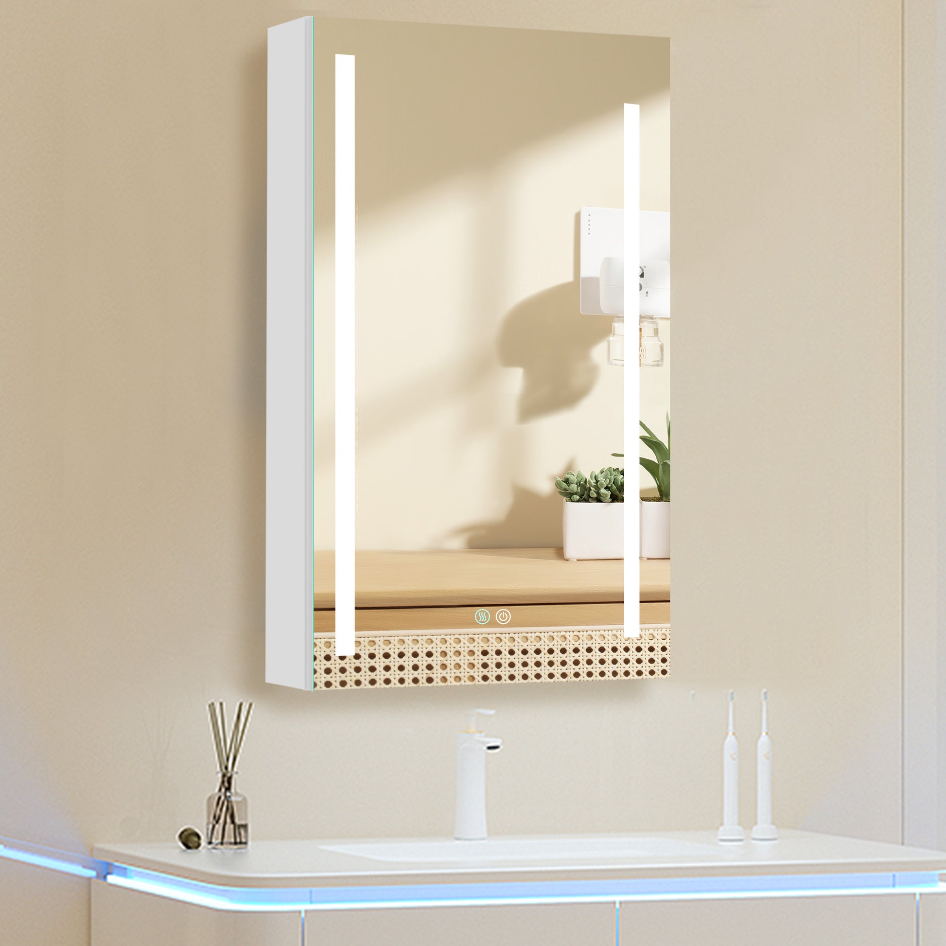 30X20 Inch Led Bathroom Medicine Cabinet Surface Mounted Cabinets With Lighted Mirror White Right Open White Modern Aluminium