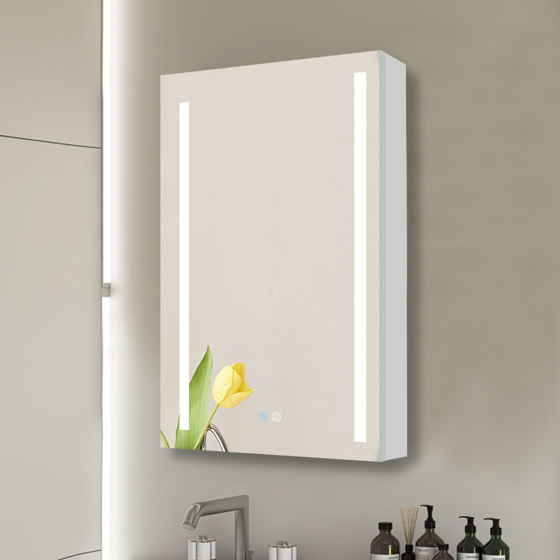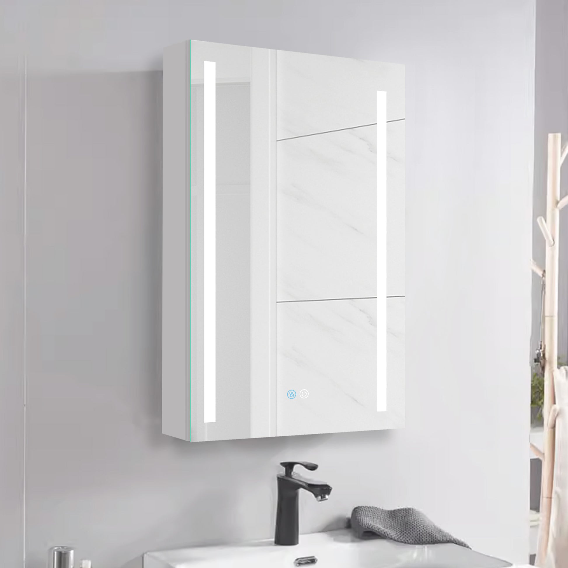 30X20 Inch Led Bathroom Medicine Cabinet Surface Mounted Cabinets With Lighted Mirror White Left Open White Modern Aluminium