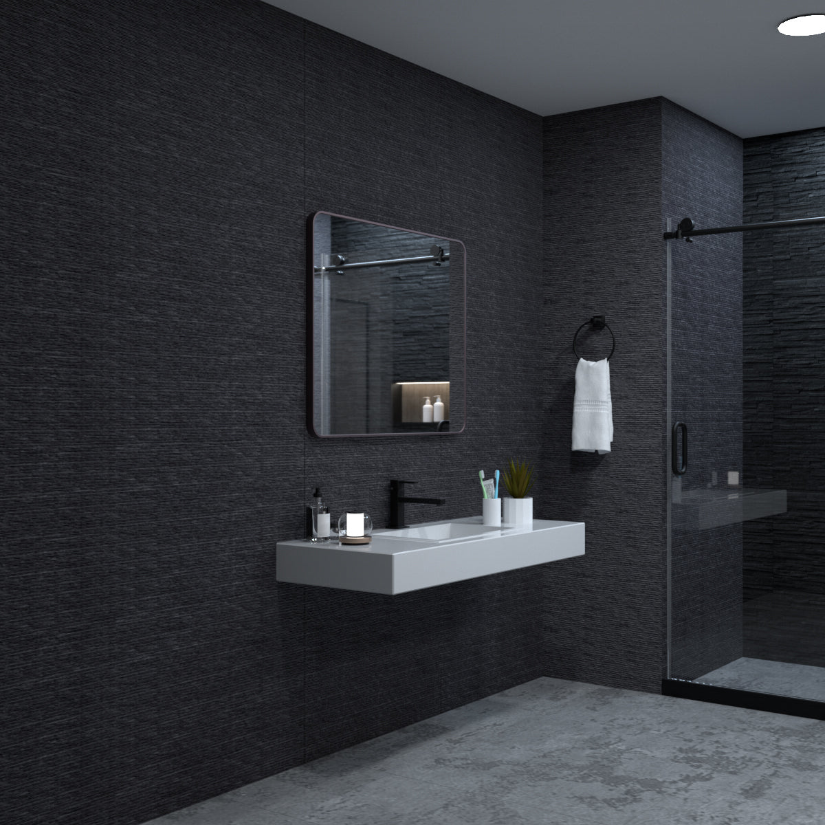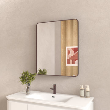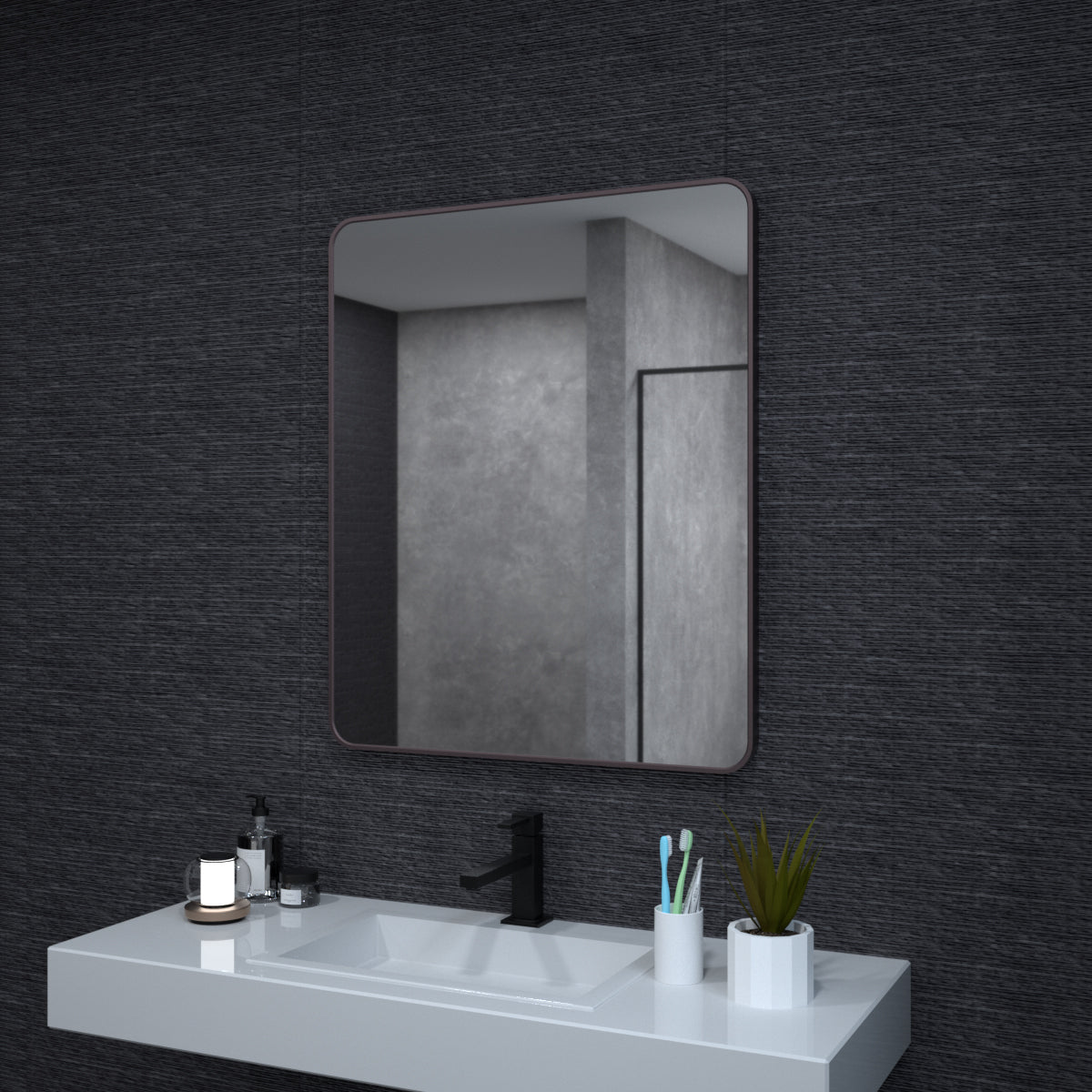 30X36 In. Aluminum Framed Rounded Rectangle Bathroom Wall Mirror, Oil Rubbed Bronze Bathroom Vanity Mirror Farmhouse, Anti Rust, Tempered Glass Mirrors, Hangs Horizontally Or Vertiy Oil Rubbed Bronze Aluminium