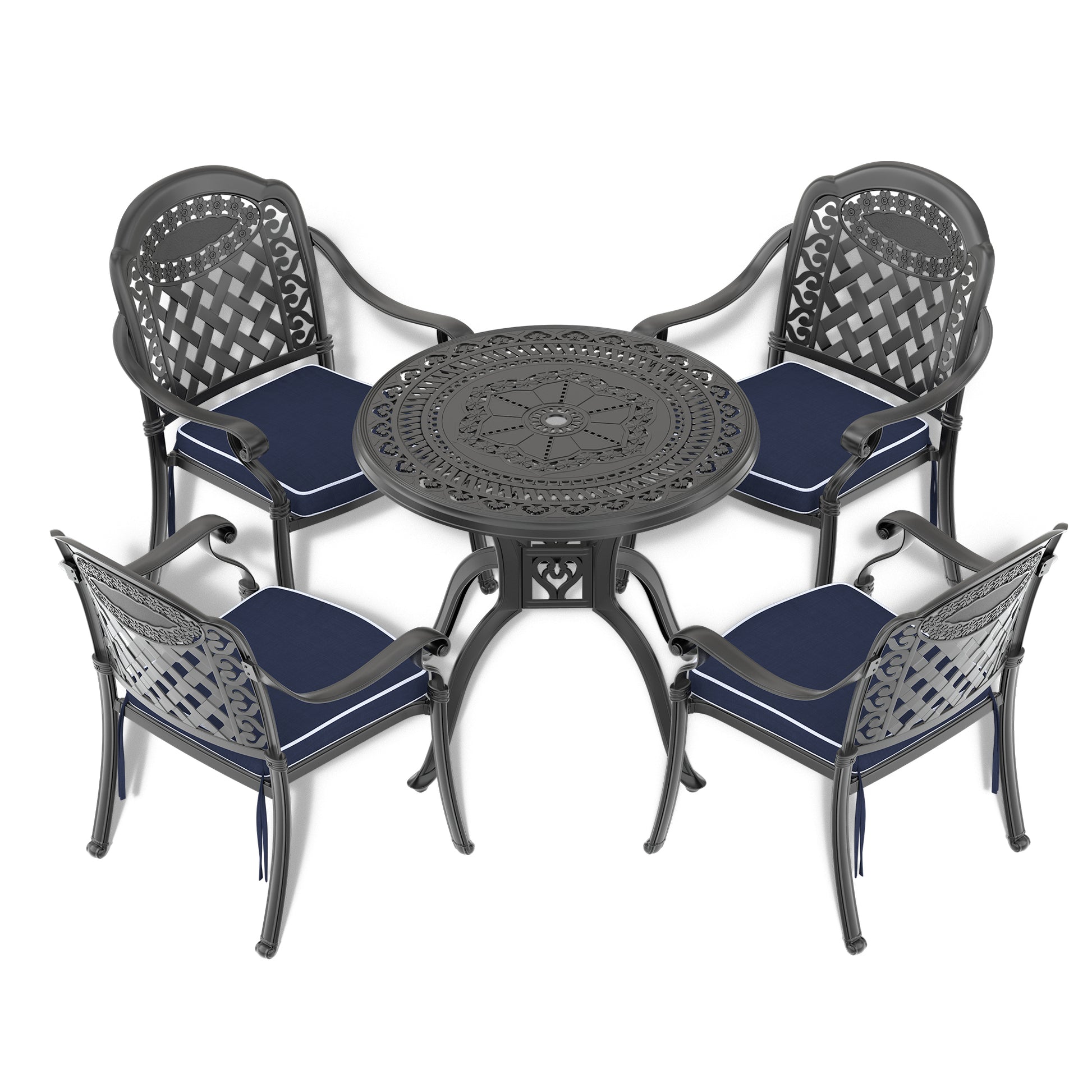 31.50 Inch Cast Aluminum Patio Dining Table With Black Frame And Umbrella Hole Yes Complete Patio Set Black Weather Resistant Frame Garden & Outdoor Complete Patio Sets Metal Aluminium