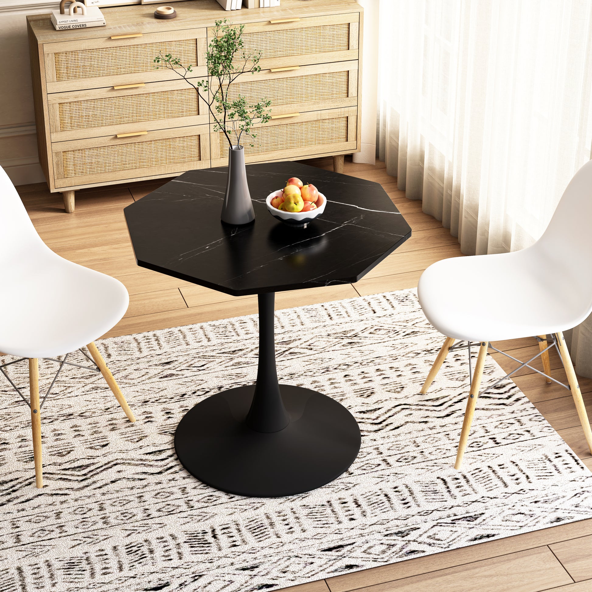 31.50"Modern Octagonal Coffee Table With Printed Black Marble Table Top,Metal Base, For Dining Room, Kitchen, Living Room Marble Mdf