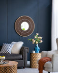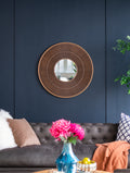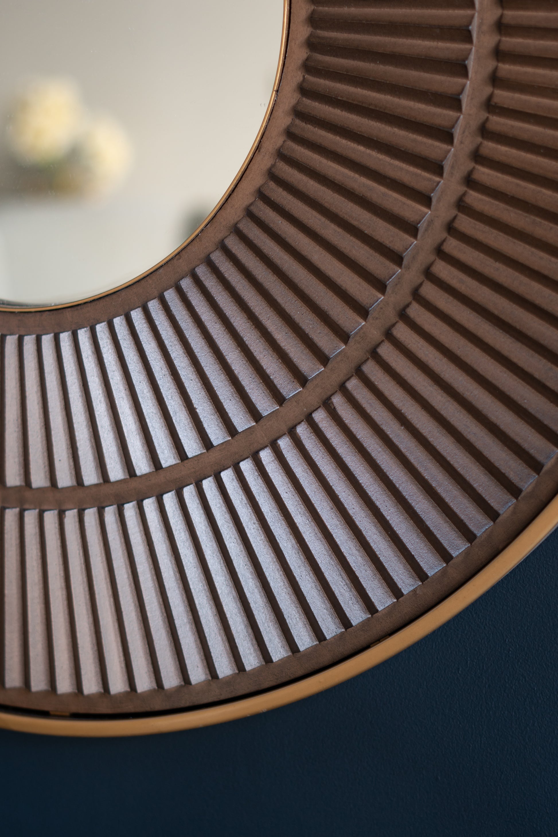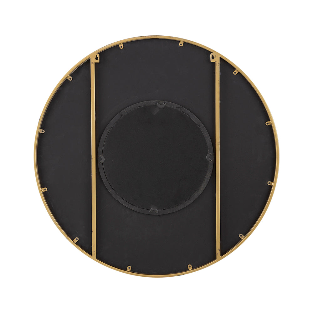 31.5X1X31.5" Round Carter Wooden Mirror With Gold Iron Frame Neutral Colorway Wall Decor For Live Space, Bathroom, Entryway Wall Decor Brown Mdf Glass