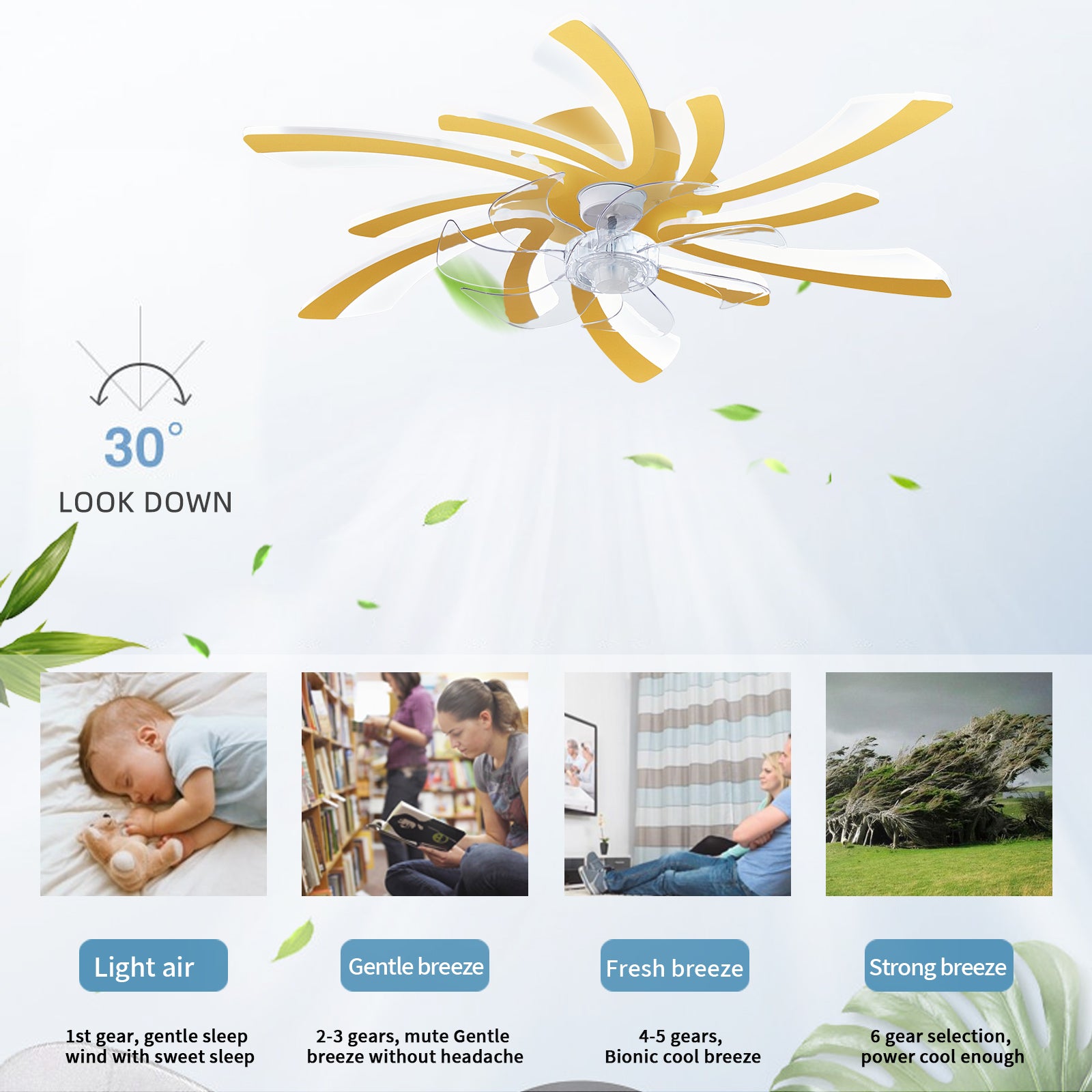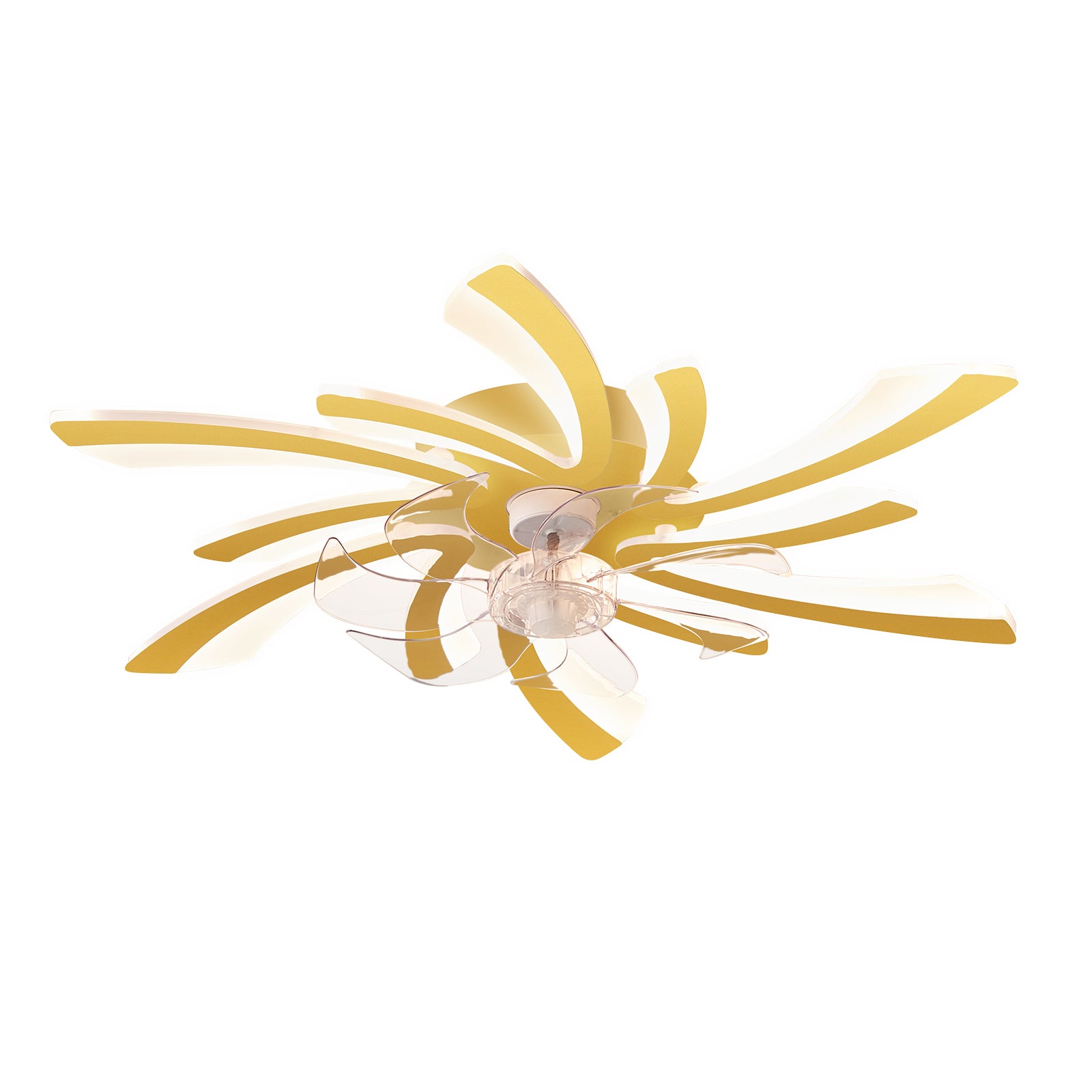 31Inches Ceiling Fan With Lights Remote Control Dimmable Led, 6 Gear Wind Speed Fan Light Gold Modern Acrylic