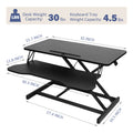 32 Inch Desk Converter, Height Adjustable Sit To Stand Riser, Dual Monitor And Laptop Workstation With Wide Keyboard Tray, Black Black Mdf Metal