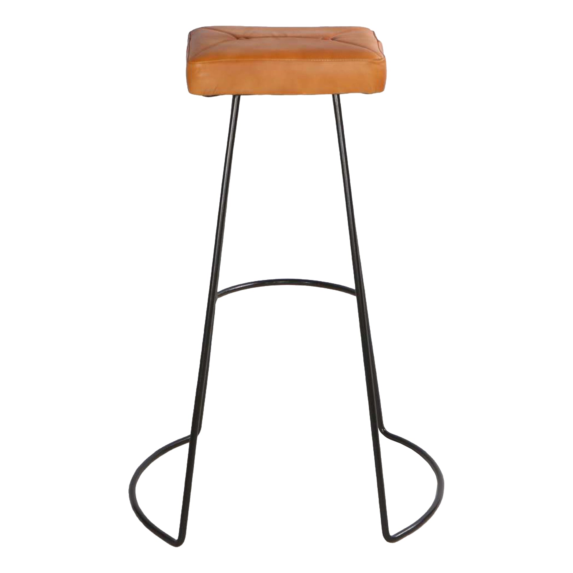 32 Inch Modern Bar Stool, Genuine Leather Seat, Metal Frame, Button Tufted, Tan Brown, Black Brown Iron