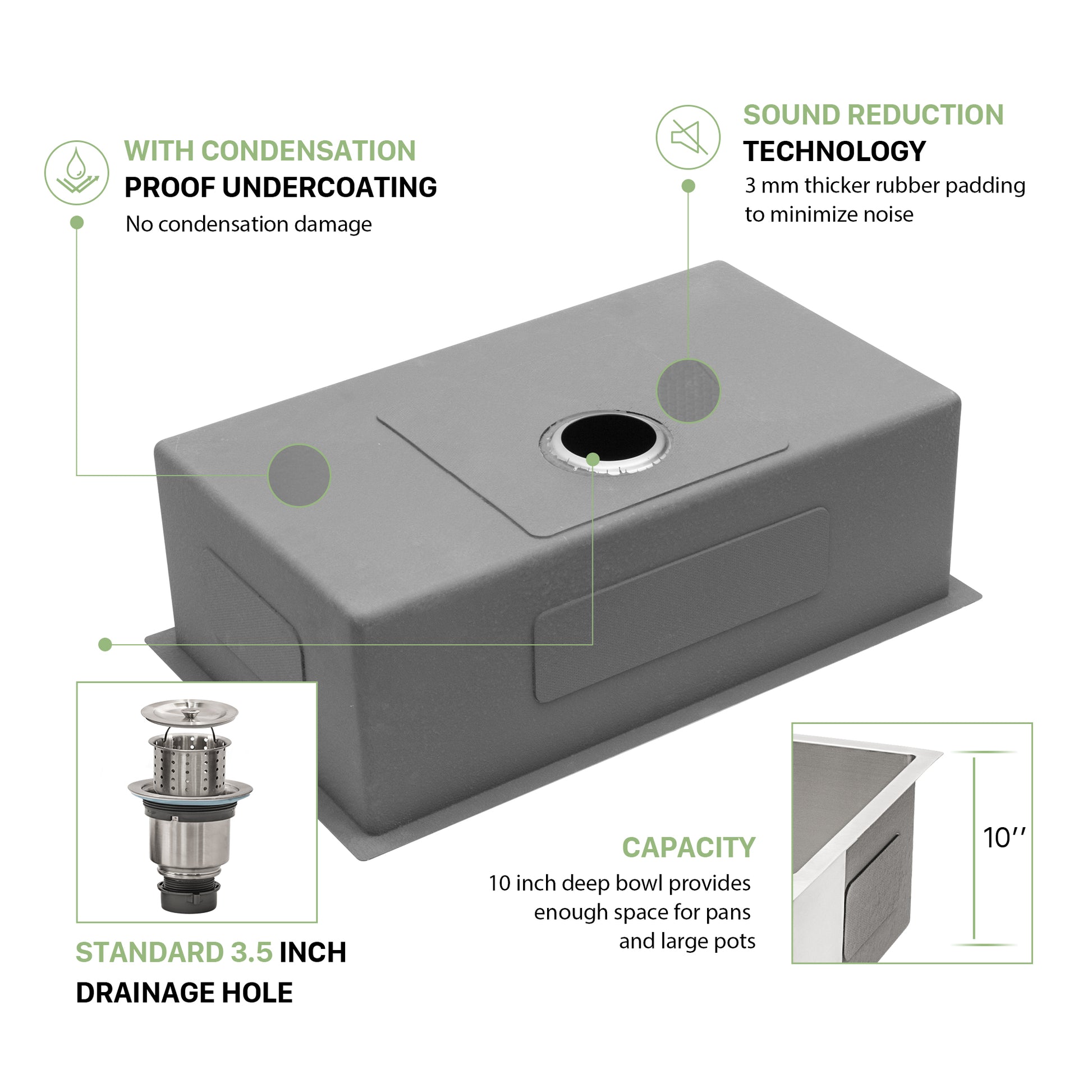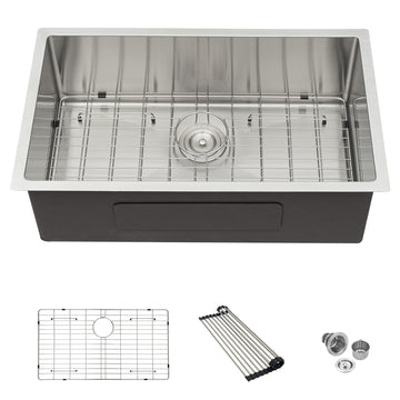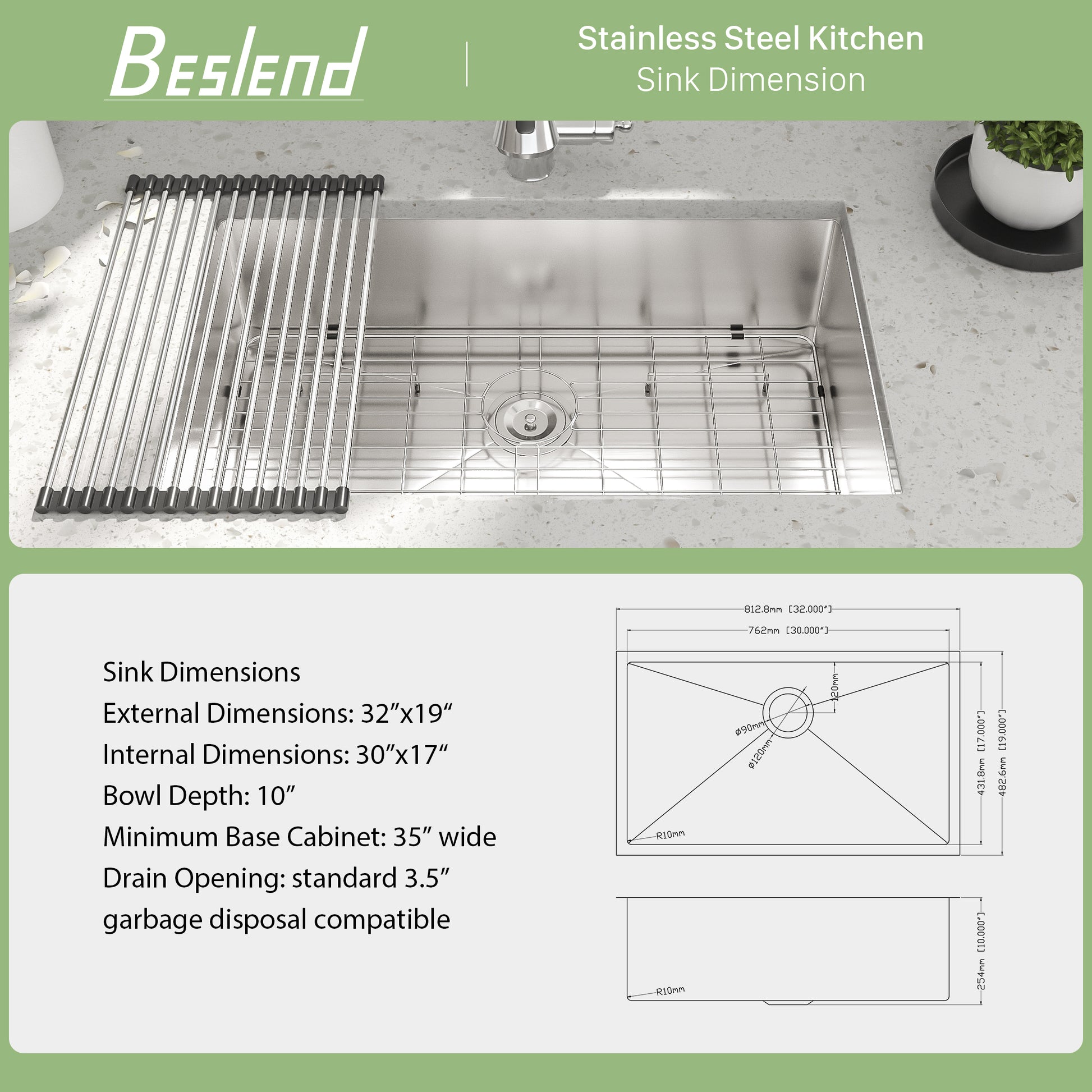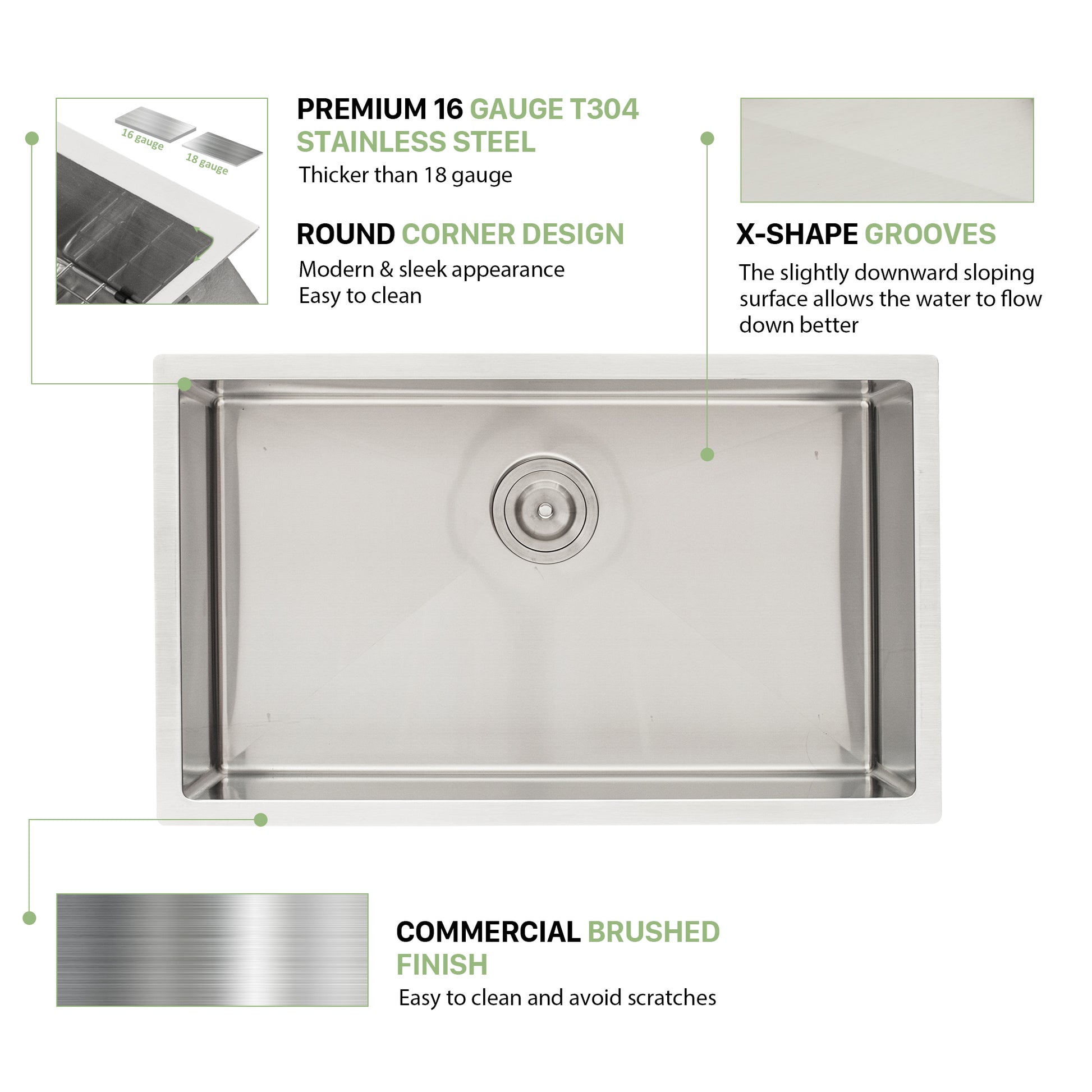 32 Inch Undermount Sink 32"X19"X10" Undermount Stainless Steel Kitchen Sink 16 Gauge 10 Inch Deep Single Bowl Kitchen Sink Basin Brushed Nickel Stainless Steel