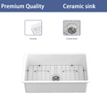 32" Undermount Single Bowl Ceramic Kitchen Sink Dual Mount White Ceramic Rectangular Deep Single Bowl Sink Basin White Ceramic