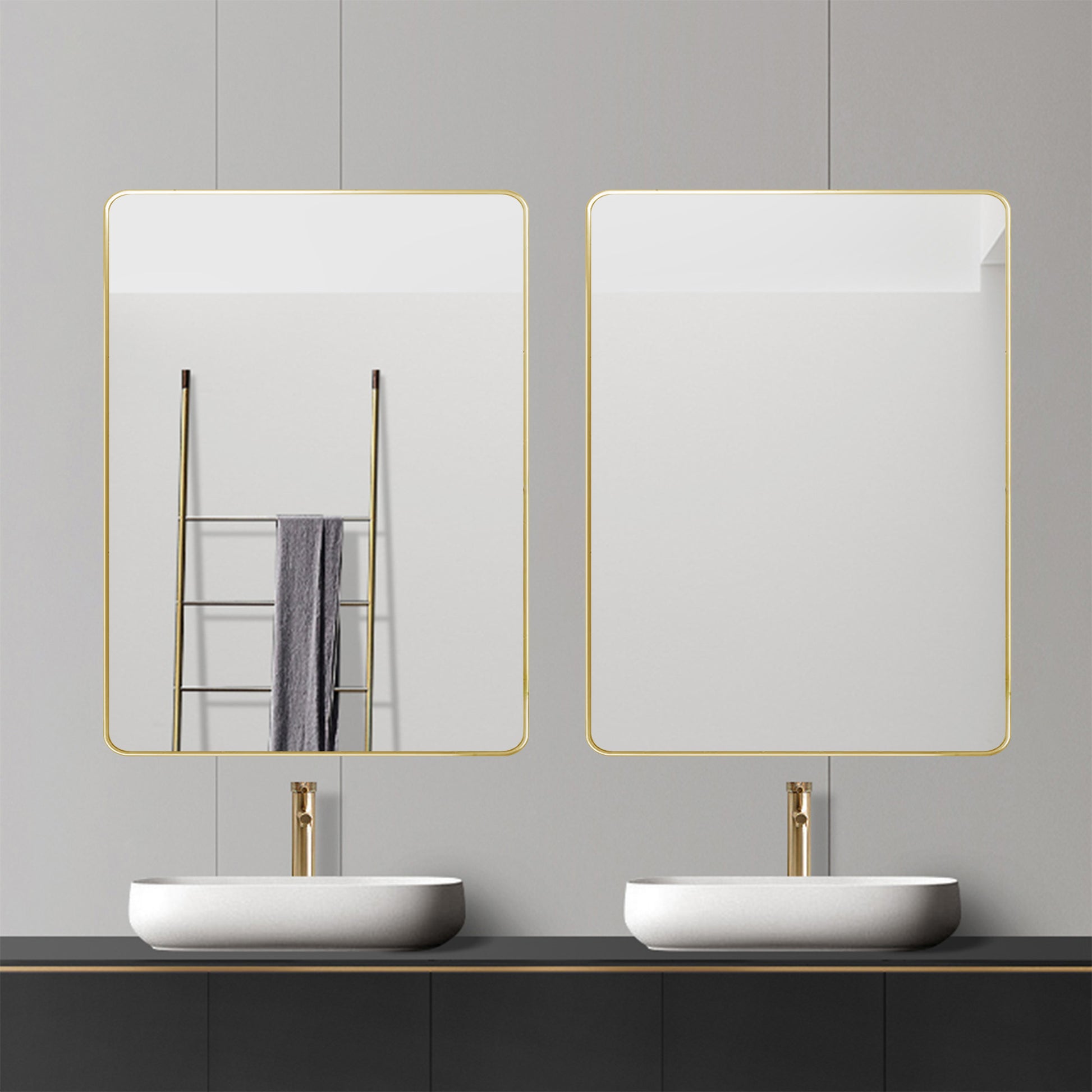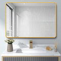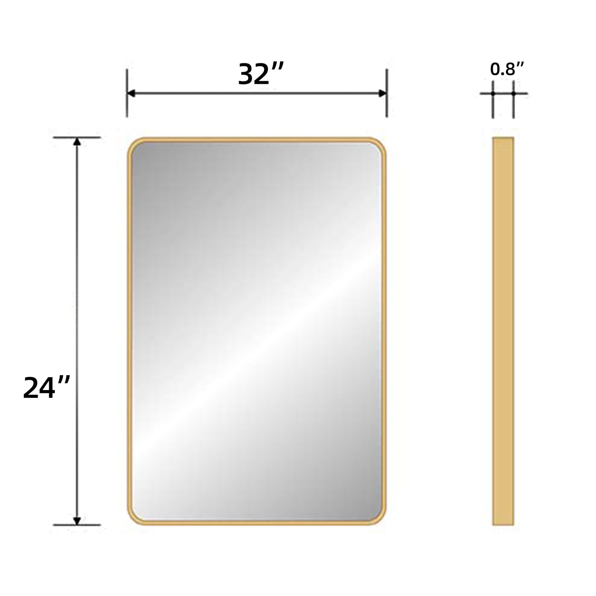 32 X 24 Inch Gold Bathroom Mirror For Wall Vanity Mirror With Non Rusting Aluminum Alloy Metal Frame Rounded Corner For Modern Farmhouse Home Decor Gold Modern Aluminium