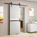 32" X 84" Melamine Integrated Door Slab 6.6Ft Sliding Track Kit Adjustable Floor Guider Pull Handle, Modern Interior Door Panel, Protected By 2Mm Thick Melamine Layer, Moisture Proof Gray Melamine