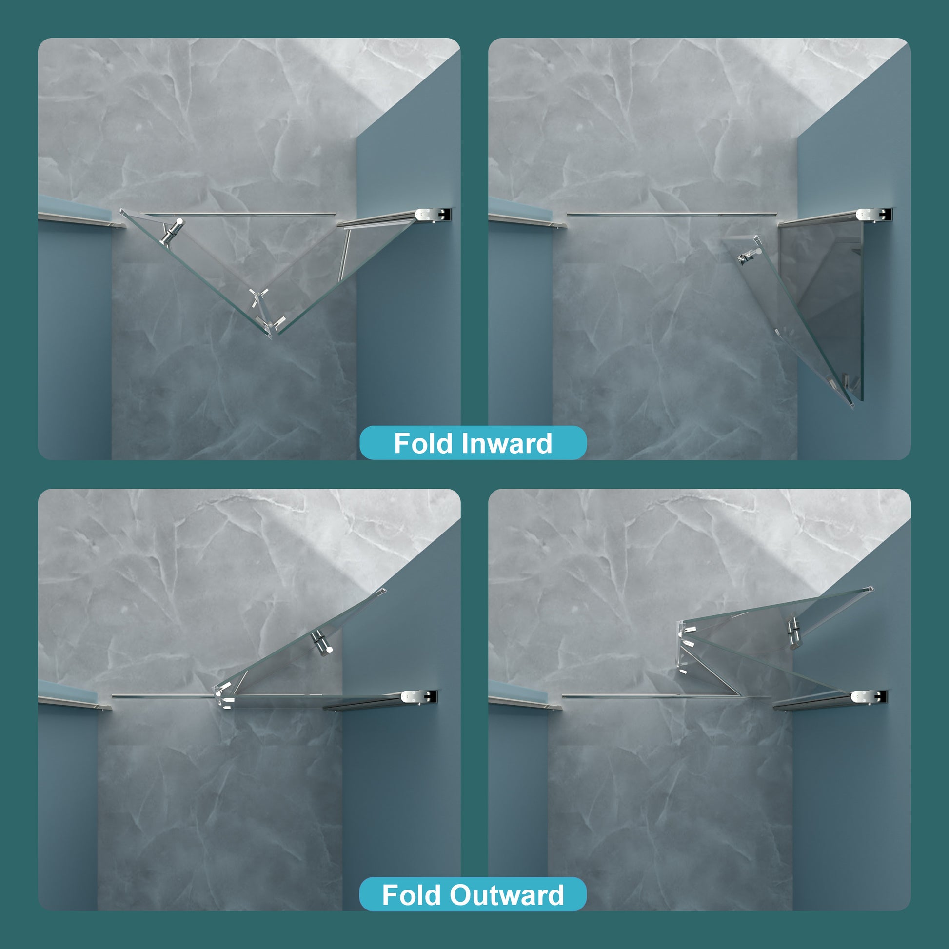 32"W X 72"H Fold Frameless Shower Door With Tempered Glass, Chrome Chrome Glass