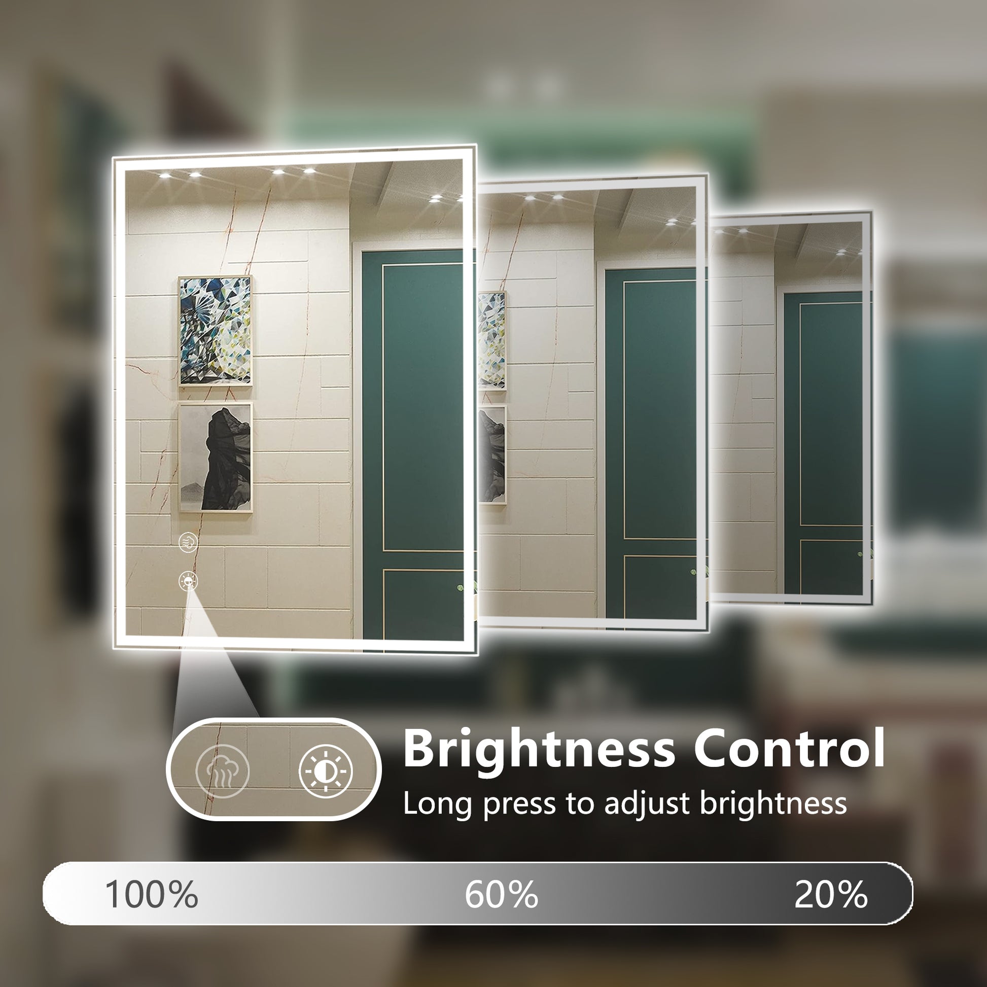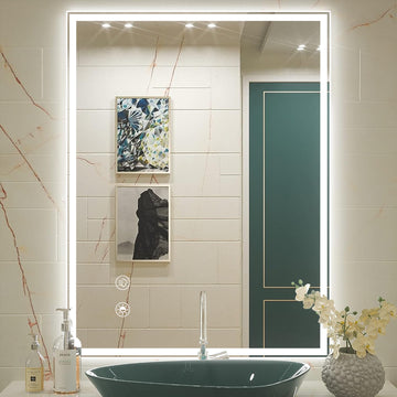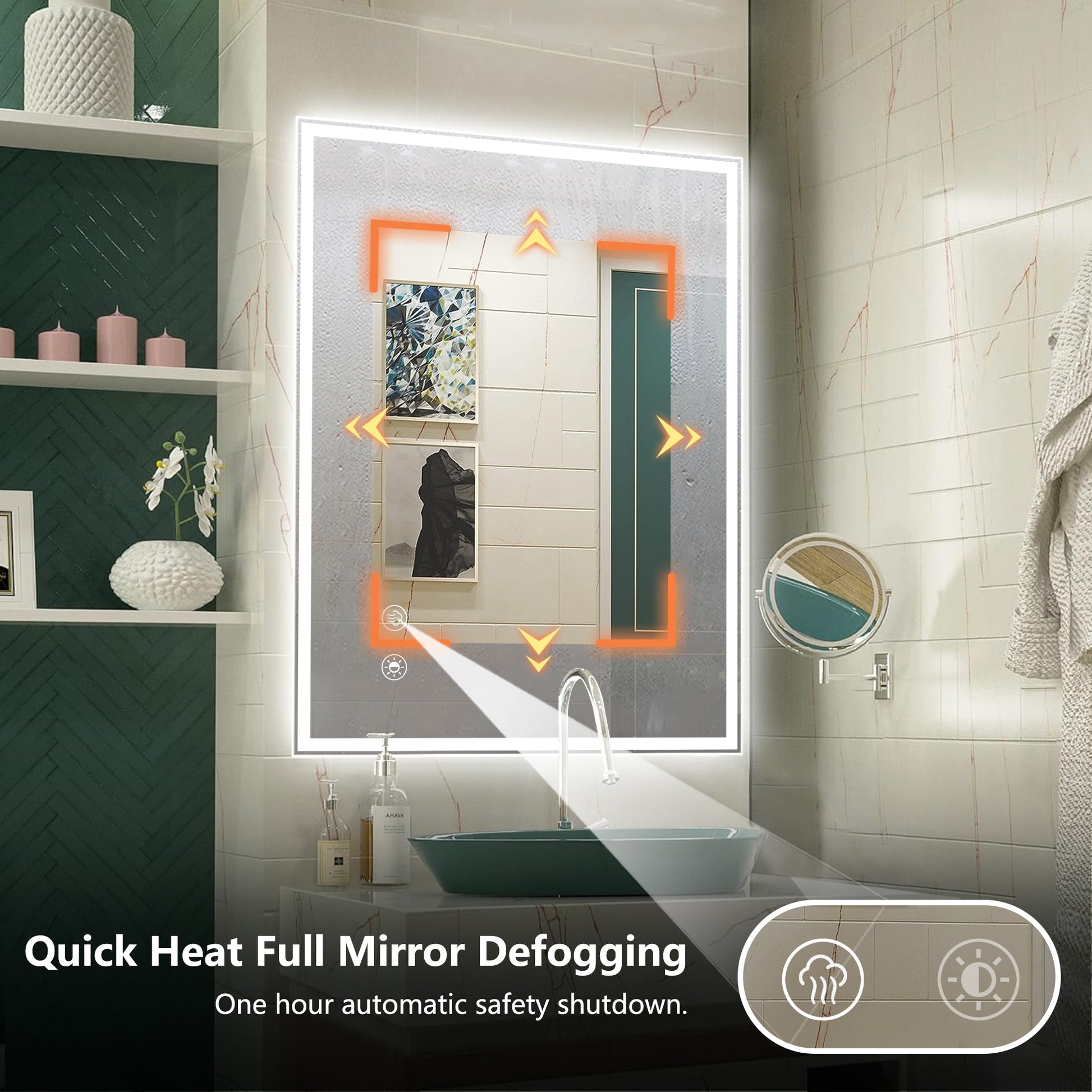 32"X24" Dimmable Led Bathroom Mirror Wall Mounted Anti Fog Waterproof Vanity Mirror White Black Aluminium,Tempered Glass