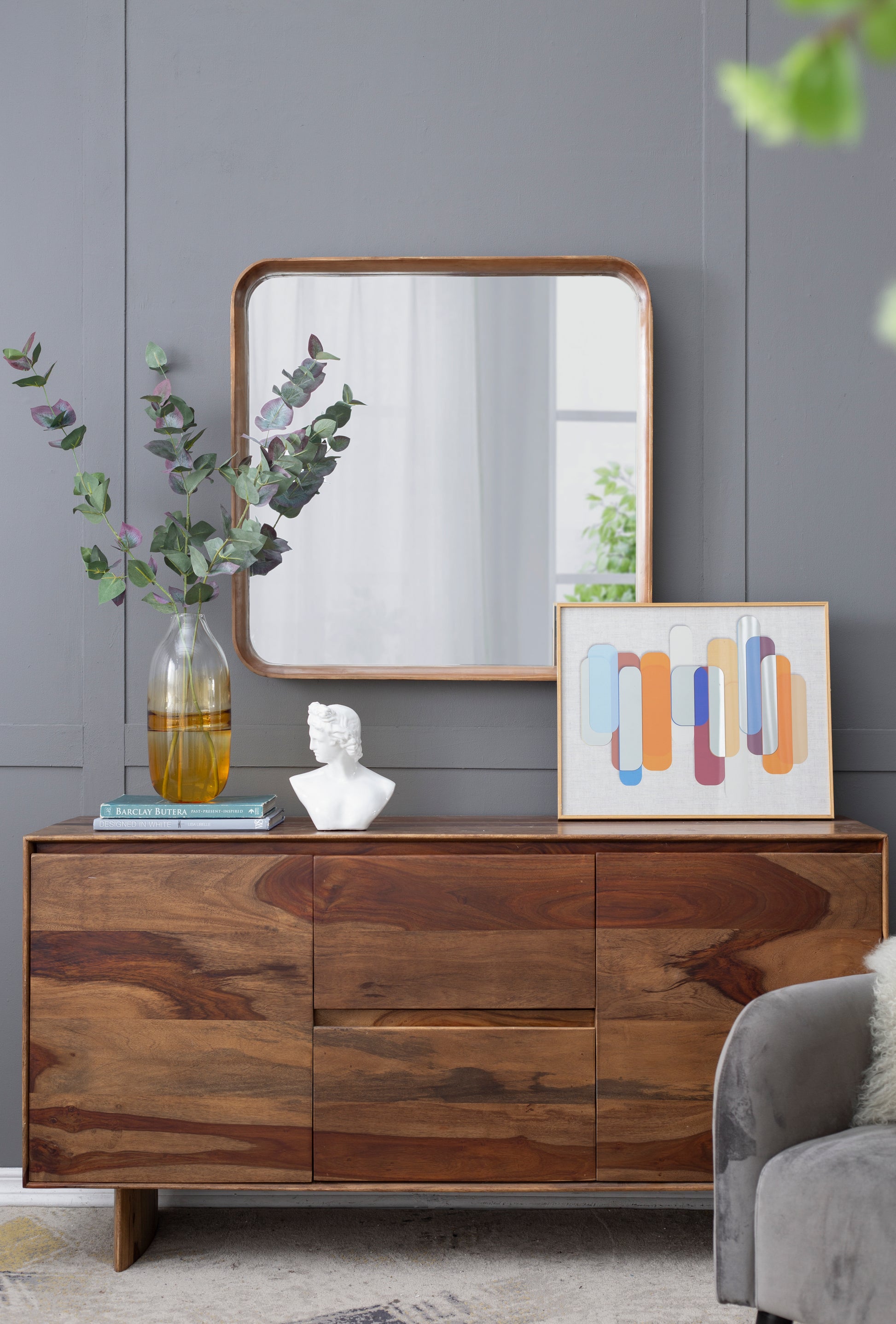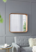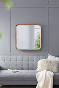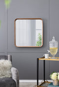 32"X32" Square Mirror With Wood Frame, Wall Mirror For Living Room Bathroom Entryway Brown Wood Glass
