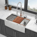 33 Drop In Farmhouse Sink Workstation 33*22*10 Inch Kitchen Sink Stainless Steel 16 Gauge Topmount Apron Front Kitchen Sink Brushed Nickel Stainless Steel