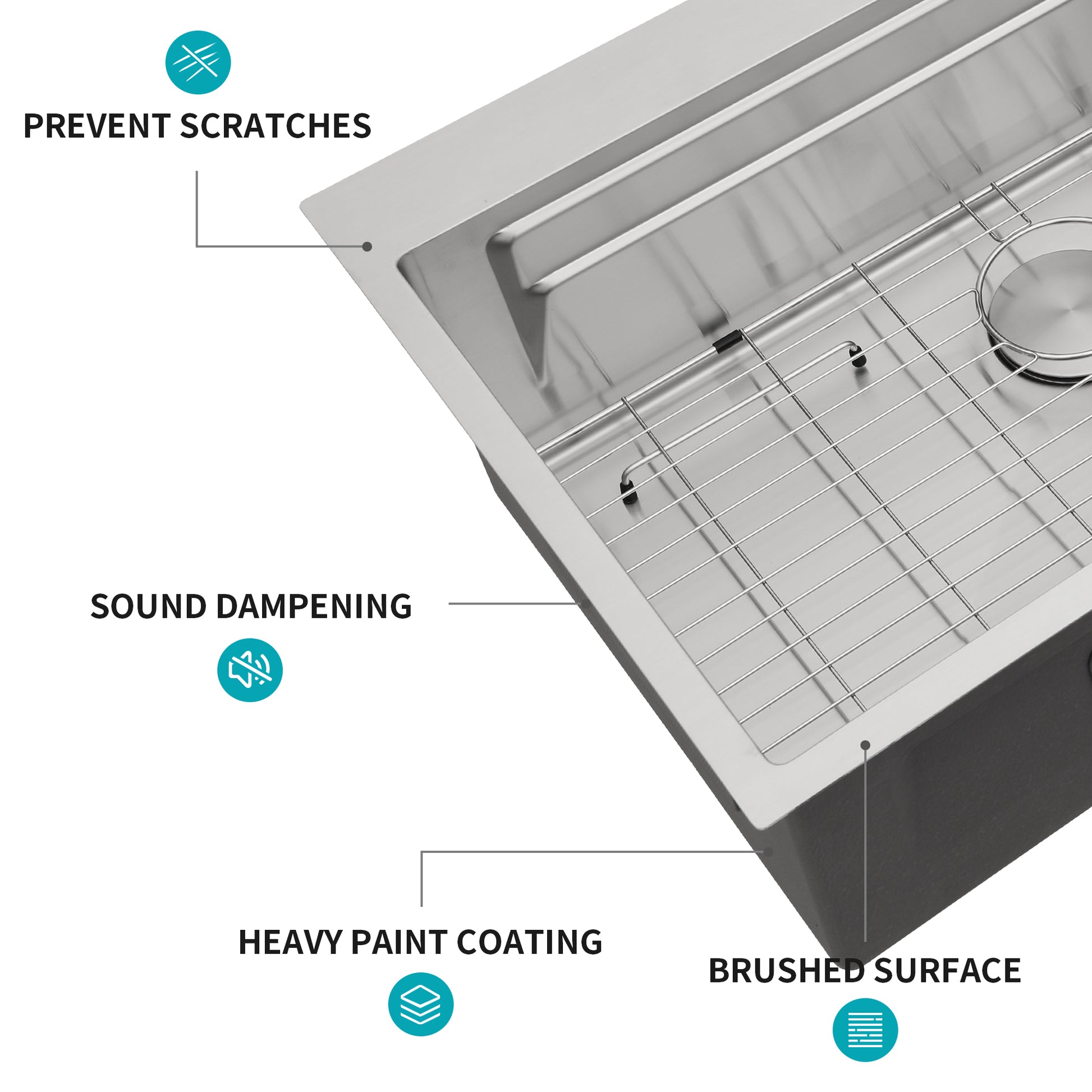 33" Drop In Kitchen Sink 33*22 Inch Kitchen Sink Drop In Topmount Single Bowl 16 Gauge Stainless Steel Ledge Workstation Kitchen Sinks Brushed Nickel Stainless Steel
