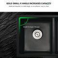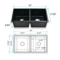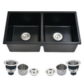 33" L X 18" W Double Bowl Undermount Kitchen Sink With Basket Strainer Black Quartz