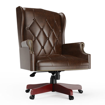 330Lbs Executive Office Chair, Ergonomic Design High Back Reclining Comfortable Desk Chair Brown Brown Pu Leather