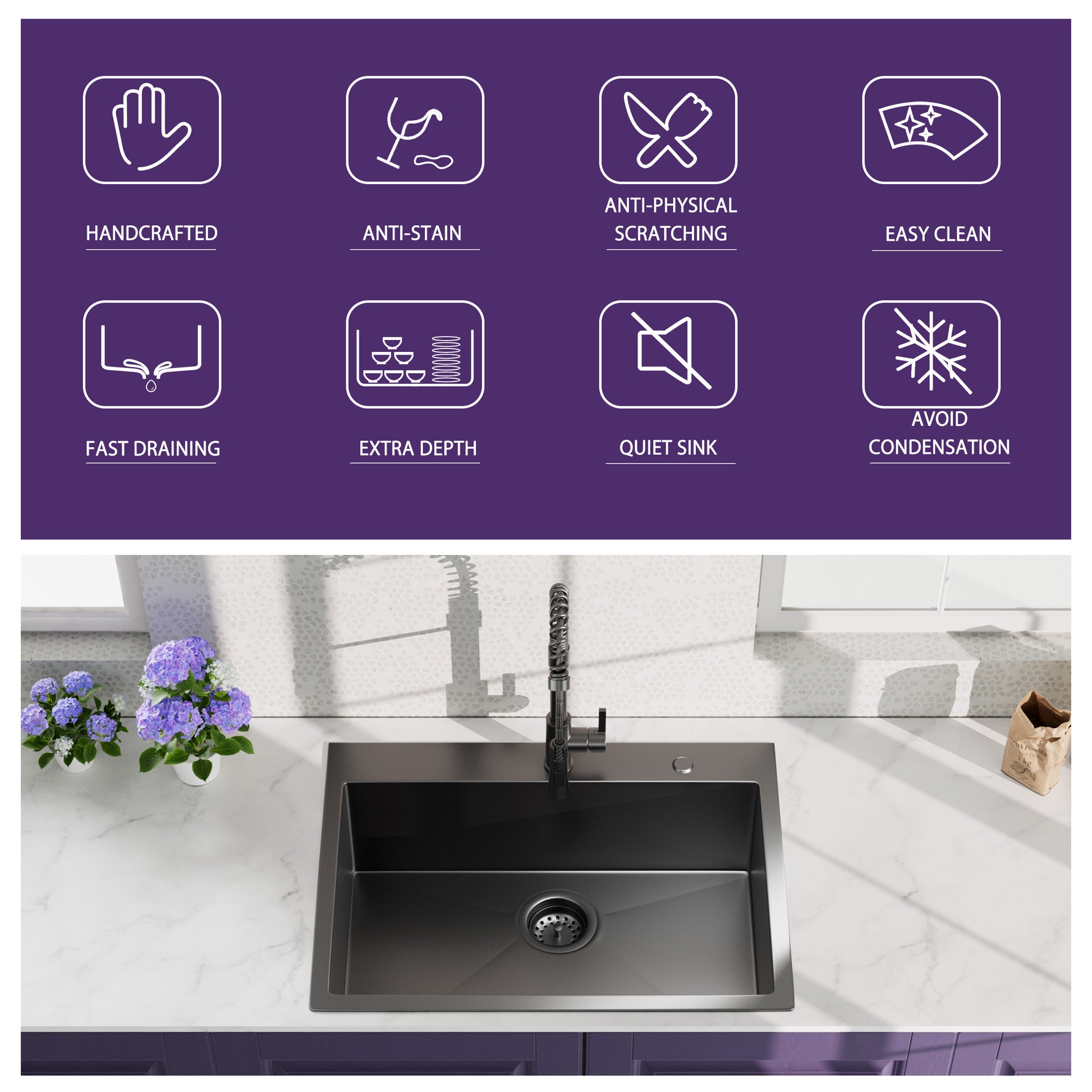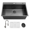 33Inch Topmount 18Gauge Stainless Steel Kitchen Sink With Black Spring Neck Faucet Gunmetal Black Stainless Steel