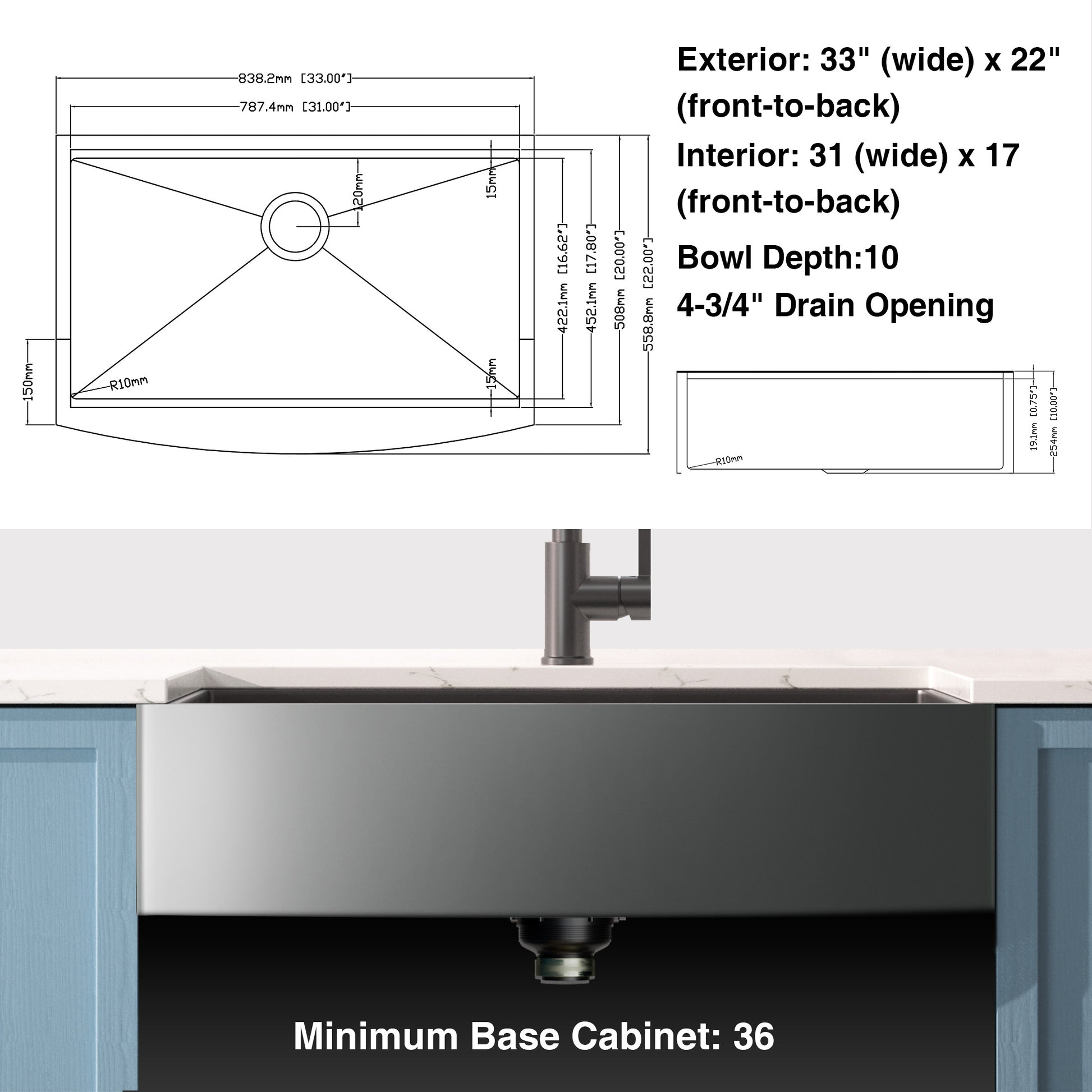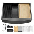 33X22 Inch Farmhouse Workstation Gunmetal Black All In One Kitchen Sink 18 Gauge Stainless Steel Single Bowl Sink With Faucet Gunmetal Black Stainless Steel
