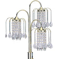 34" Tall Metal Table Lamp With Brass Finish, 3 Crystal Chandelier Lights Gold Metal