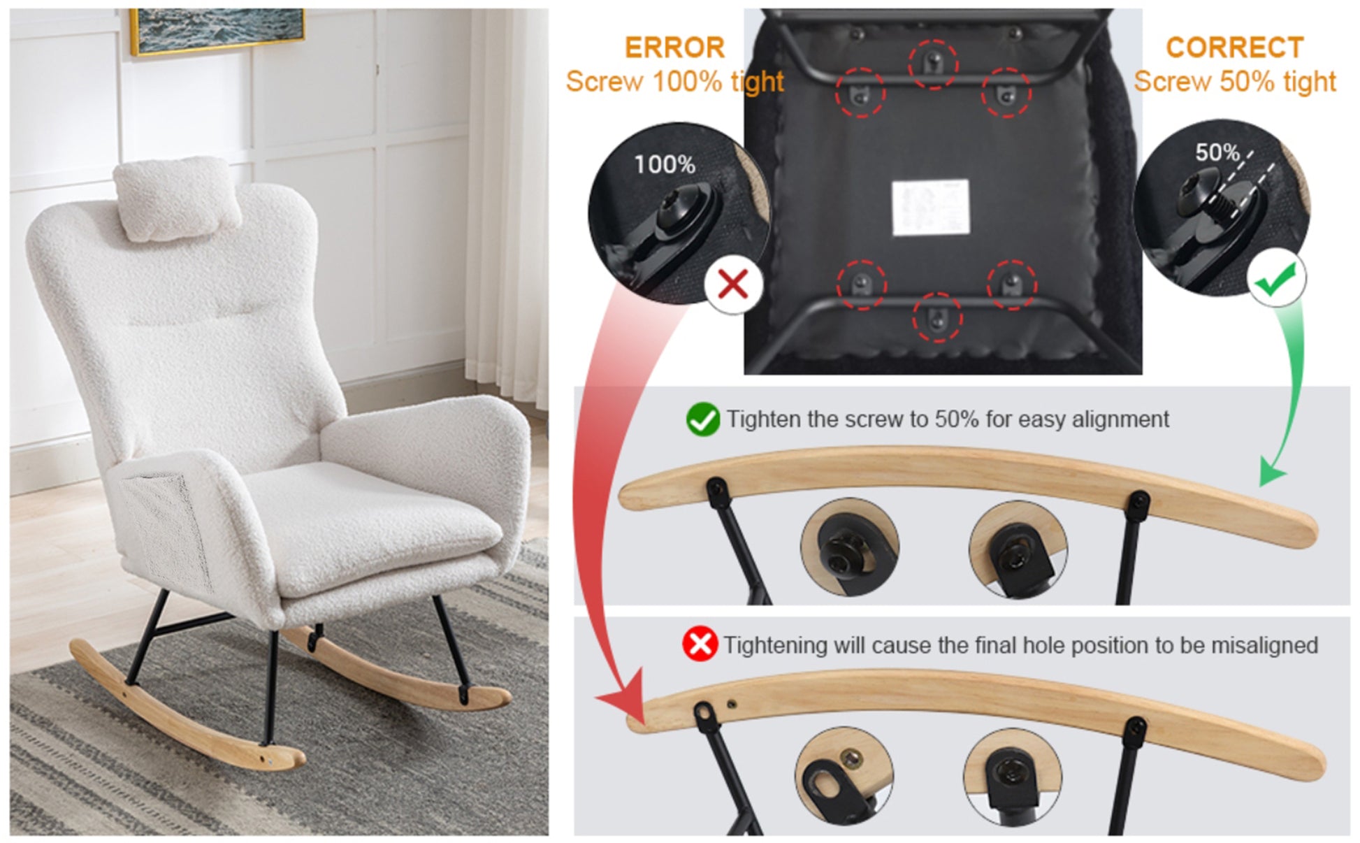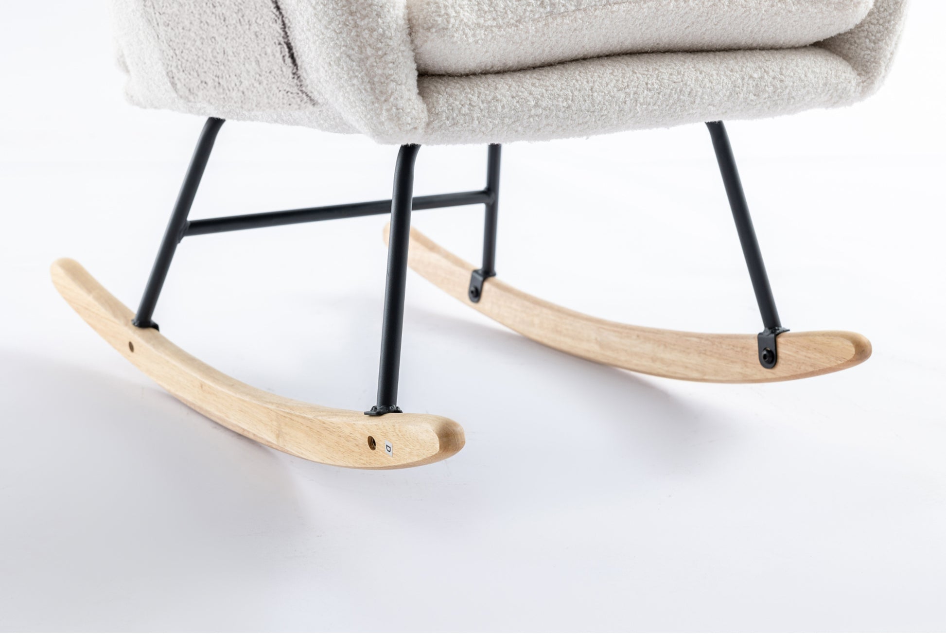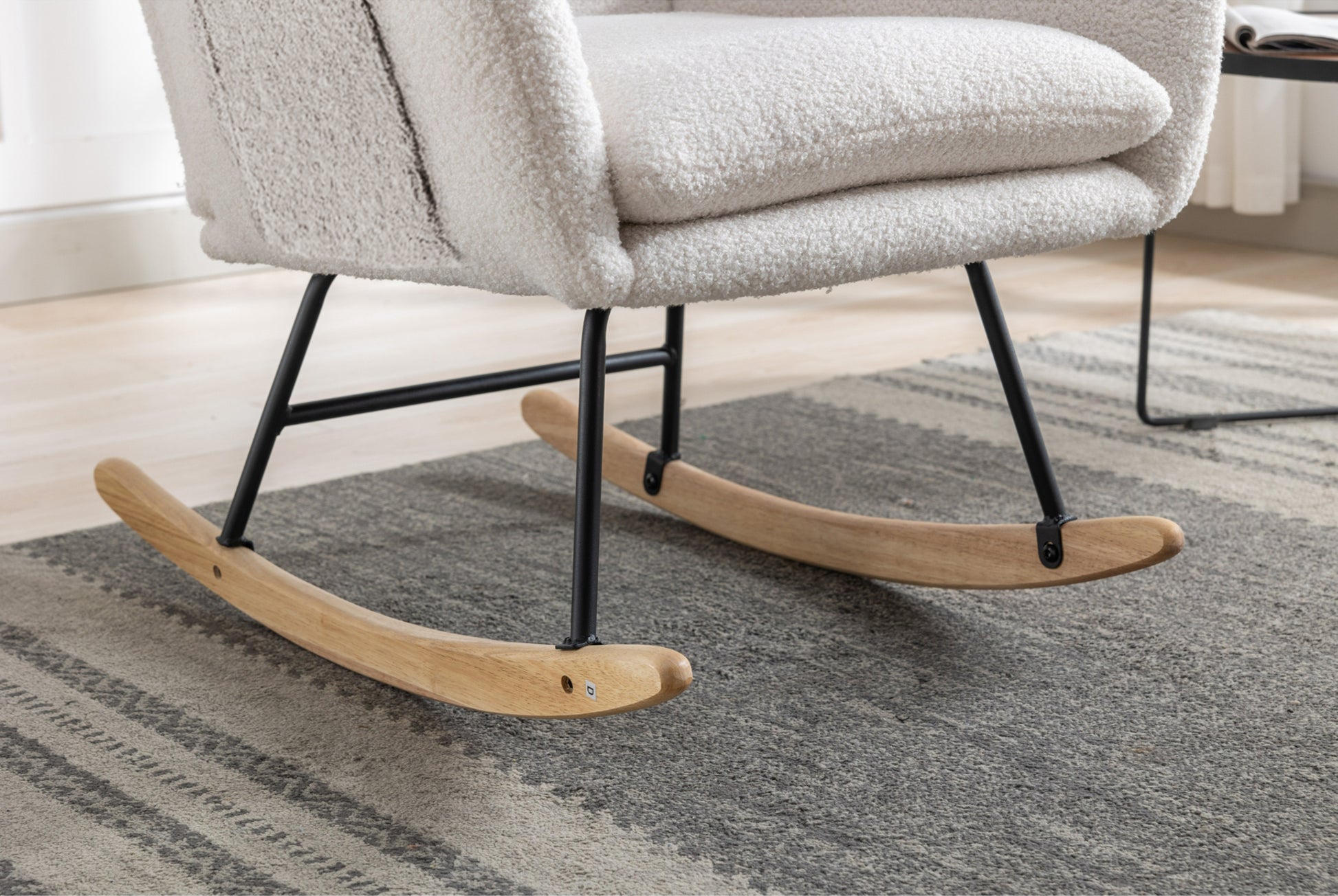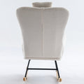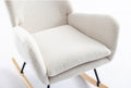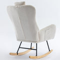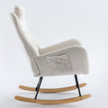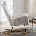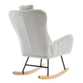 35.5 Inch Rocking Chair With Pocket, Soft Teddy Fabric Rocking Chair For Nursery, Comfy Wingback Glider Rocker With Safe Solid Wood Base For Living Room Bedroom Balcony White White Casual Foam Teddy