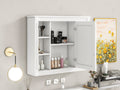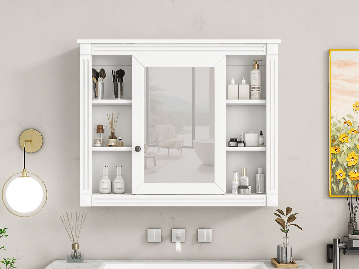 35'' X 28'' Wall Mounted Bathroom Storage Cabinet, Medicine Cabinet, Modern Bathroom Wall Cabinet With Mirror, Mirror Cabinet With 6 Open Shelves Not Include Bathroom Vanity White Bathroom Mdf