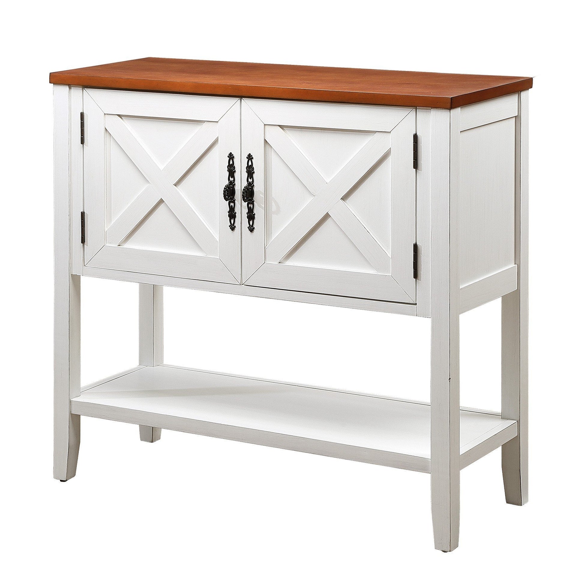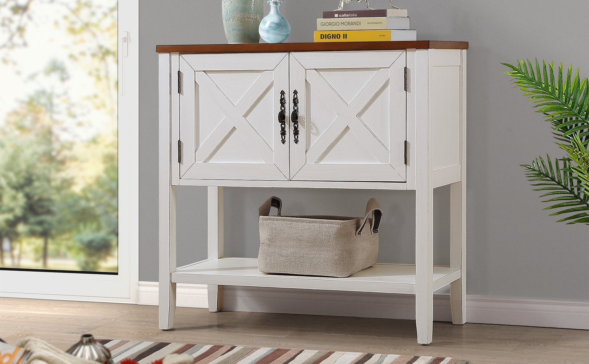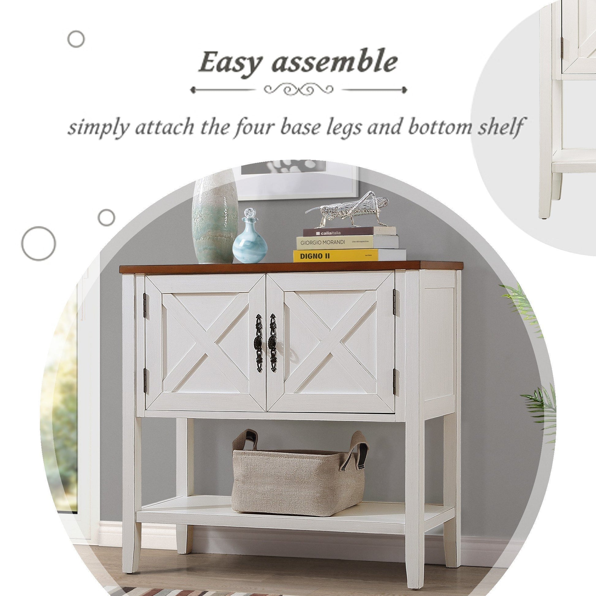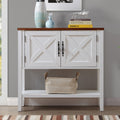 35''Farmhouse Wood Buffet Sideboard Console Table With Bottom Shelf And 2 Door Cabinet, For Living Room, Entryway,Kitchen Dining Room Furniture Antique White Walnut Top Antique White Pine