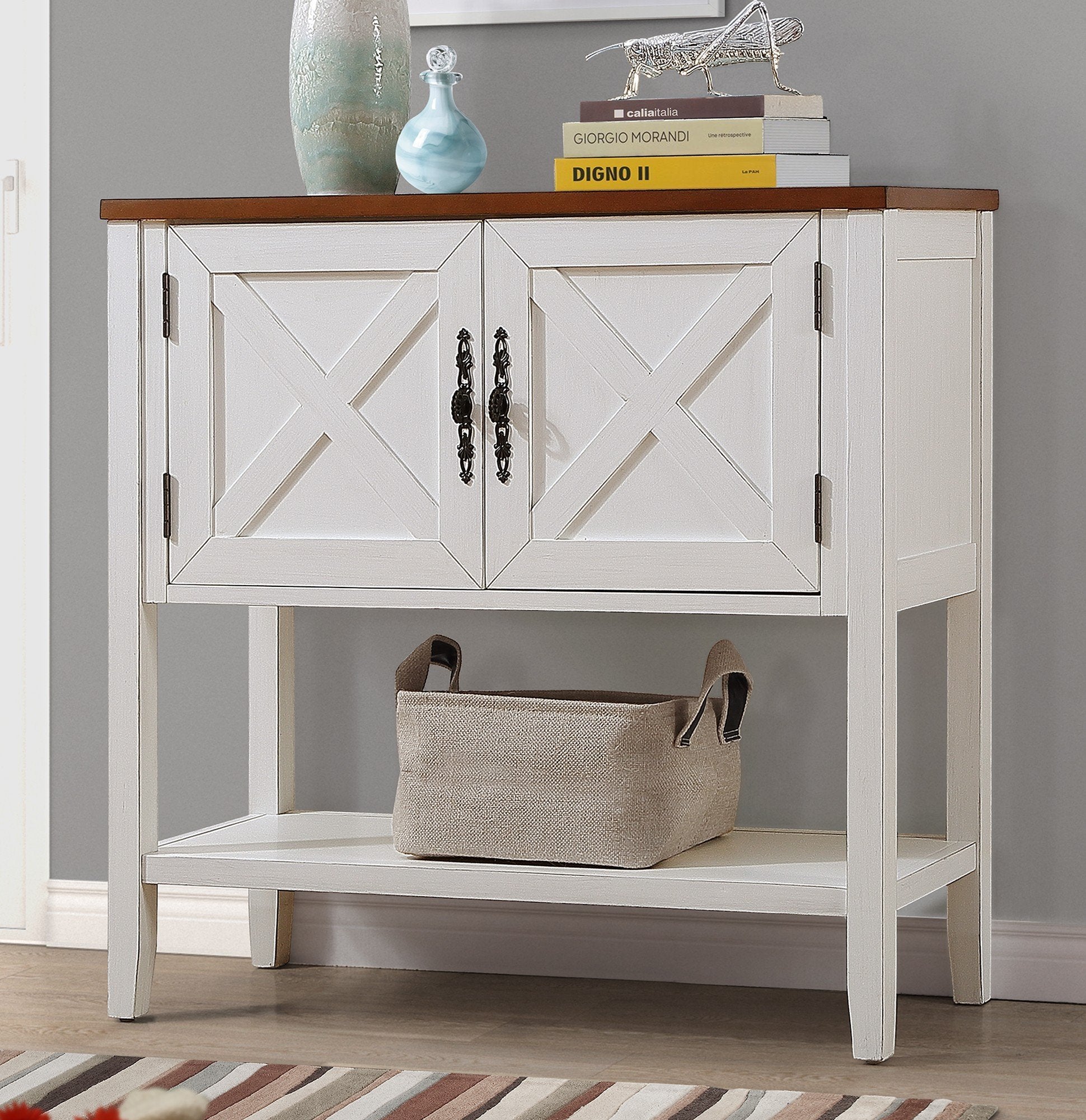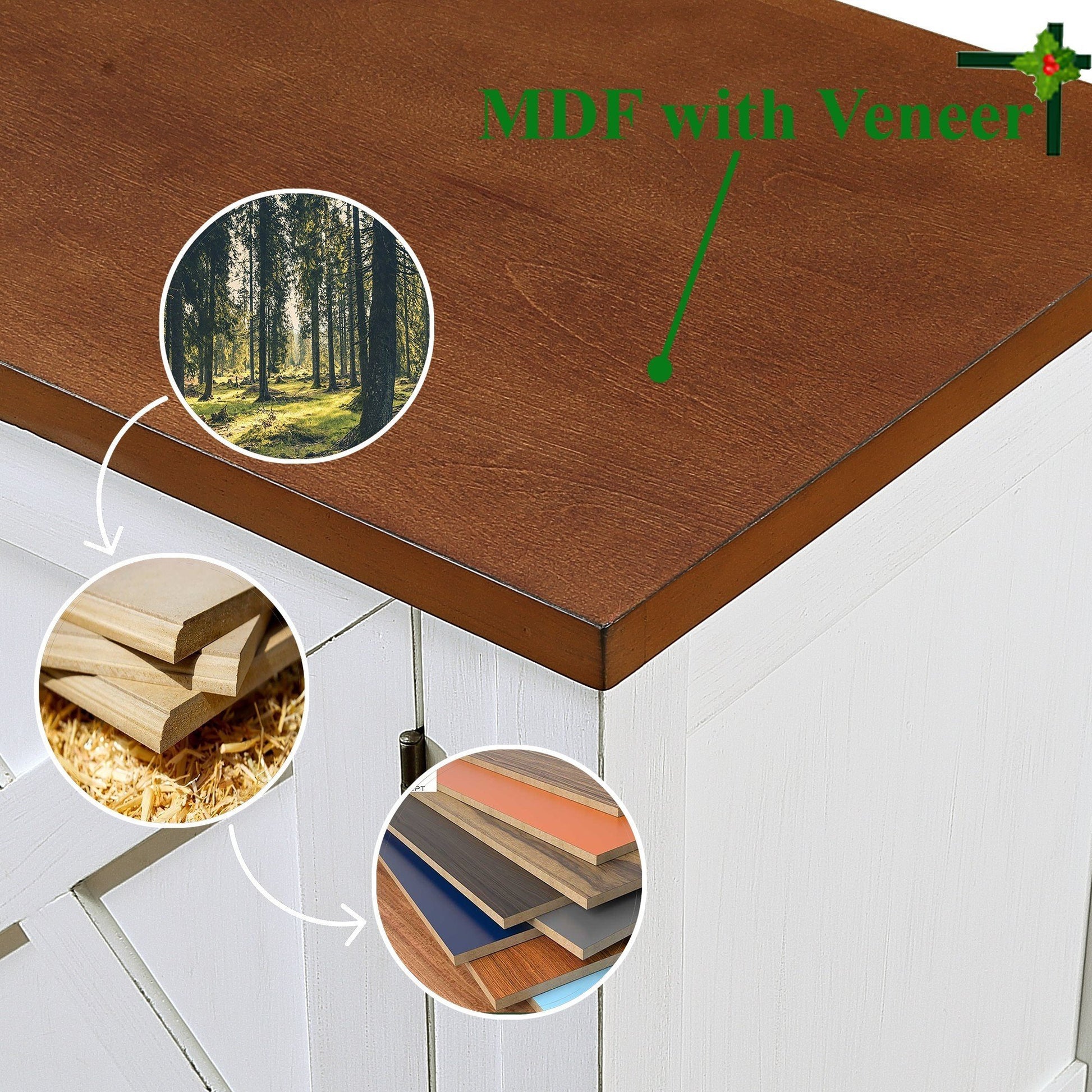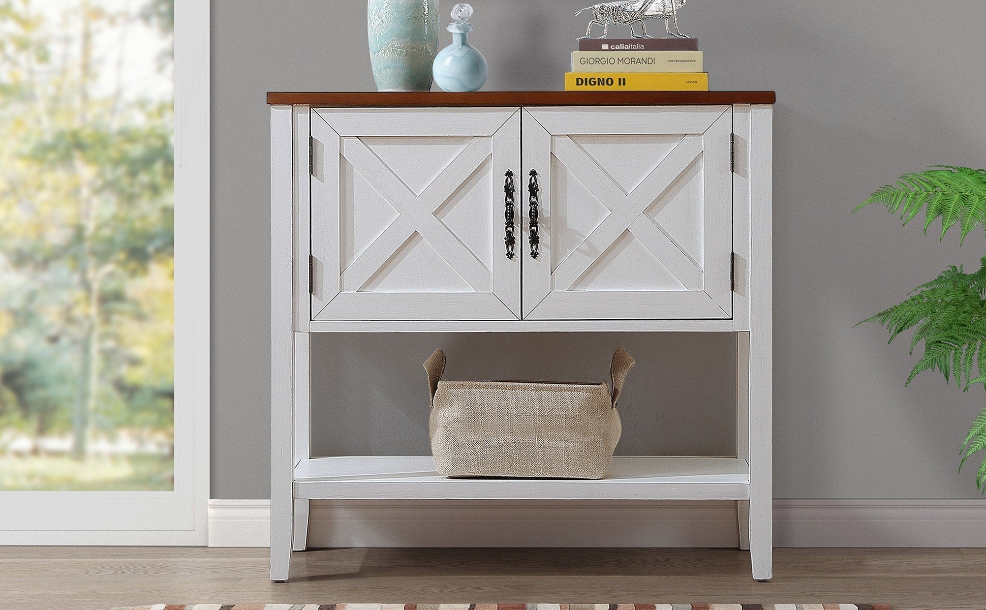 35''Farmhouse Wood Buffet Sideboard Console Table With Bottom Shelf And 2 Door Cabinet, For Living Room, Entryway,Kitchen Dining Room Furniture Antique White Walnut Top Antique White Pine