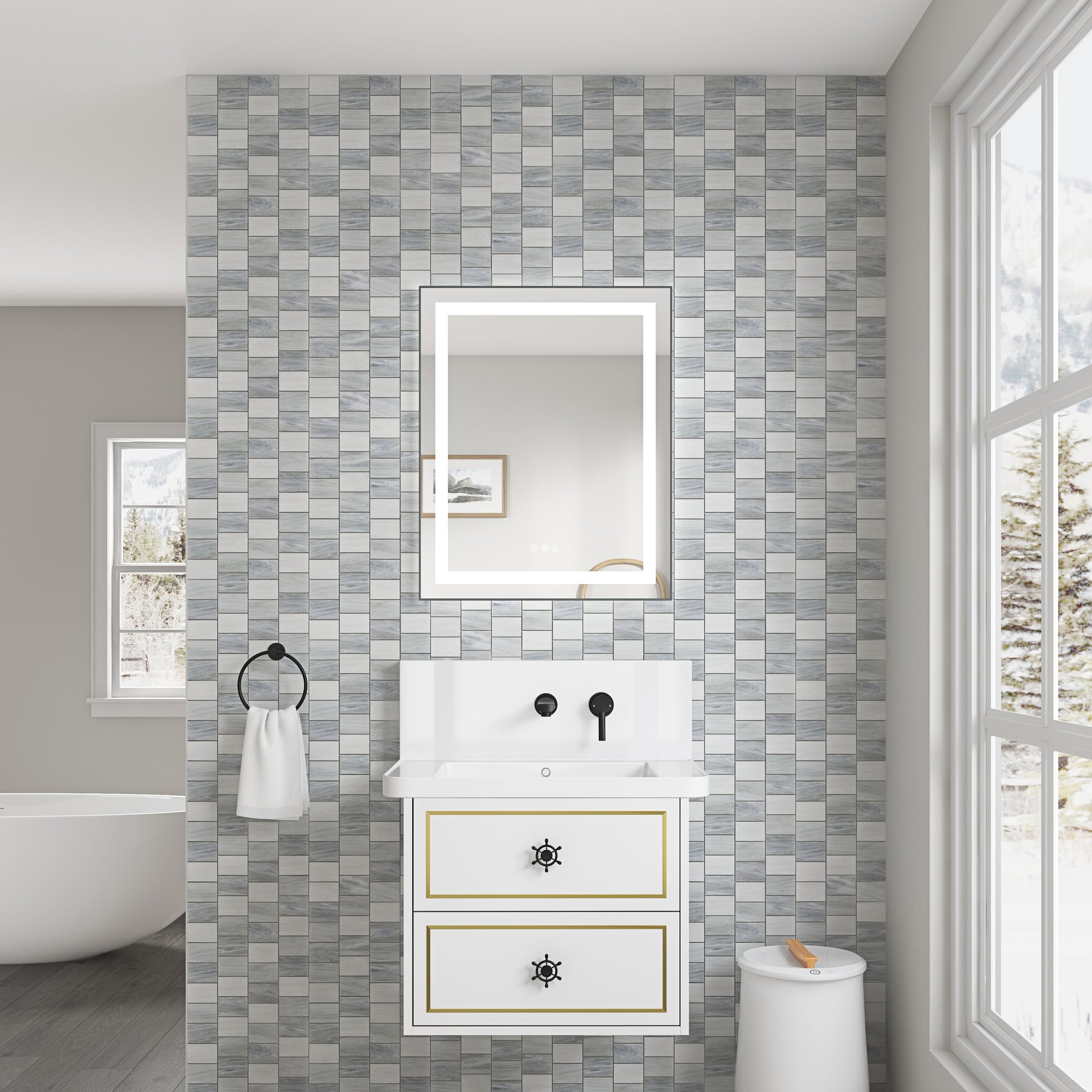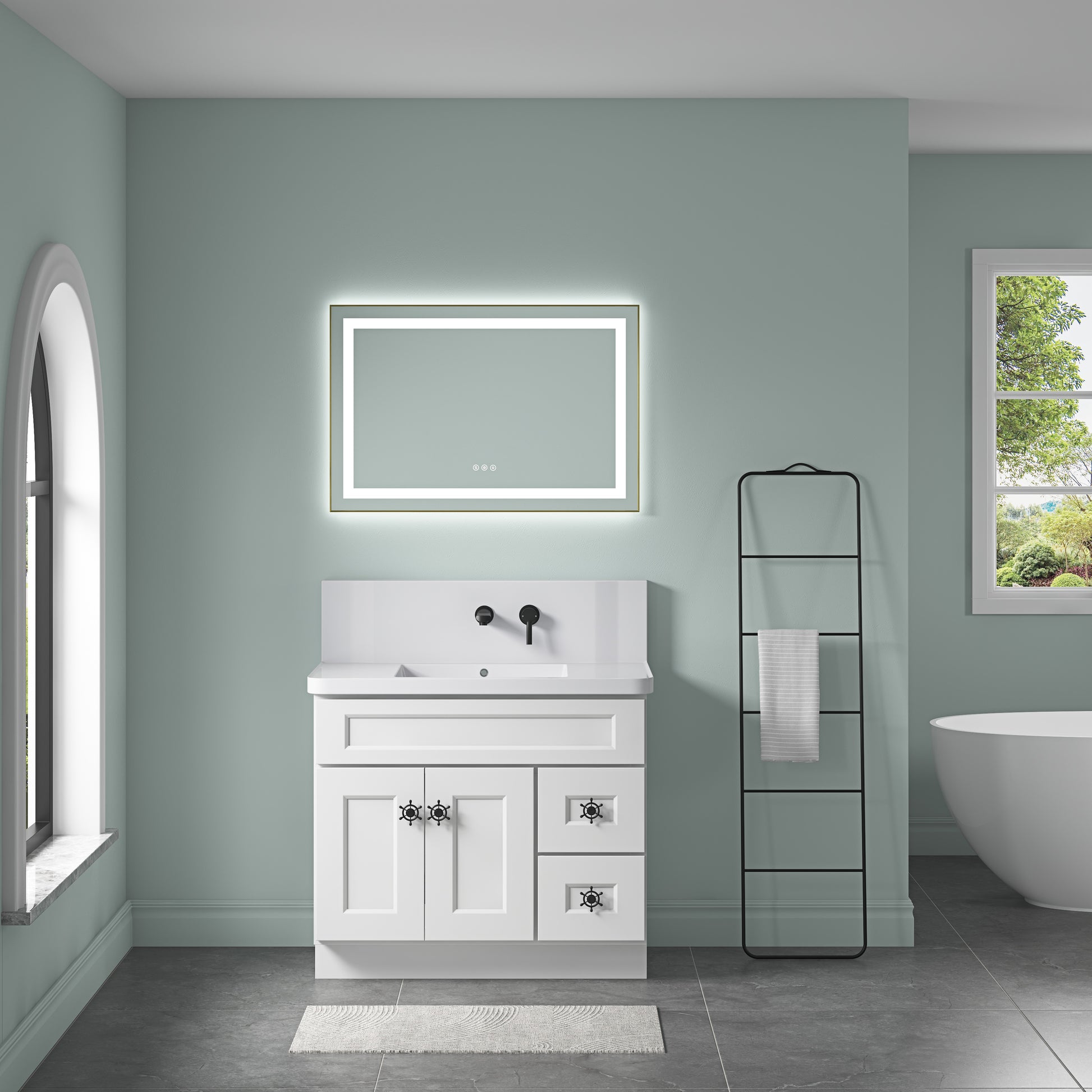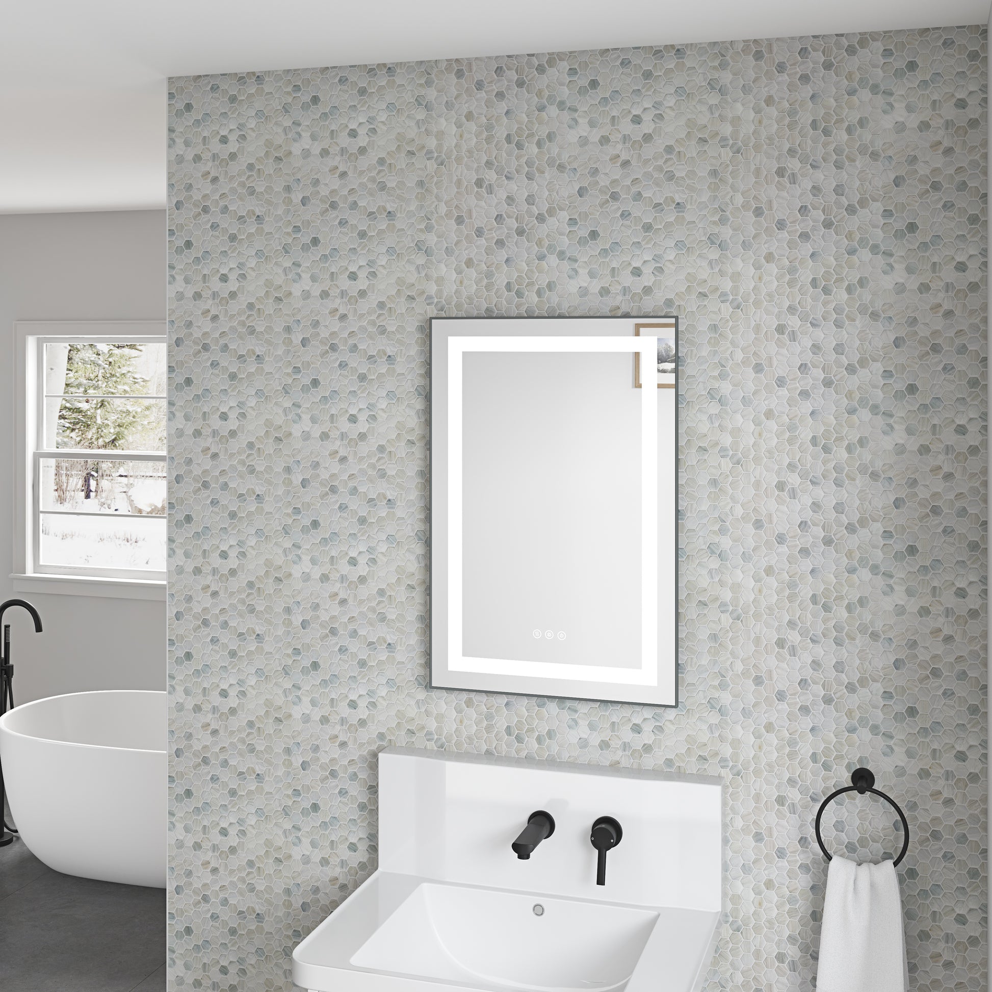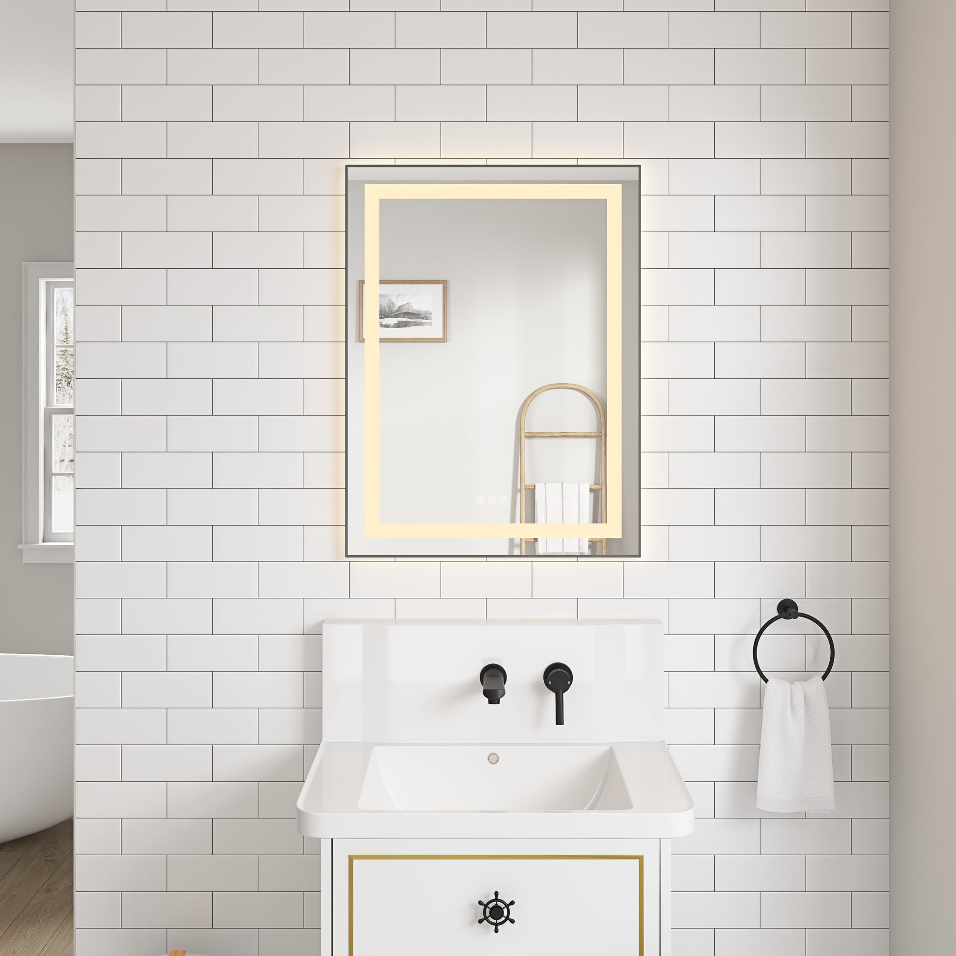 36*28 In Bathroom Vanity Mirrorsframed Dimmable Makeup Mirror For Wall, Backlit And Shatterproof, Anti Fog Horizontal Vertical Gold Aluminium