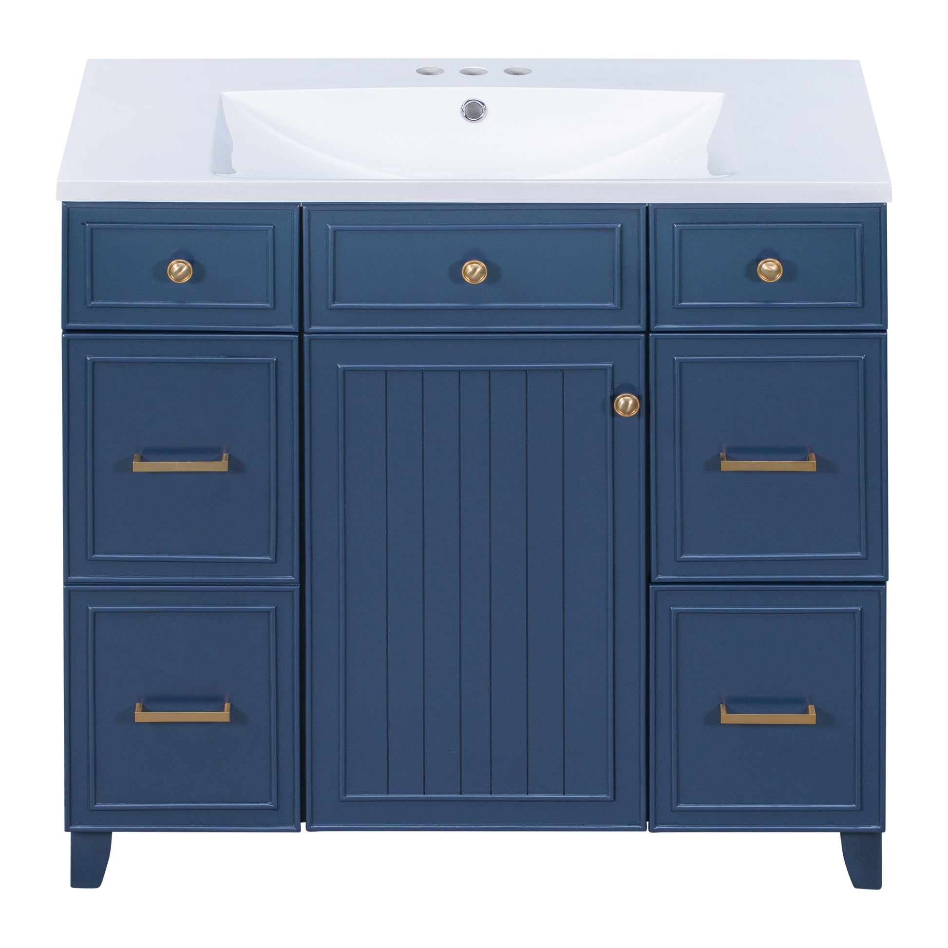 36" Bathroom Vanity Cabinet With Sink Top Combo Set, Navy Blue, Single Sink, Shaker Cabinet With Soft Closing Door And Drawer Navy Blue Solid Wood Mdf Resin