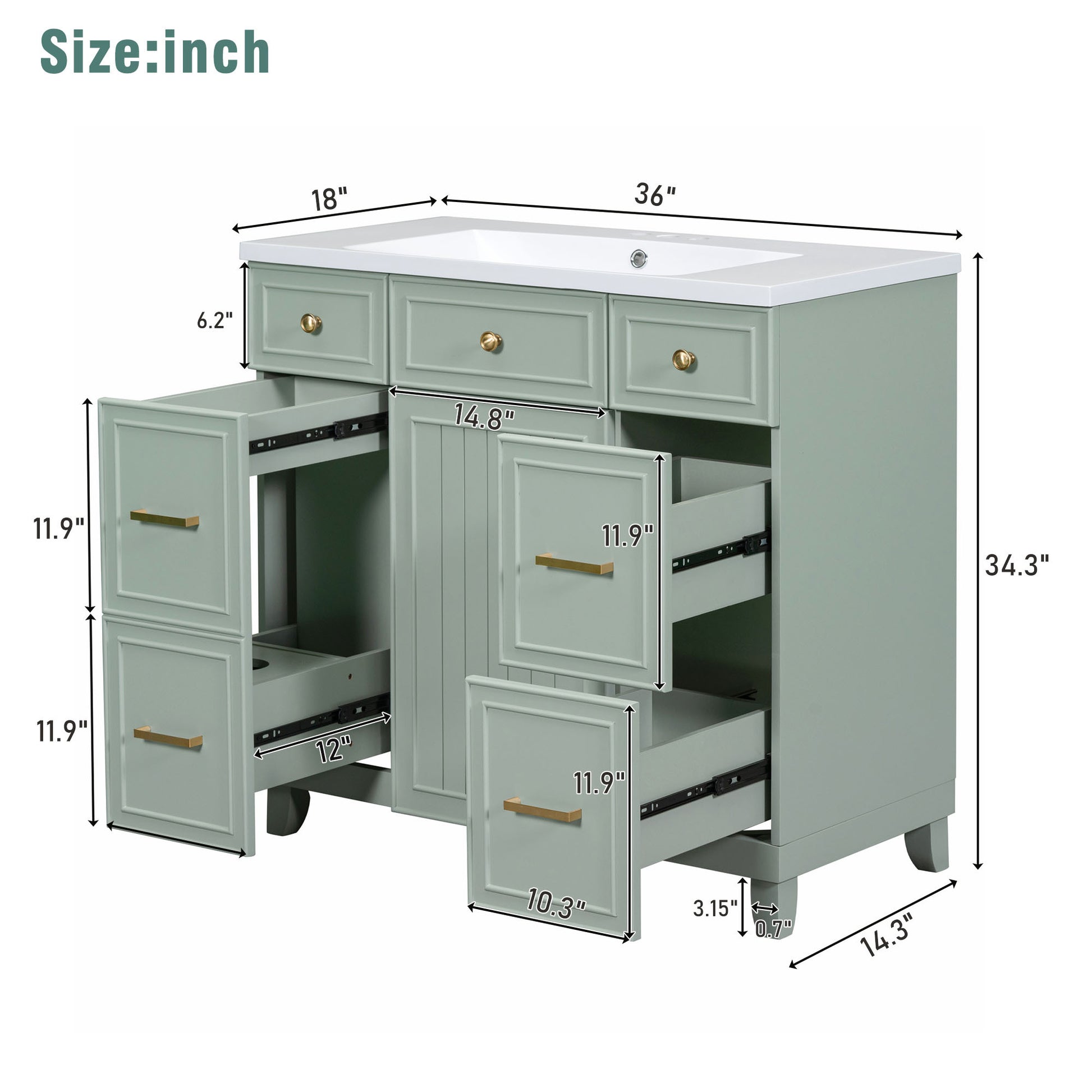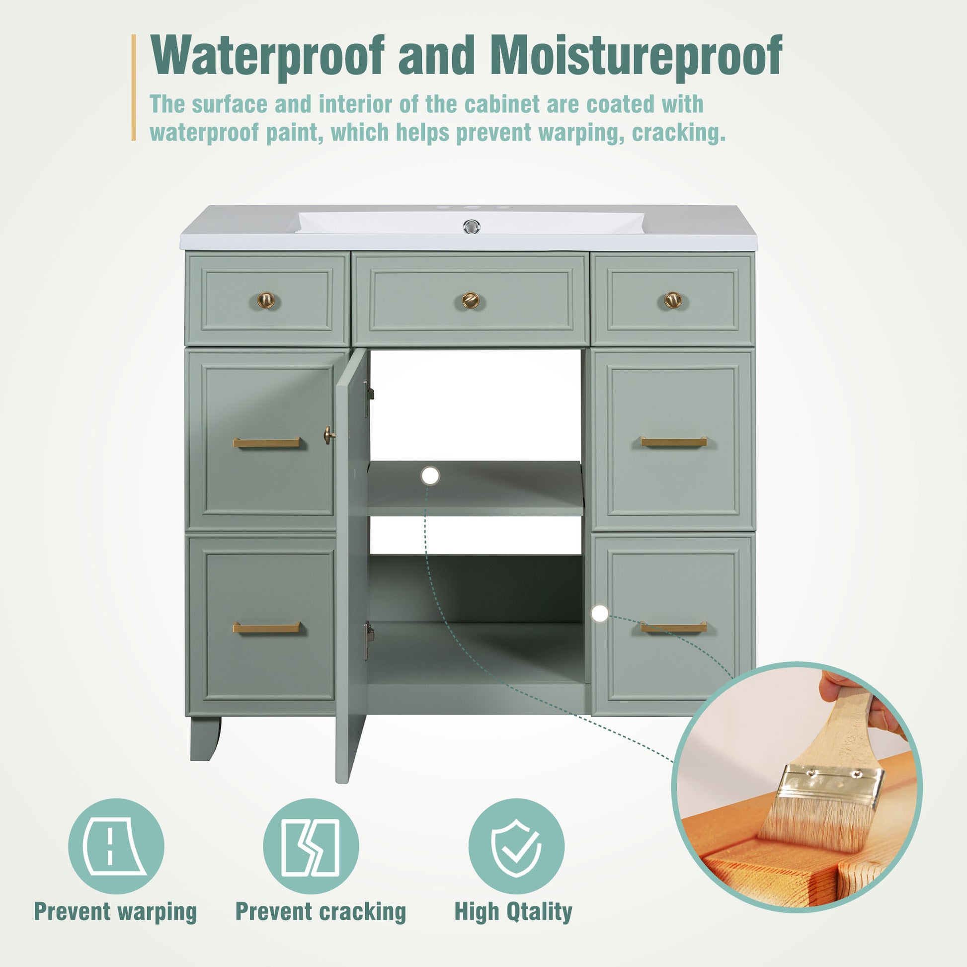36" Bathroom Vanity Cabinet With Sink Top Combo Set, Green, Single Sink, Shaker Cabinet With Soft Closing Door And Drawer Green Solid Wood Mdf Resin