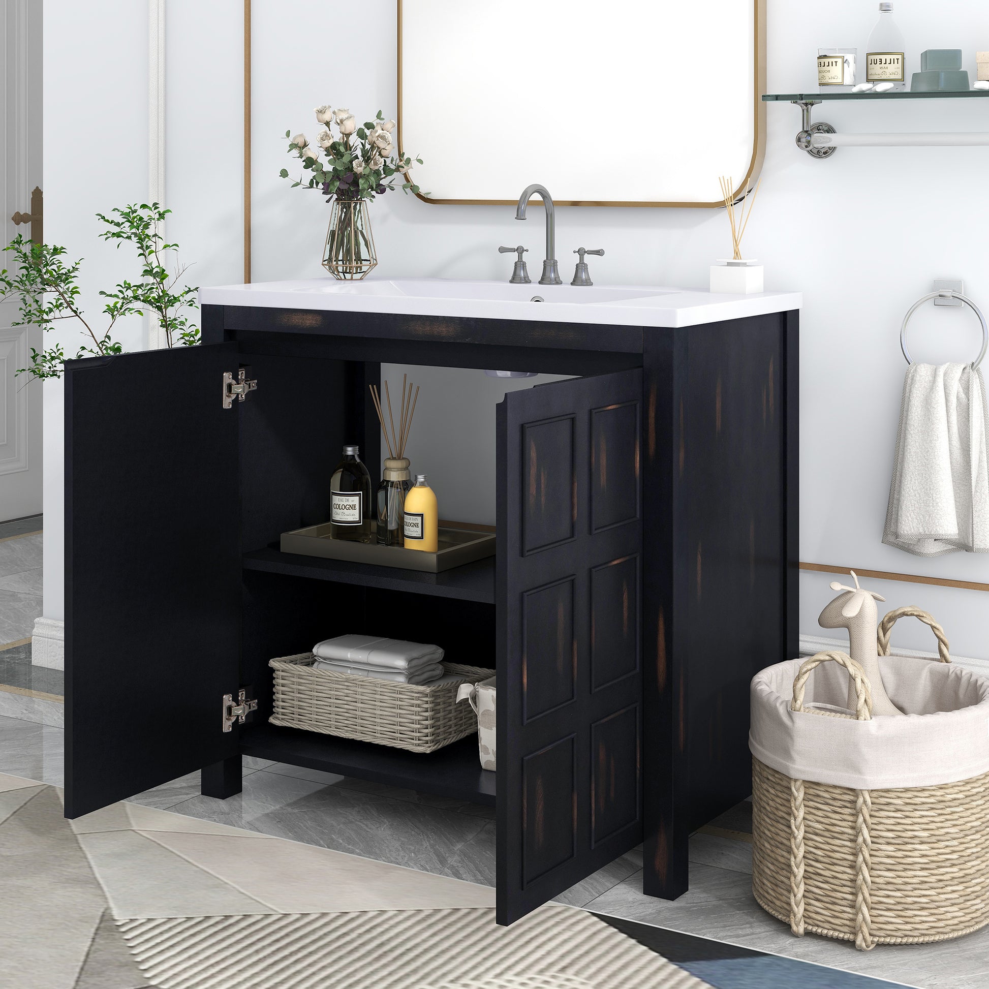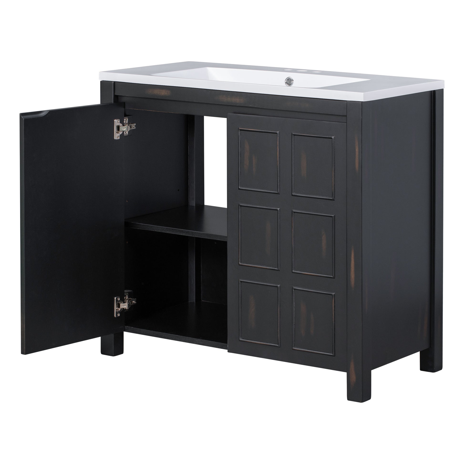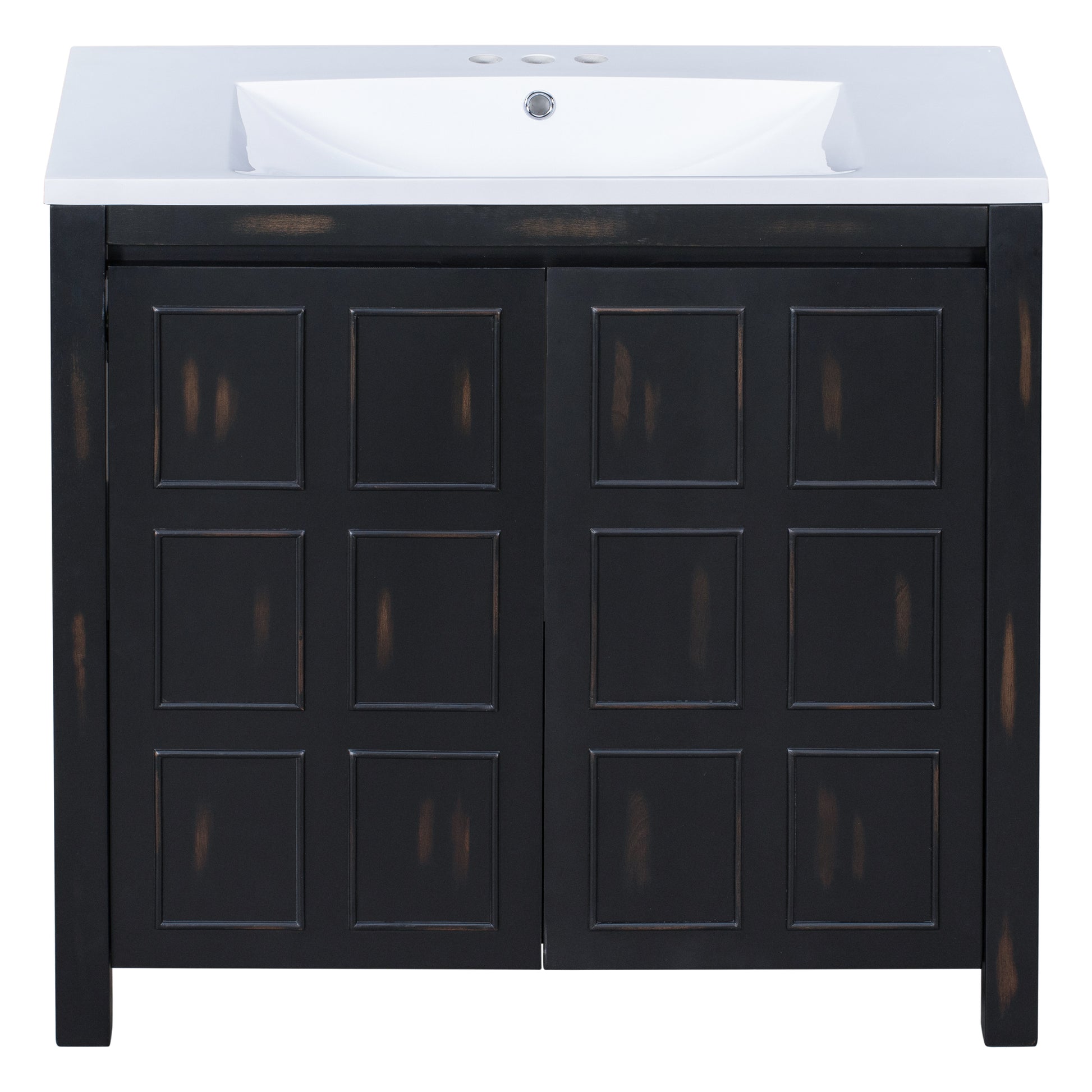 36" Bathroom Vanity Organizer With Sink, Combo Cabinet Set, Bathroom Storage Cabinet, Retro Espresso Espresso Solid Wood Mdf Resin