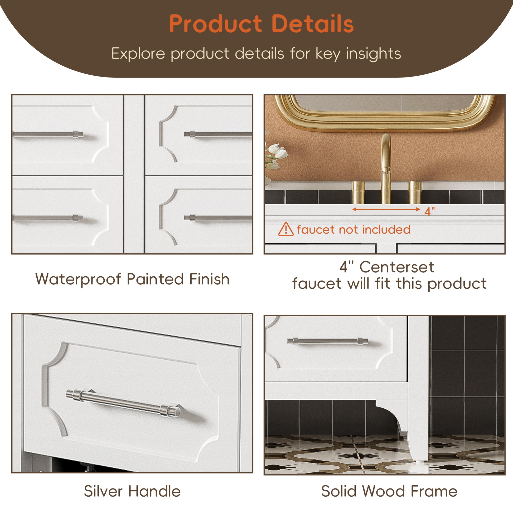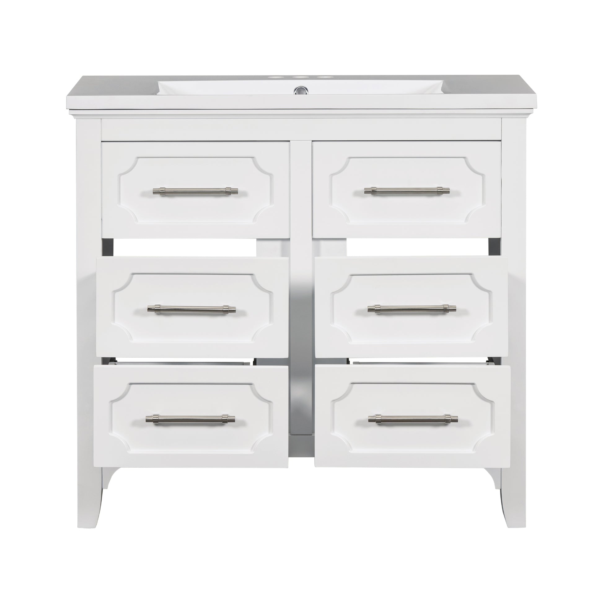 36'' Bathroom Vanity With Resin Sink Combo, Free Standing Single Vanity Set With Four Drawers, Solid Wood Frame Bathroom Storage Cabinet 4 White Bathroom Solid Wood Mdf Resin Painted
