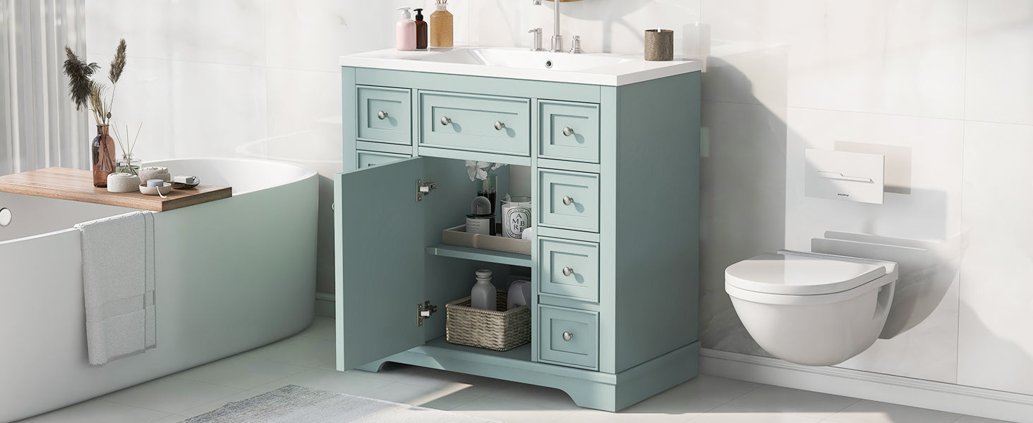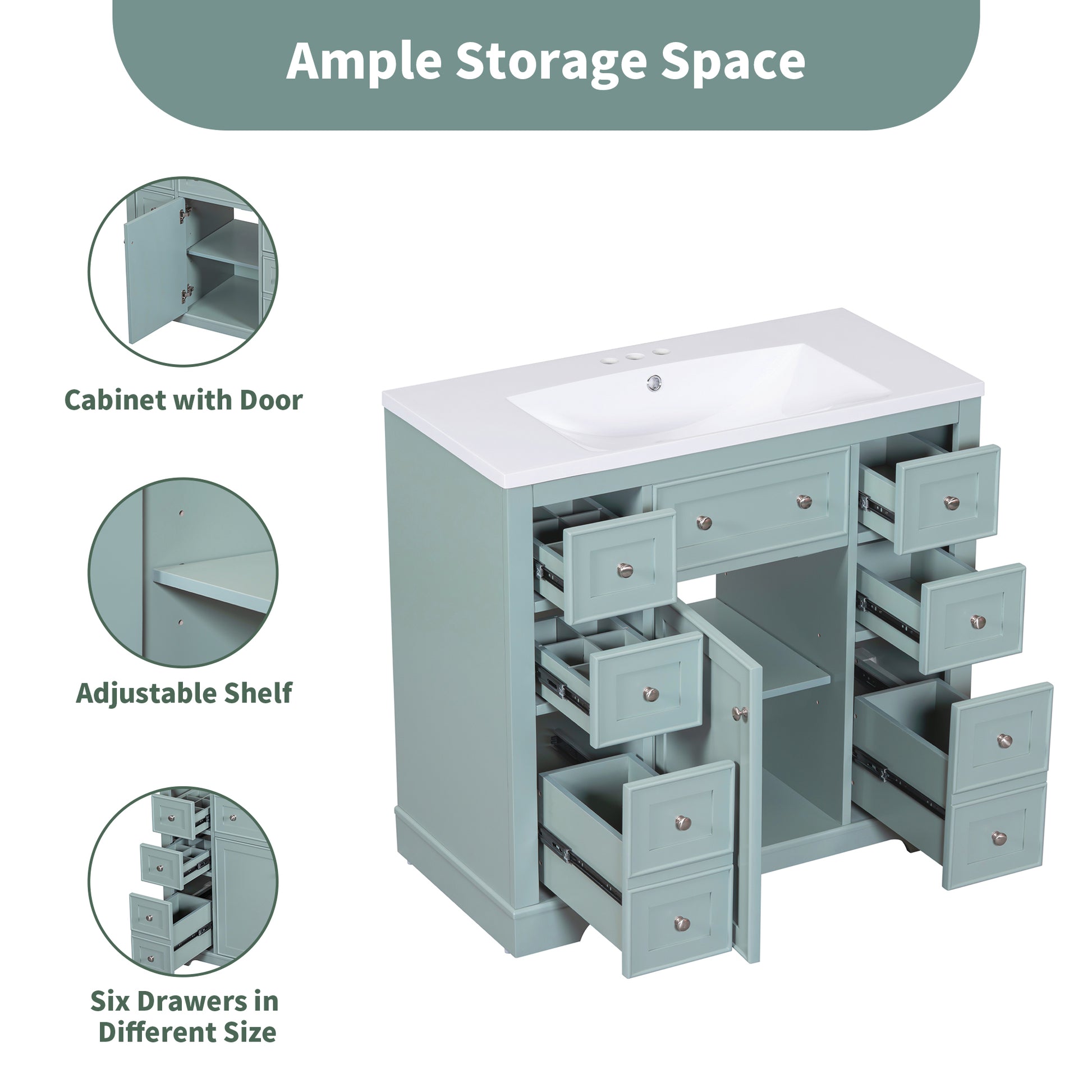 36" Bathroom Vanity With Sink Combo, One Cabinet And Six Drawers, Solid Wood And Mdf Board, Green Old Sku:Sy999404Aag Green Solid Wood Mdf